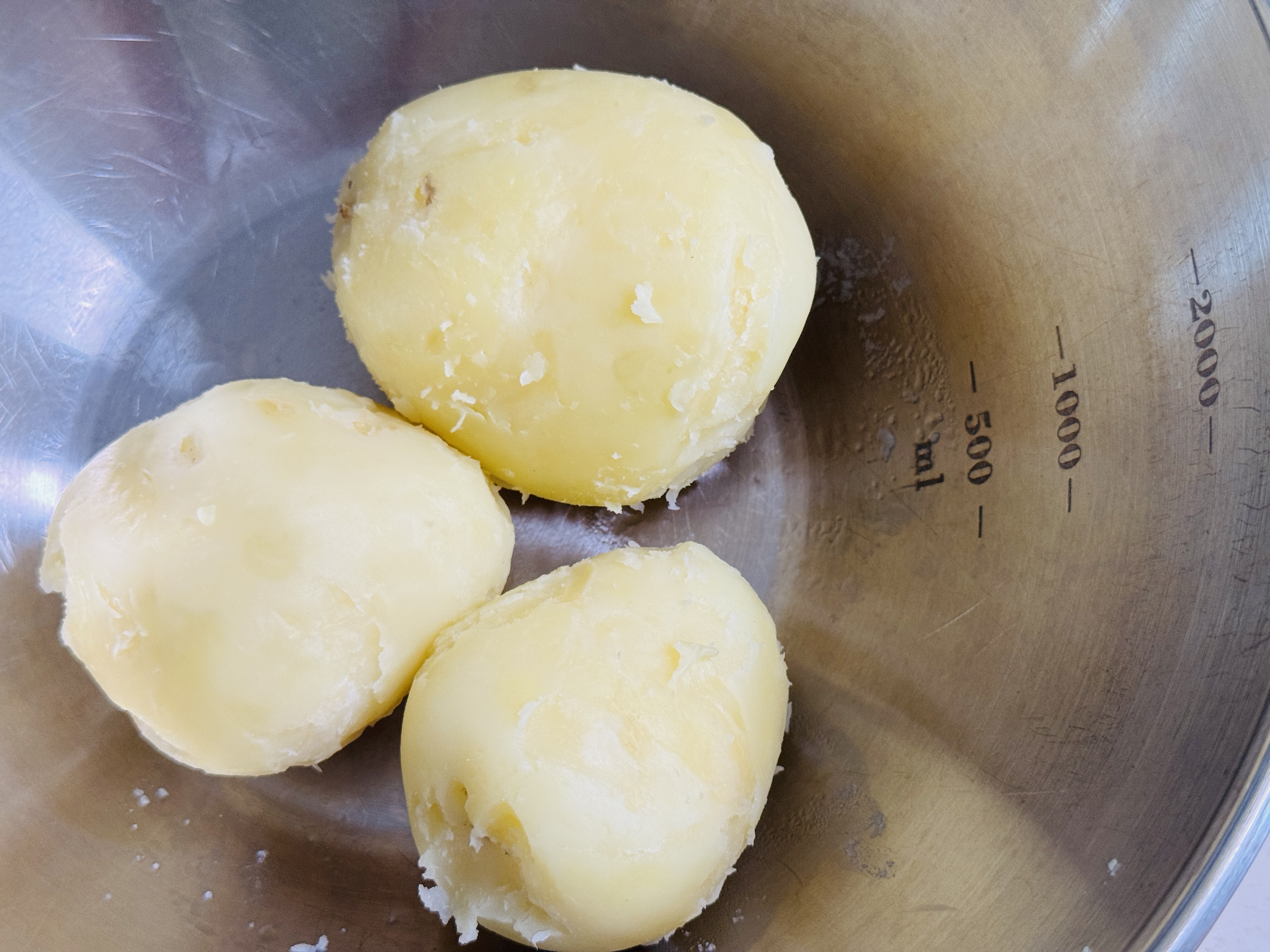 감자는 삶아 껍질을 까고 메셔로 으깨서 준비해 주세요:)