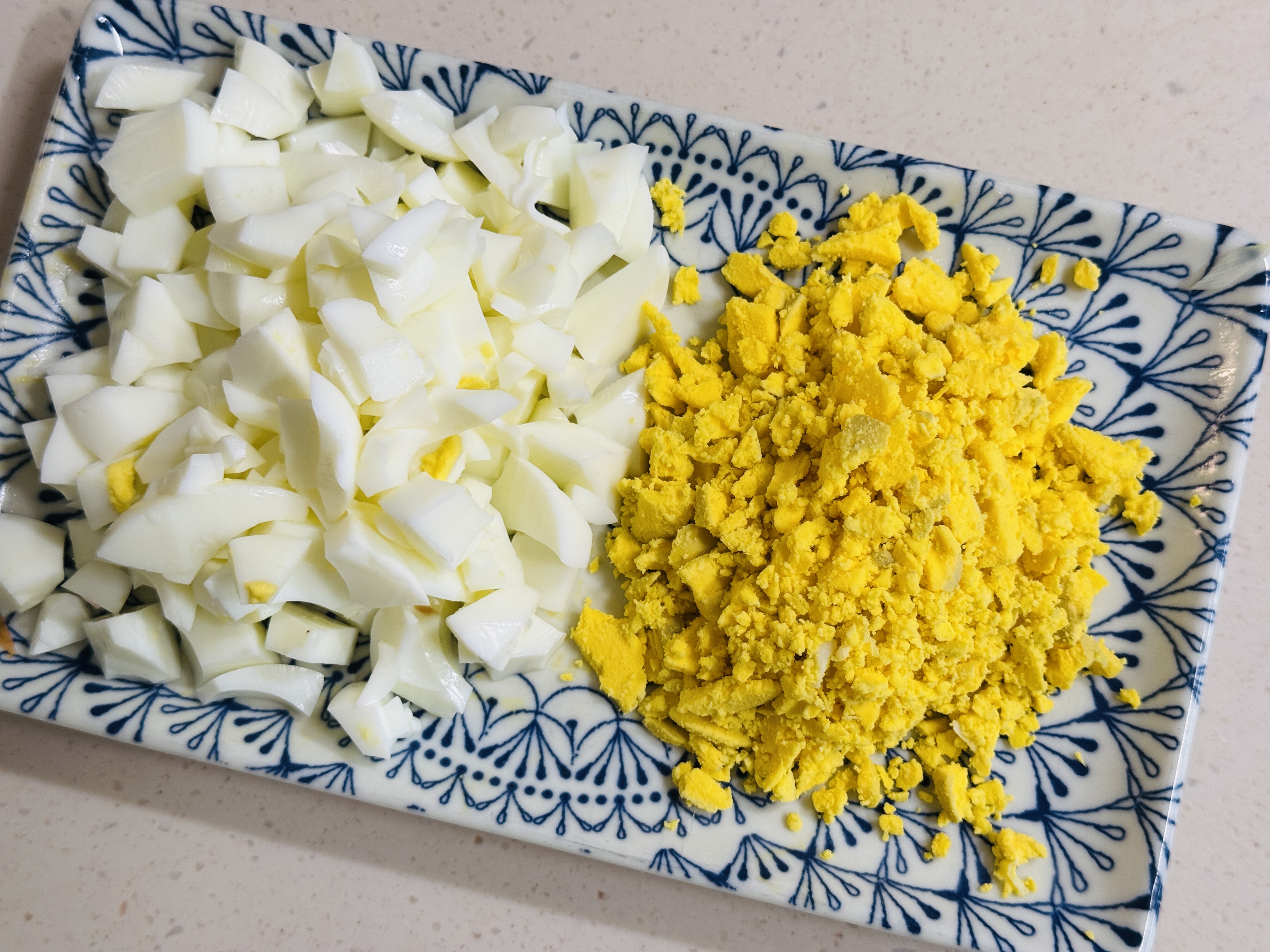 달걀은 삶아 흰자 노른자 분리해서 다져주세요.