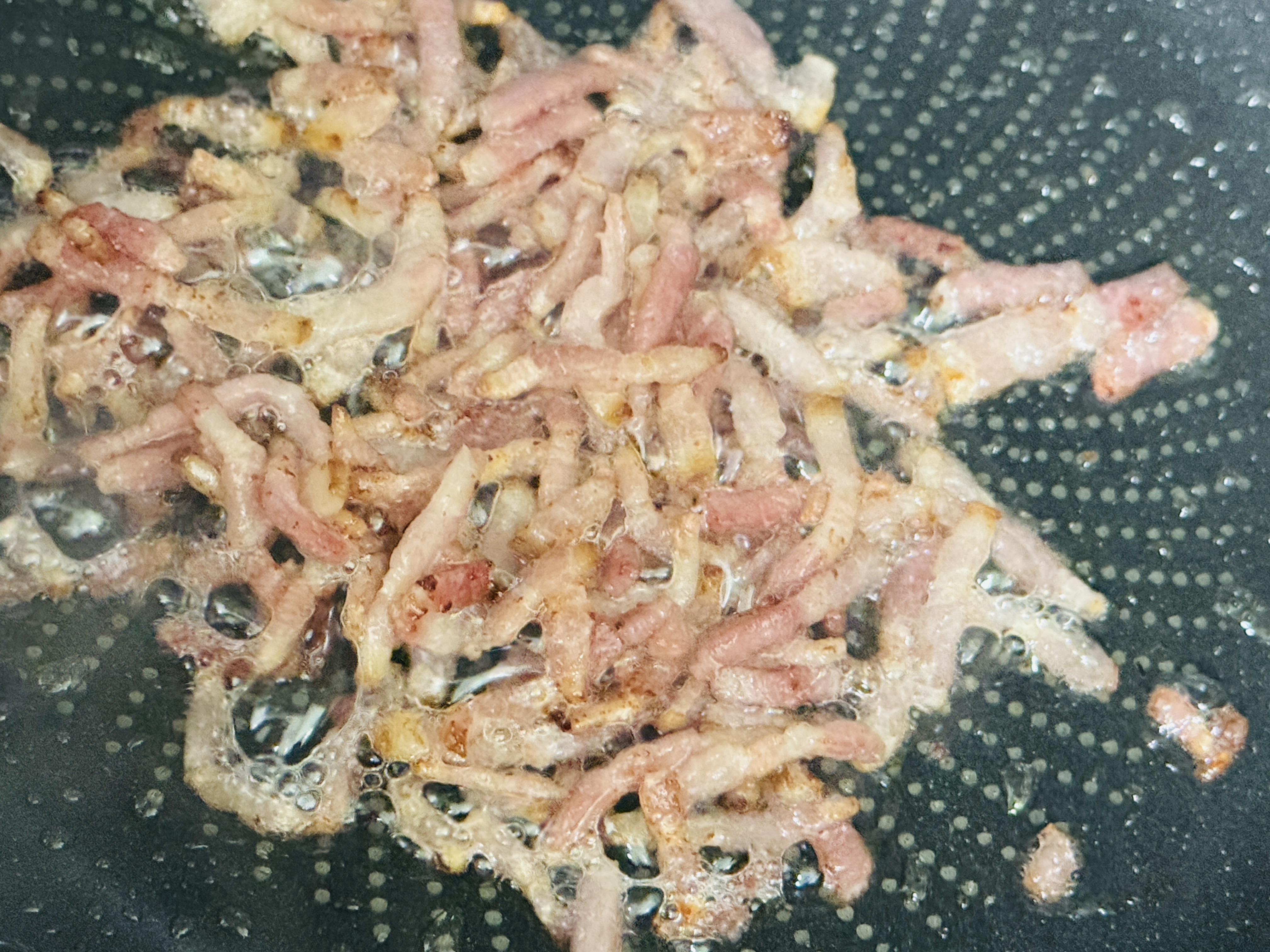 베이컨은 잘게 썰어 달군 펜에 볶은 후 기름 빼서 준비해 주세요.