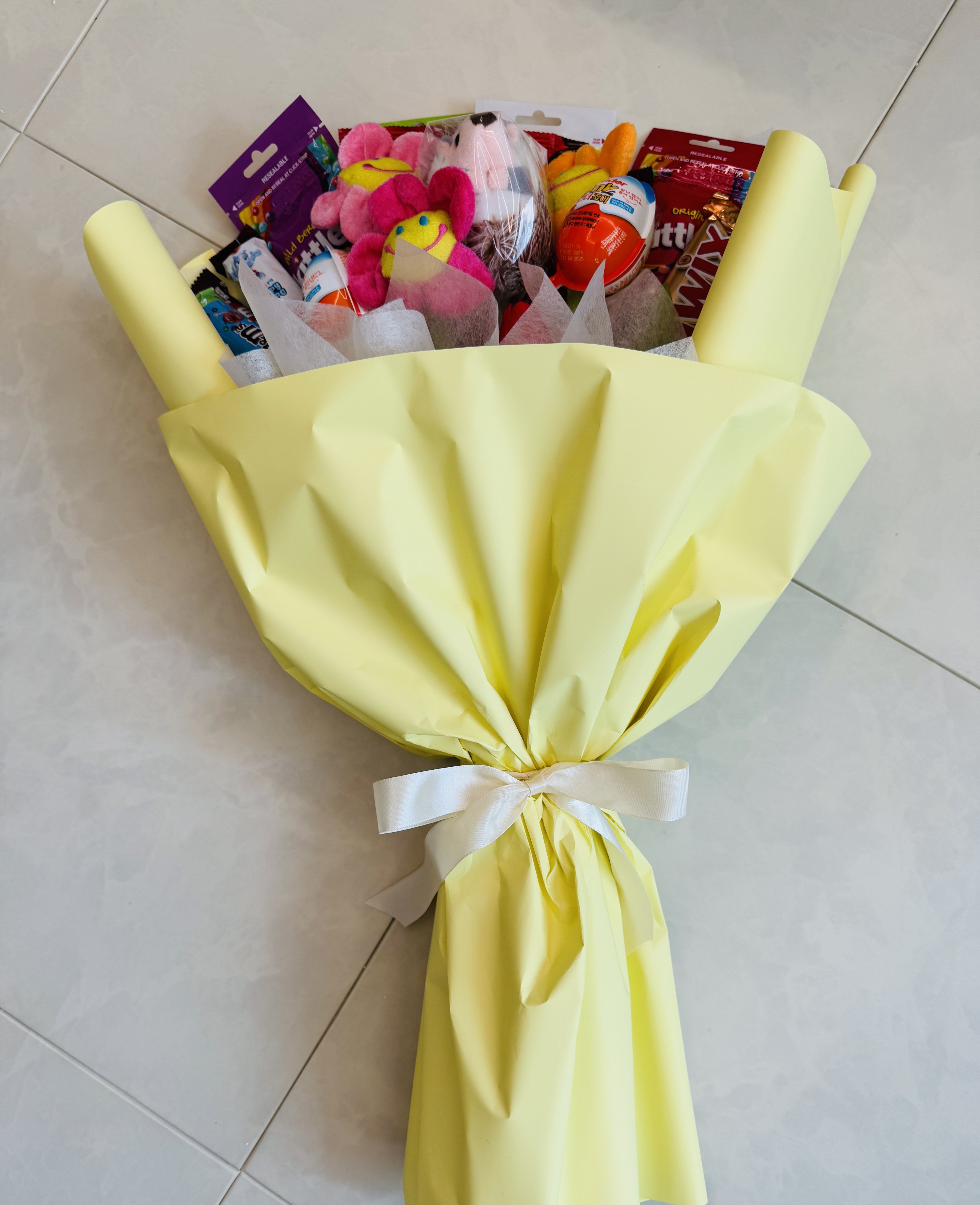 인형이 들어간 간식 꽃다발!! 생각보다 간식 잔뜩 들어간 꽃다발이 없어 작년에 만들어 보았는데 생각보가 어렵지 않고 아이도 엄마가 만들었다는 것에도 감동 받더라고요.. 그래서 올해는 더욱 본격적인 과자 꽃다발 만들어 보았어요:)