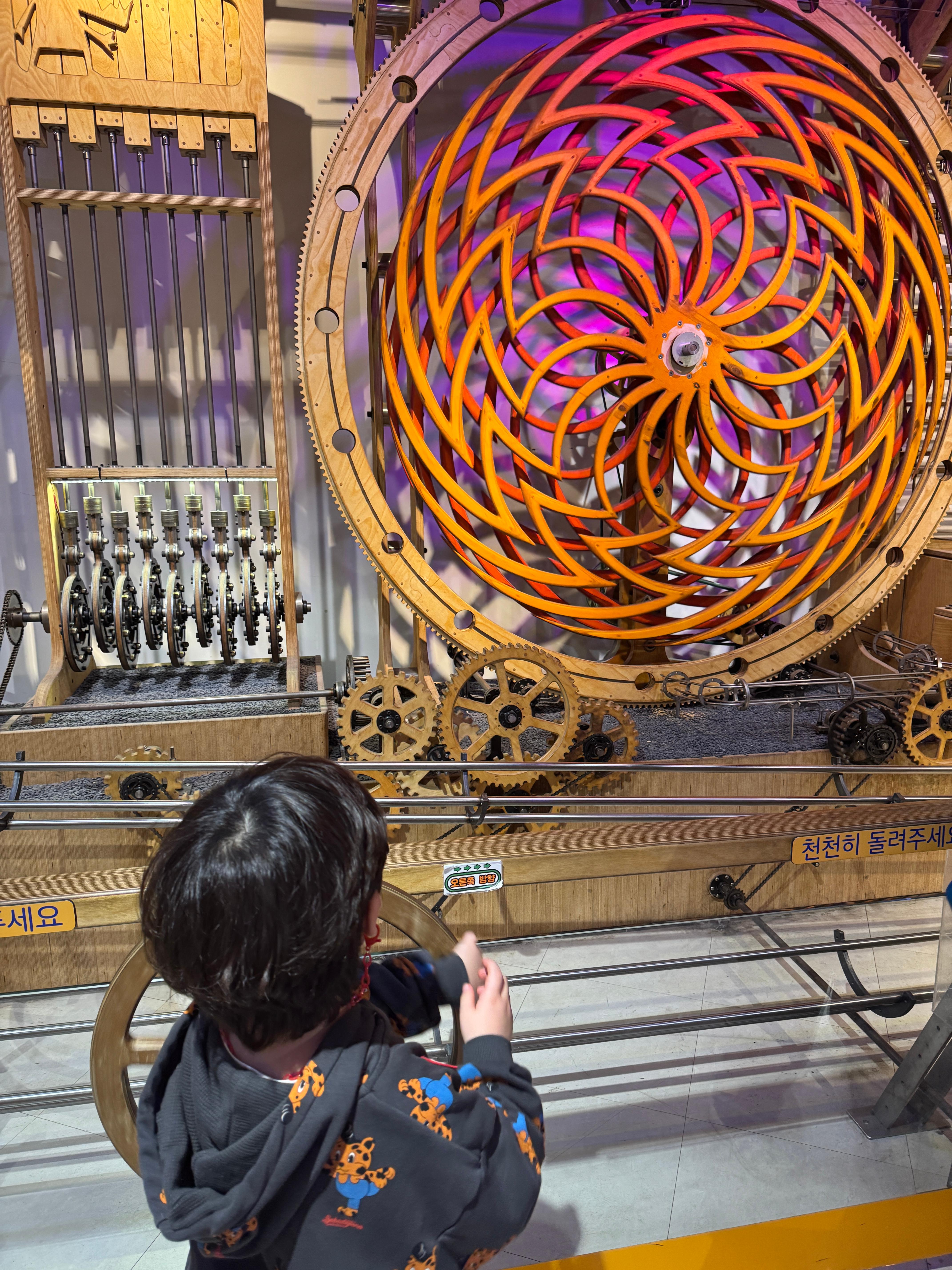 돌리는 것에 따라 톱니 바퀴가 움직이며 공도 움직이고 하니 그것이 재미있기도 하면서 돌리는 행위 자체를 즐거워 하는 아이들이 많더라고요🤣