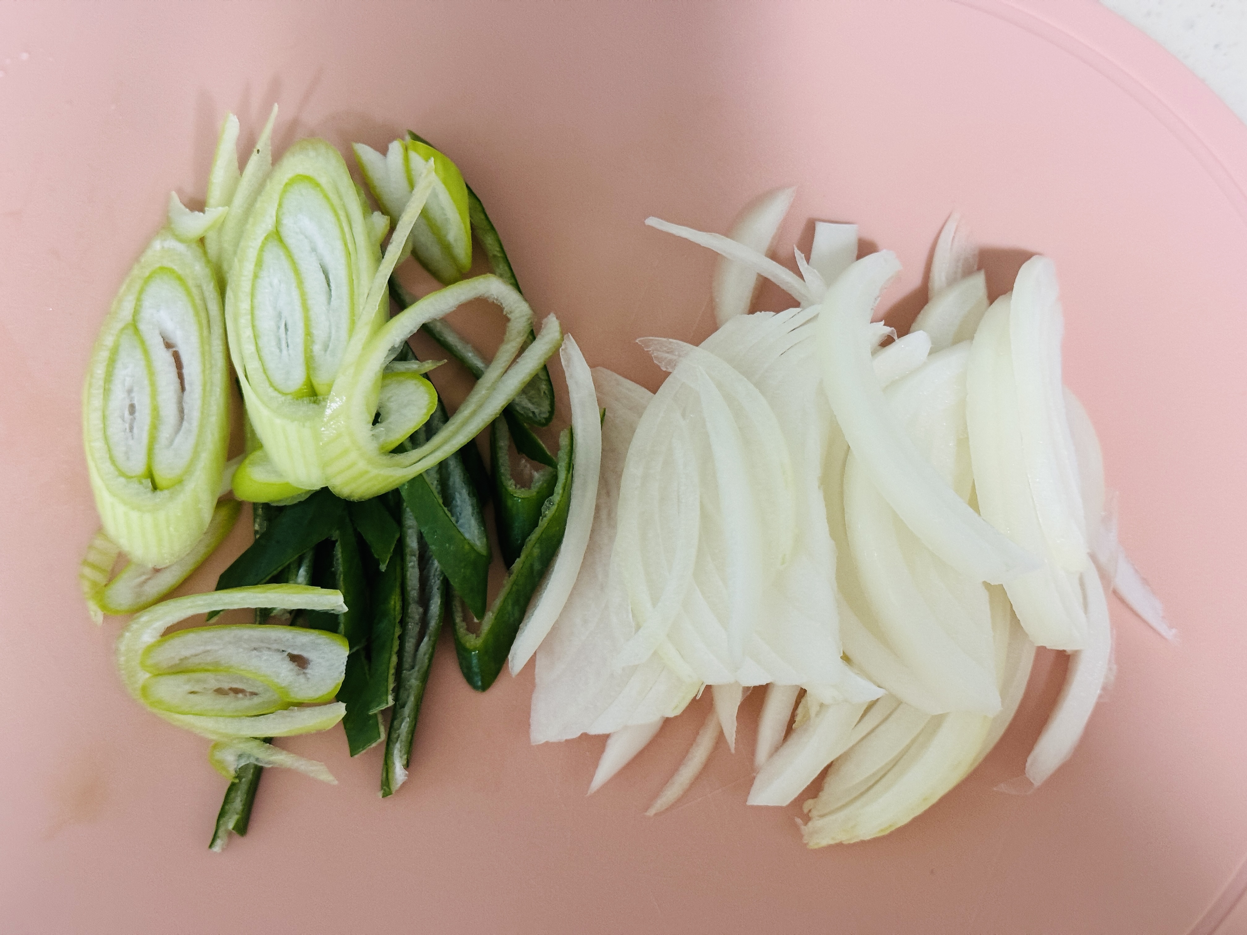 파는 어슷썰어 준비하고 양파는 가늘게 채썰어 준비해 주세요.