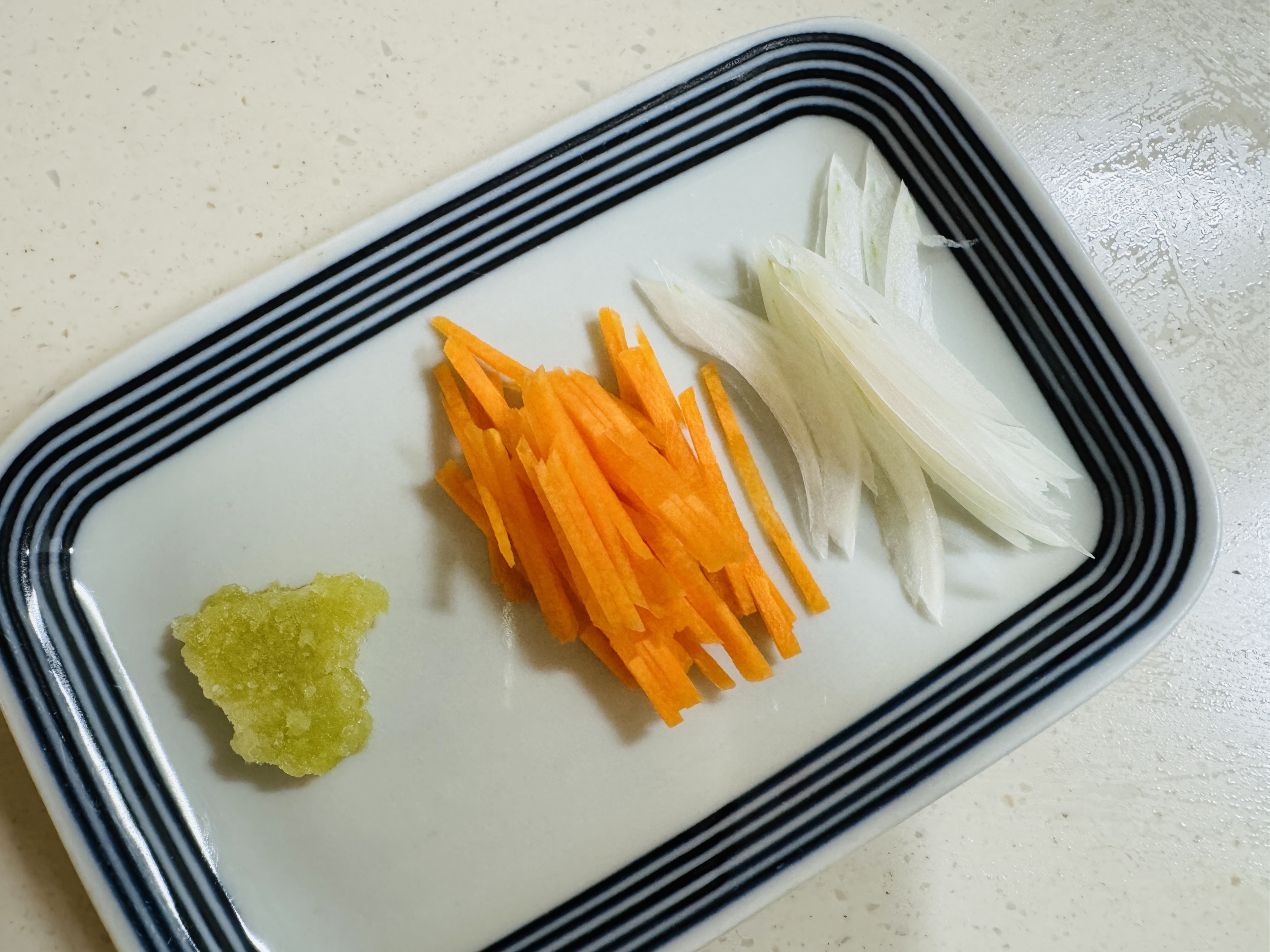 당근과 양파는 얇게 채썰어 준비해 주세요.