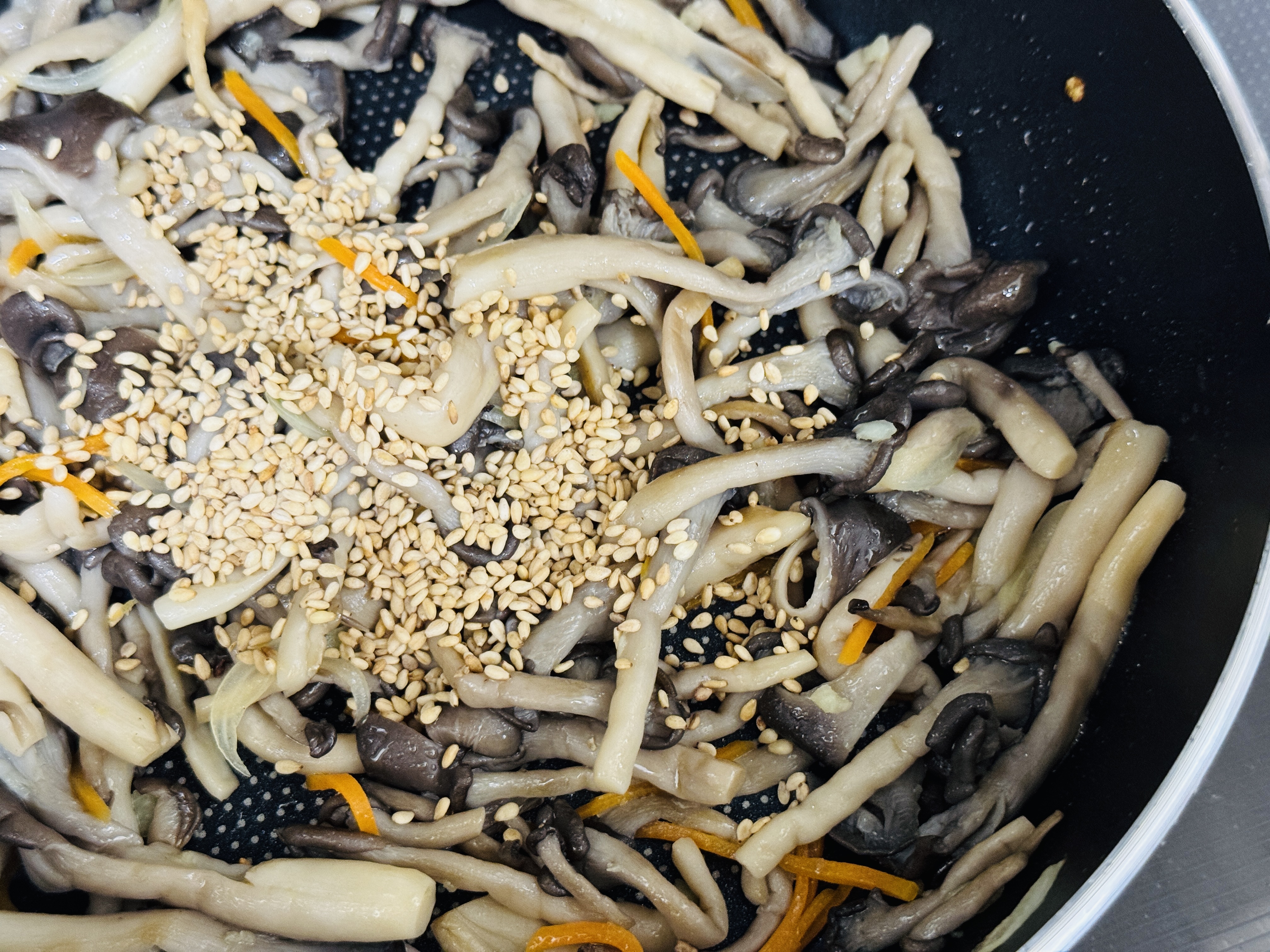 불을 끄고 참기름과 통깨 넣어 마무리해주세요.