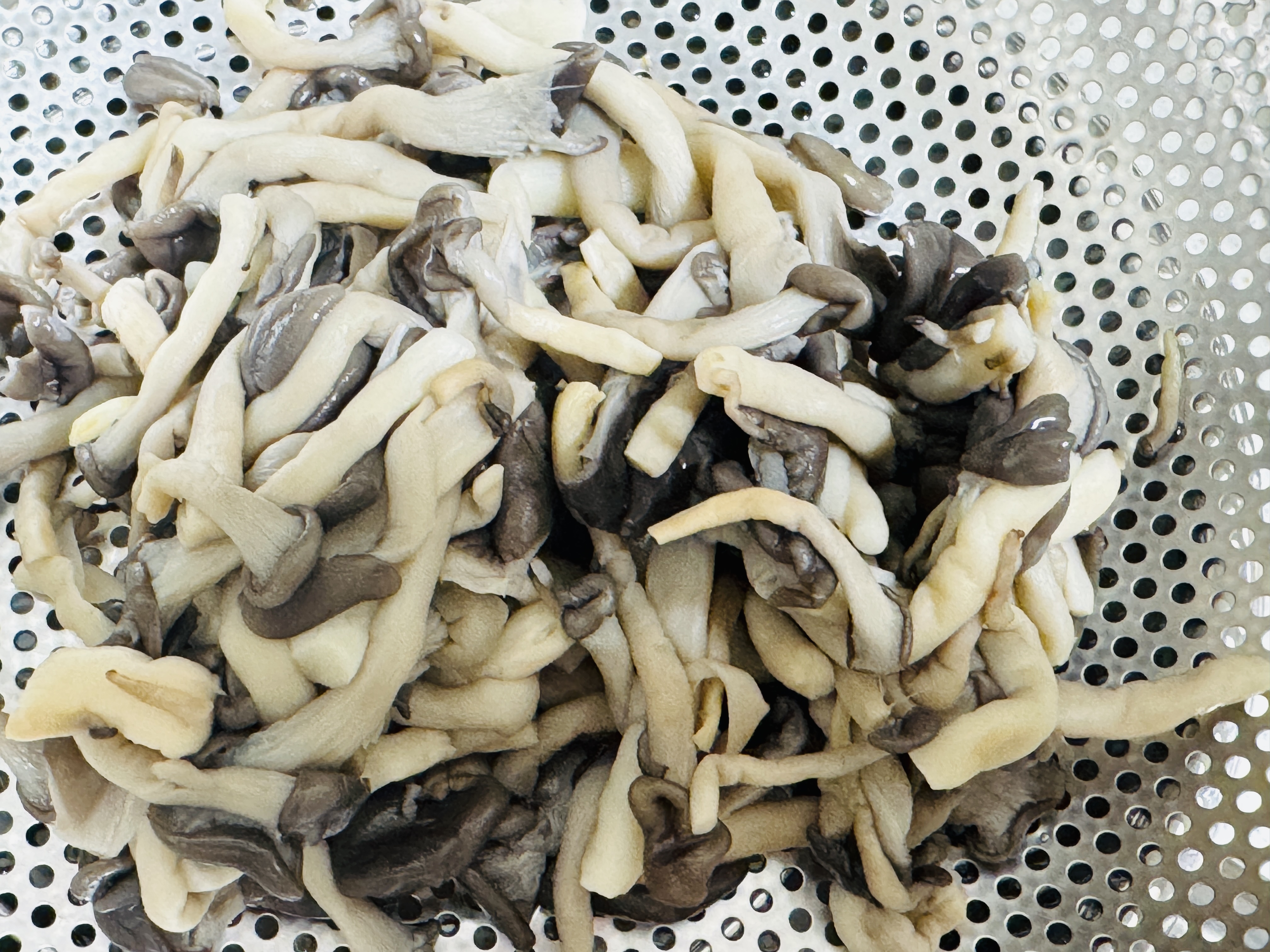느타리 버섯은 밑둥을 자르고 너무 큰것은 찢어 준비하고 끓는 물에 소금 1/2T 넣은 뒤 살짝 데쳐 건져주세요.