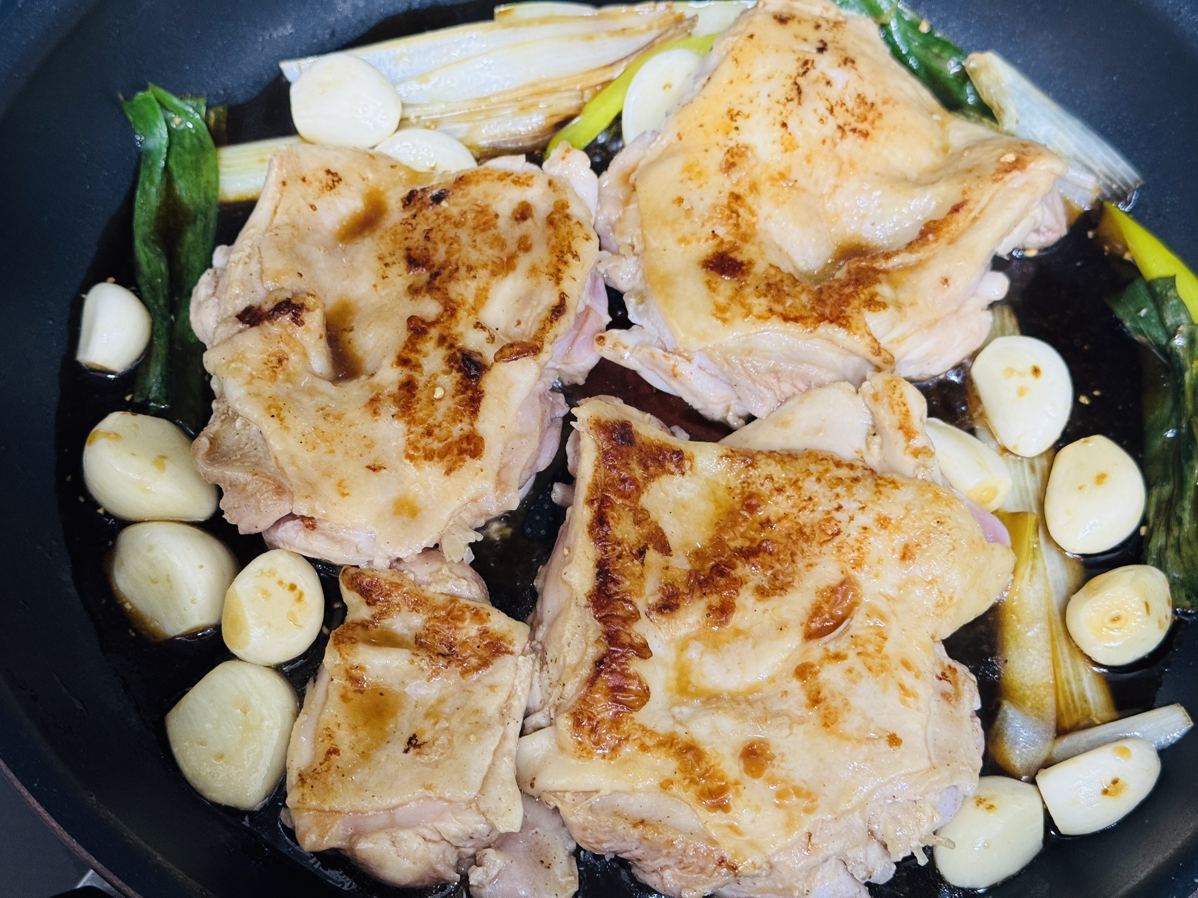 파와 마늘의 향이 가득한 닭다리살 스테이크입니다:)