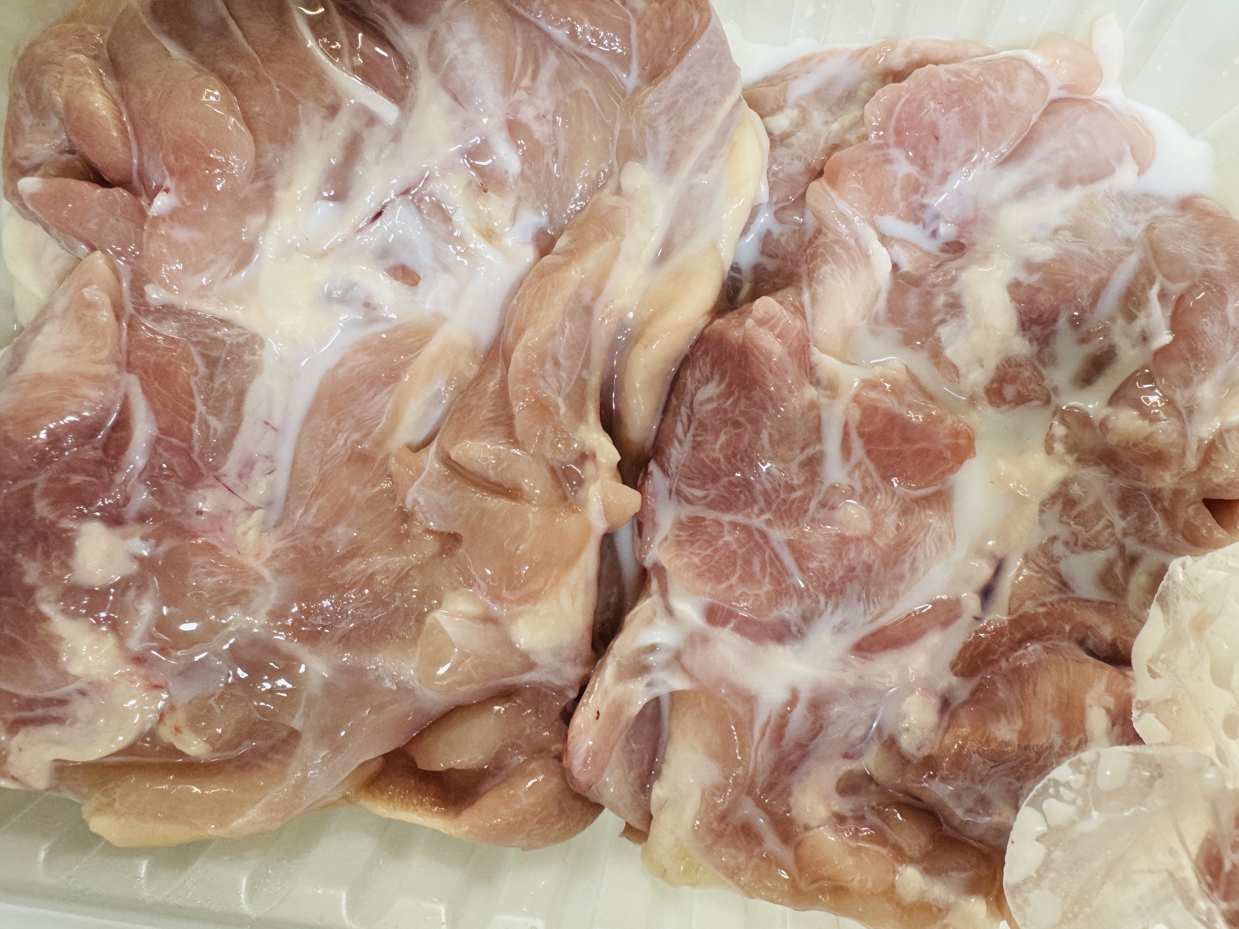 닭다리살에 우유를 부어 10분정도 두어 잡내를 제거하고 육질을 부드럽게 만들어 주세요.