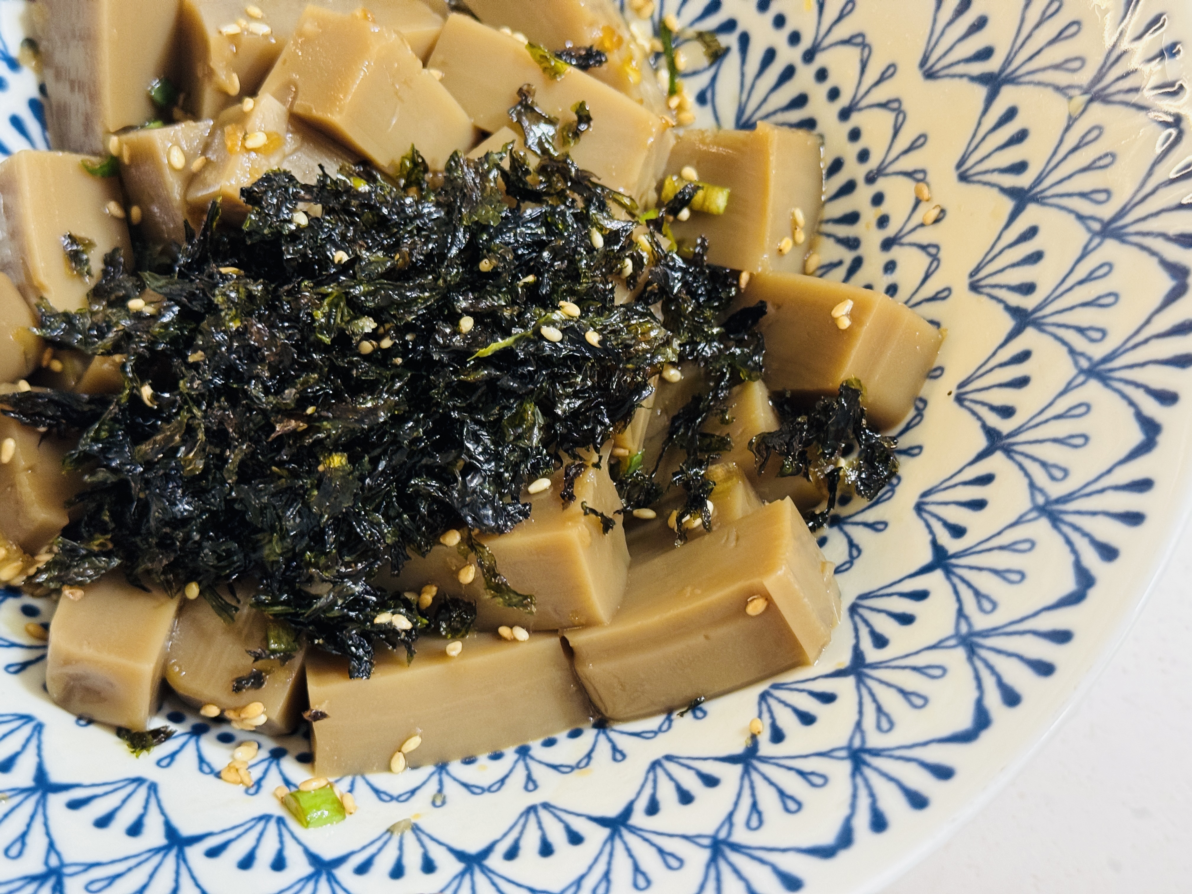 김이 많이 들어가 바로 무쳐서 바로 먹으면 더욱 맛있는 도토리묵 무침이예요.