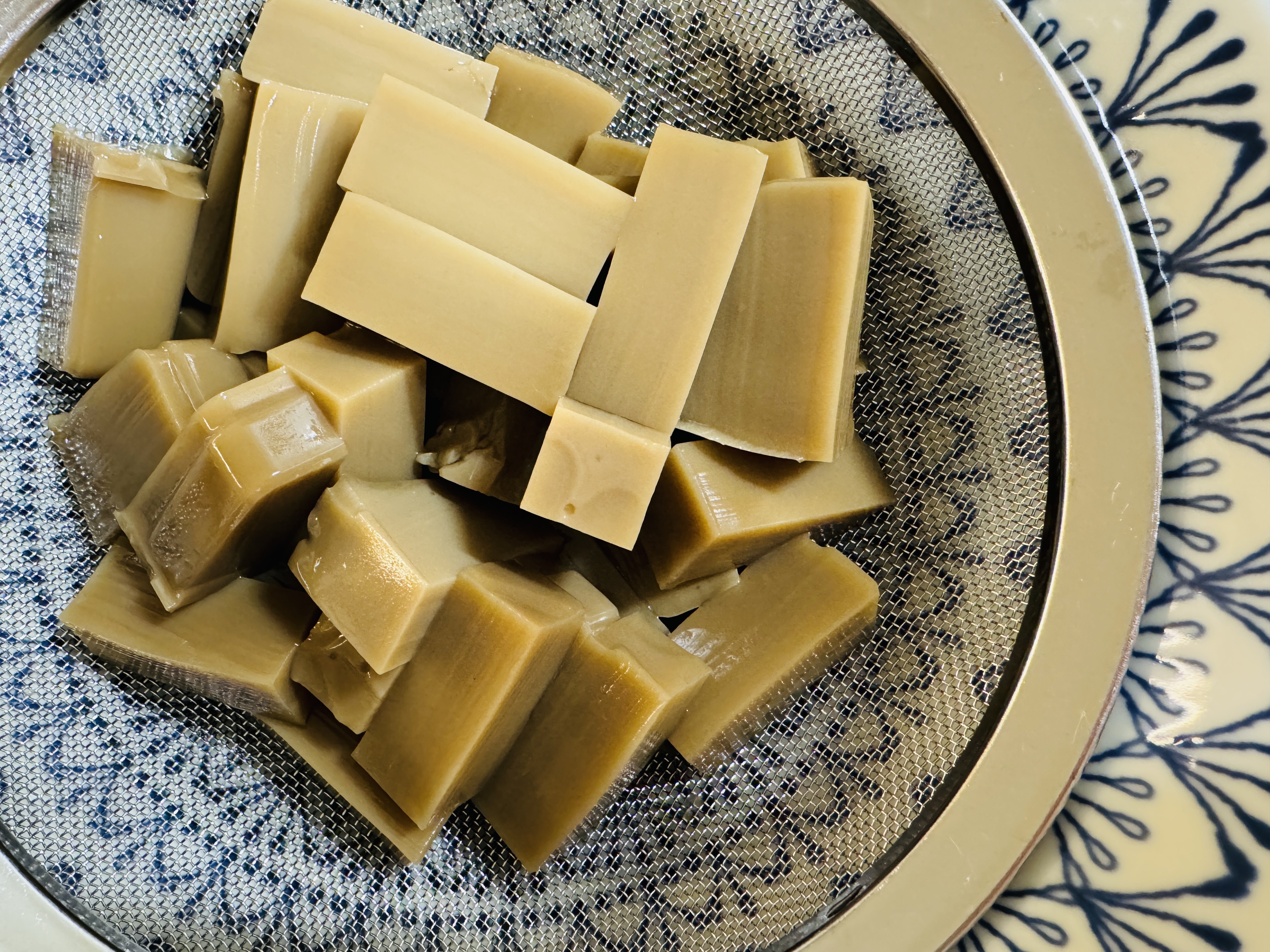 도토리묵은 작게 잘라 끓는 물에 살짝 데쳐 물을 빼 준비해 주세요.