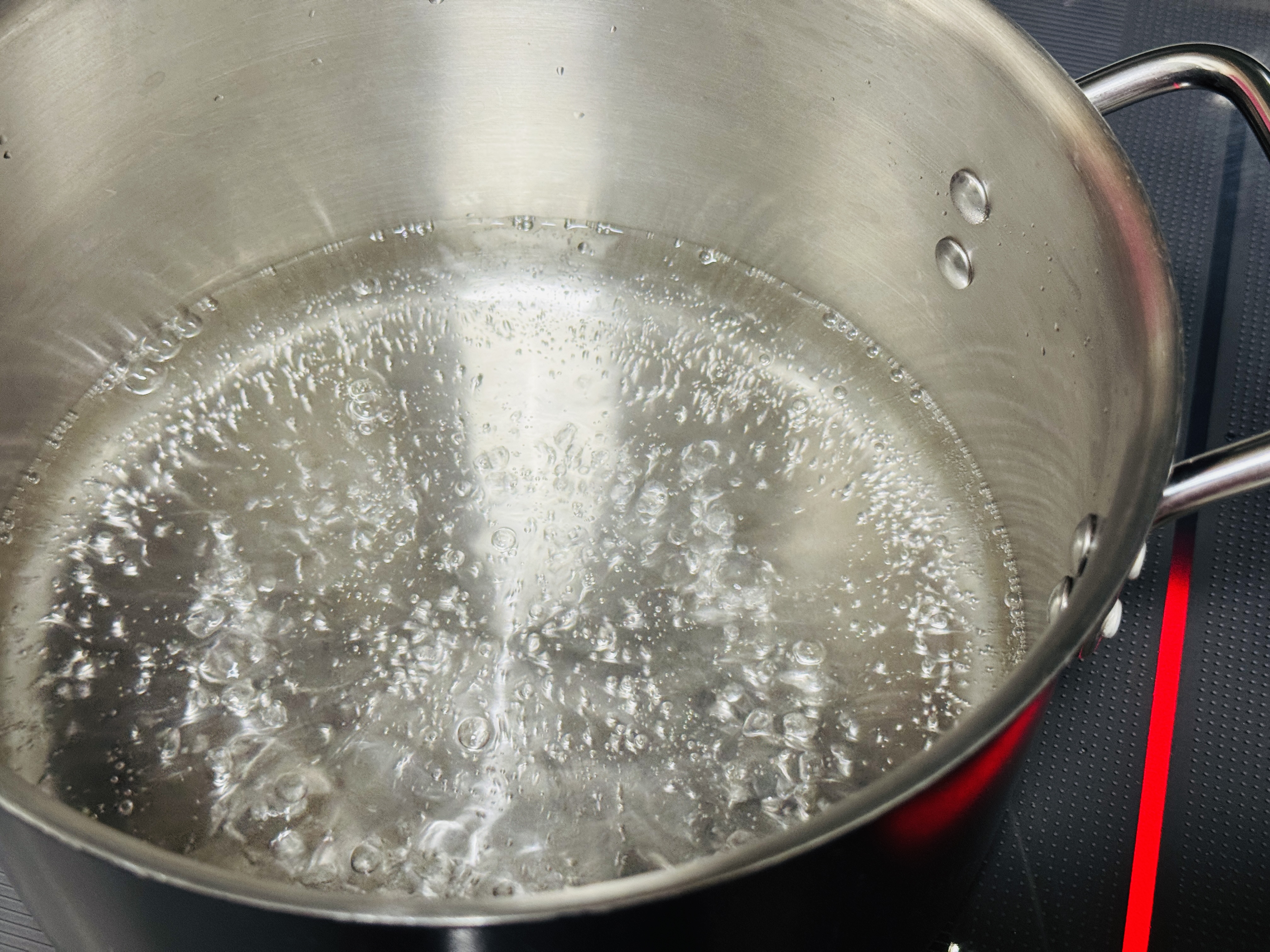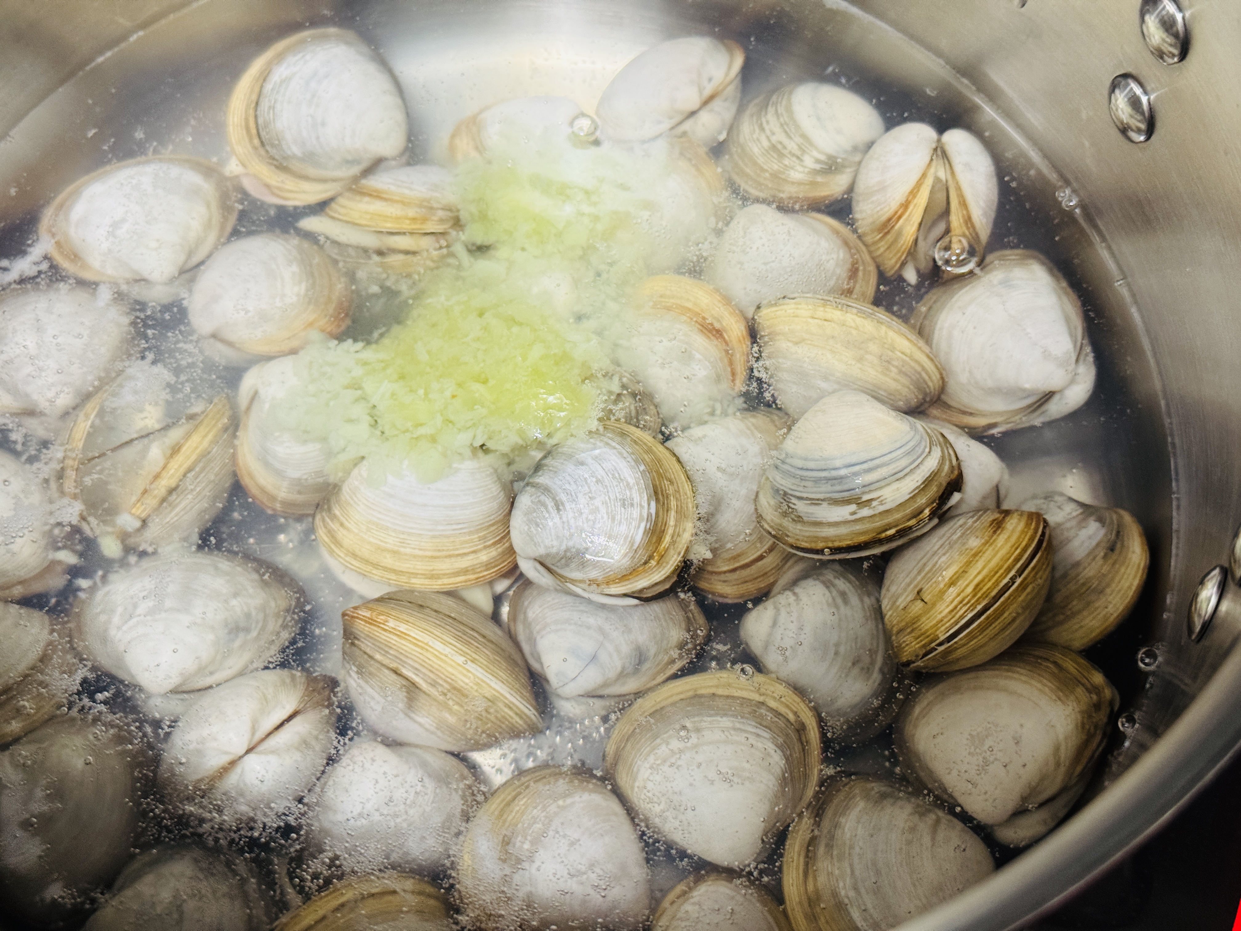물이 팔팔 끓으면 동죽조개와 다진 마늘 넣어 끓여주세요.