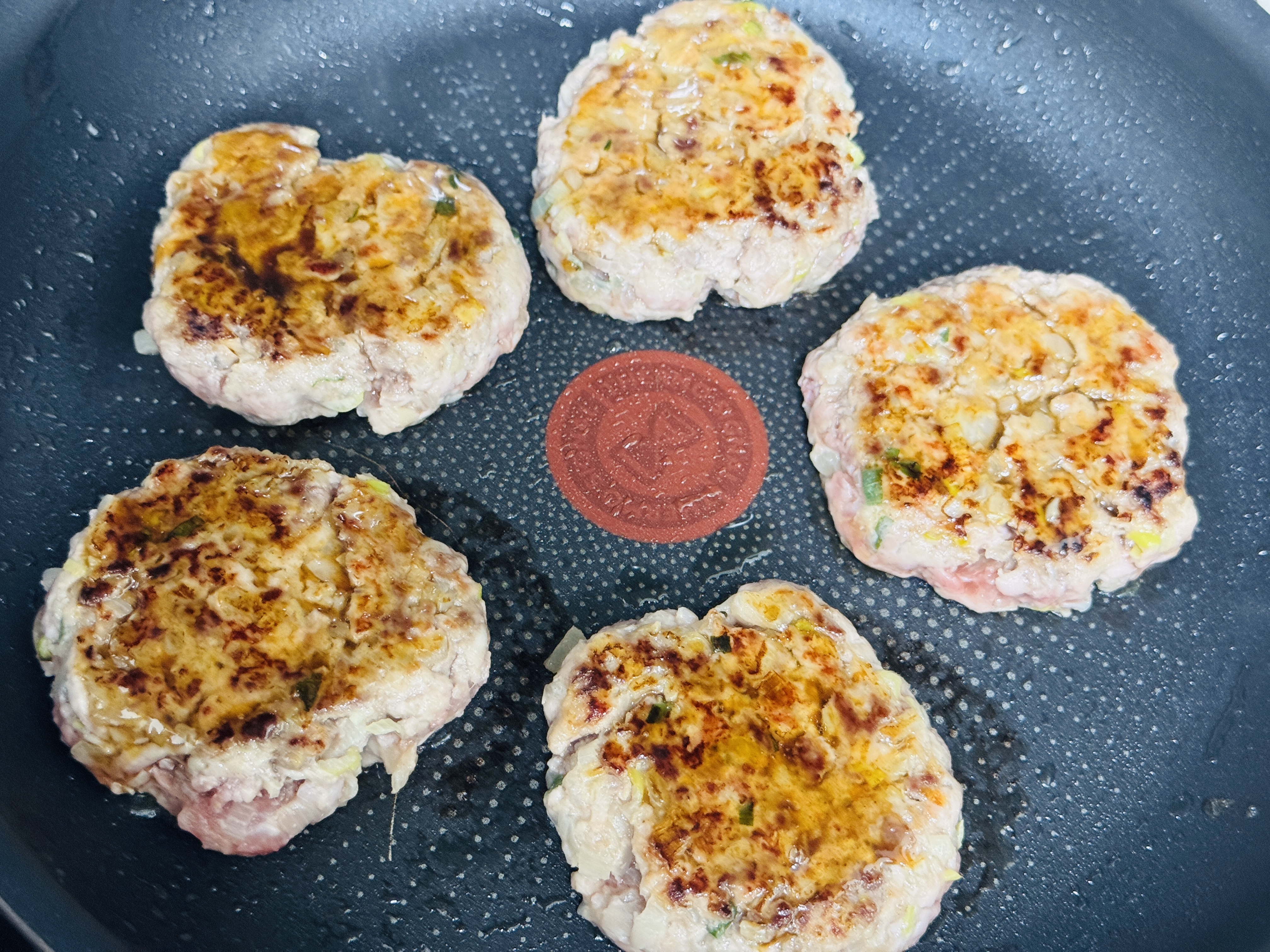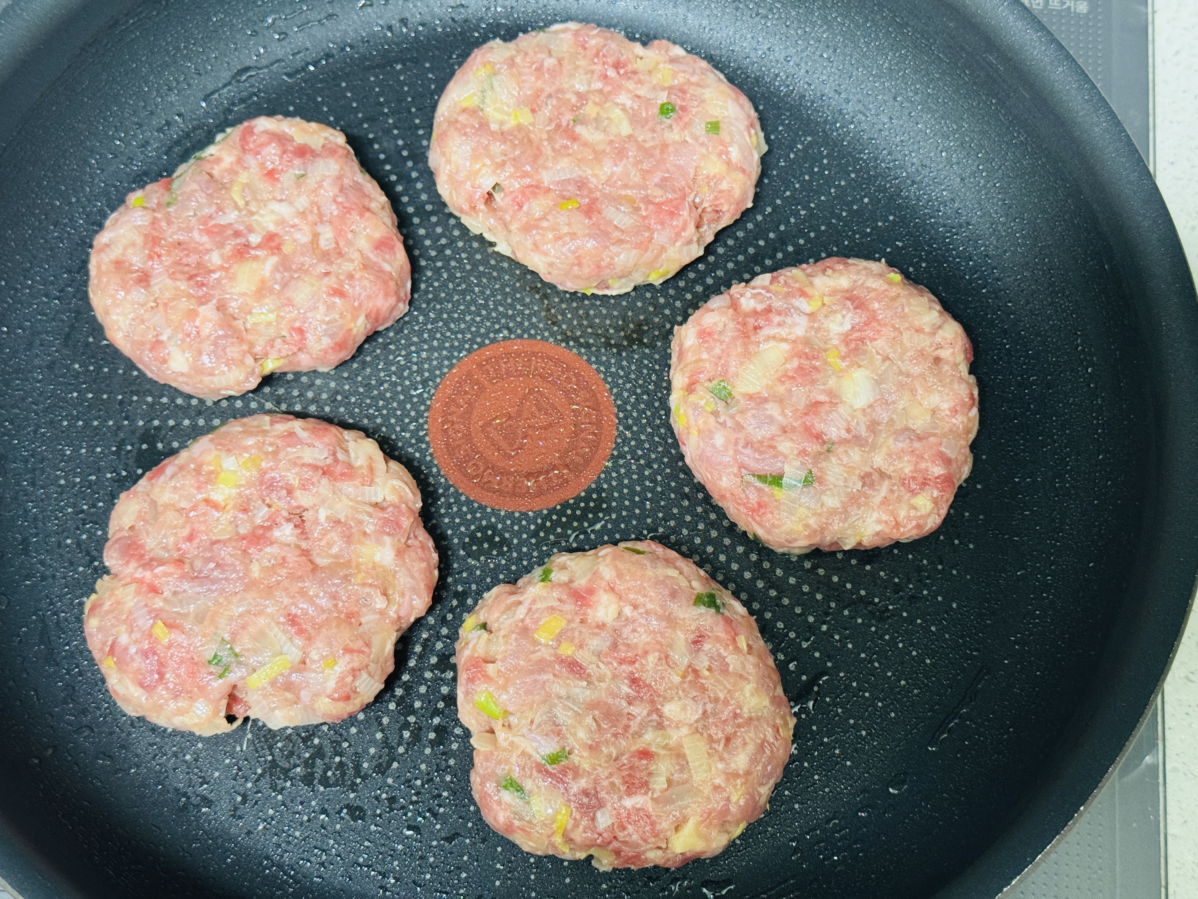 달군 펜에 떡갈비를 올려 주세요. 먼저 강불로 앞, 뒤를 노릇하기 구워준 뒤 약불로 줄여 속까지 잘 익혀주세요.