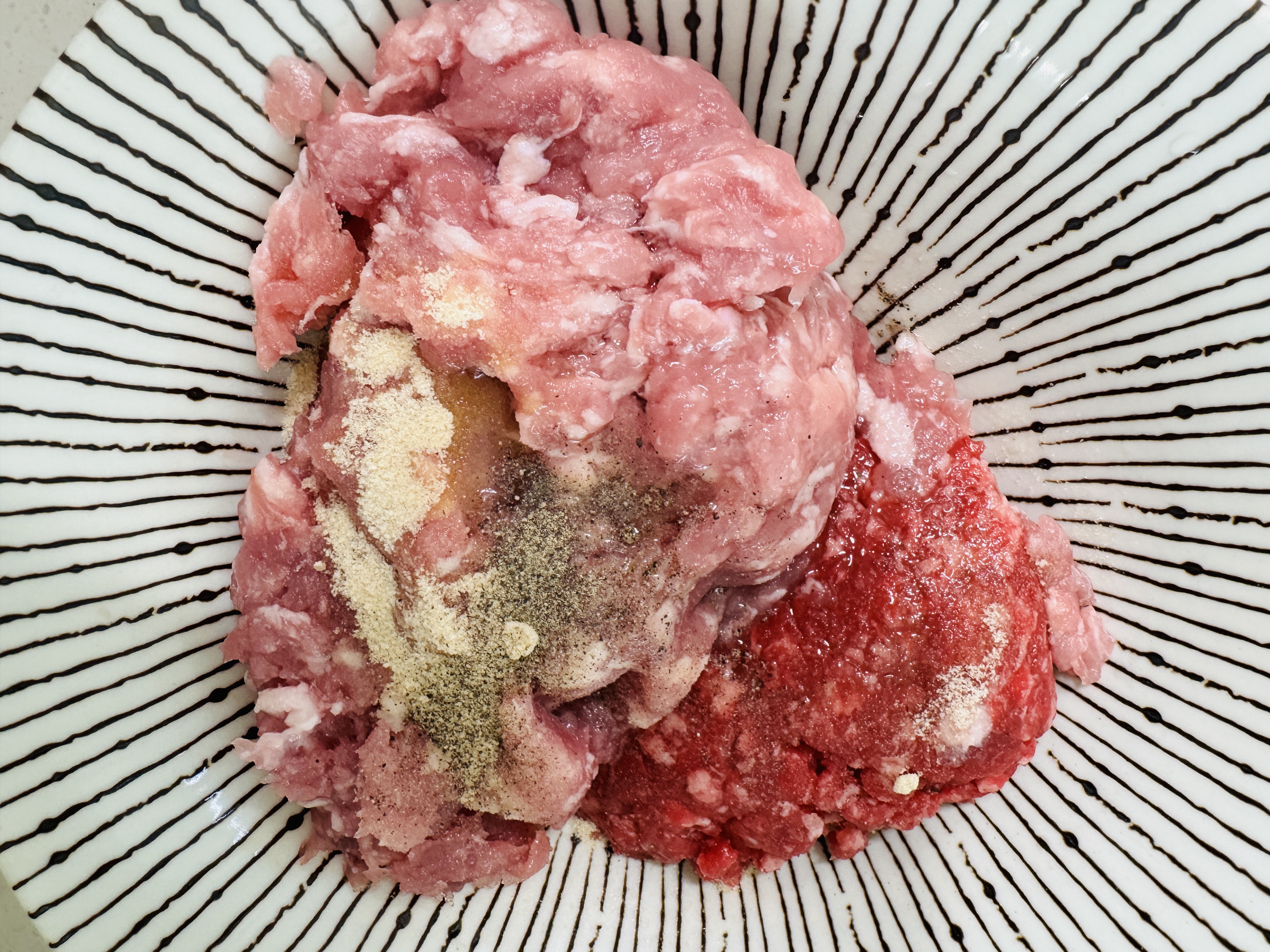 다짐육은 키친타올에 올려 핏물을 빼주세요.