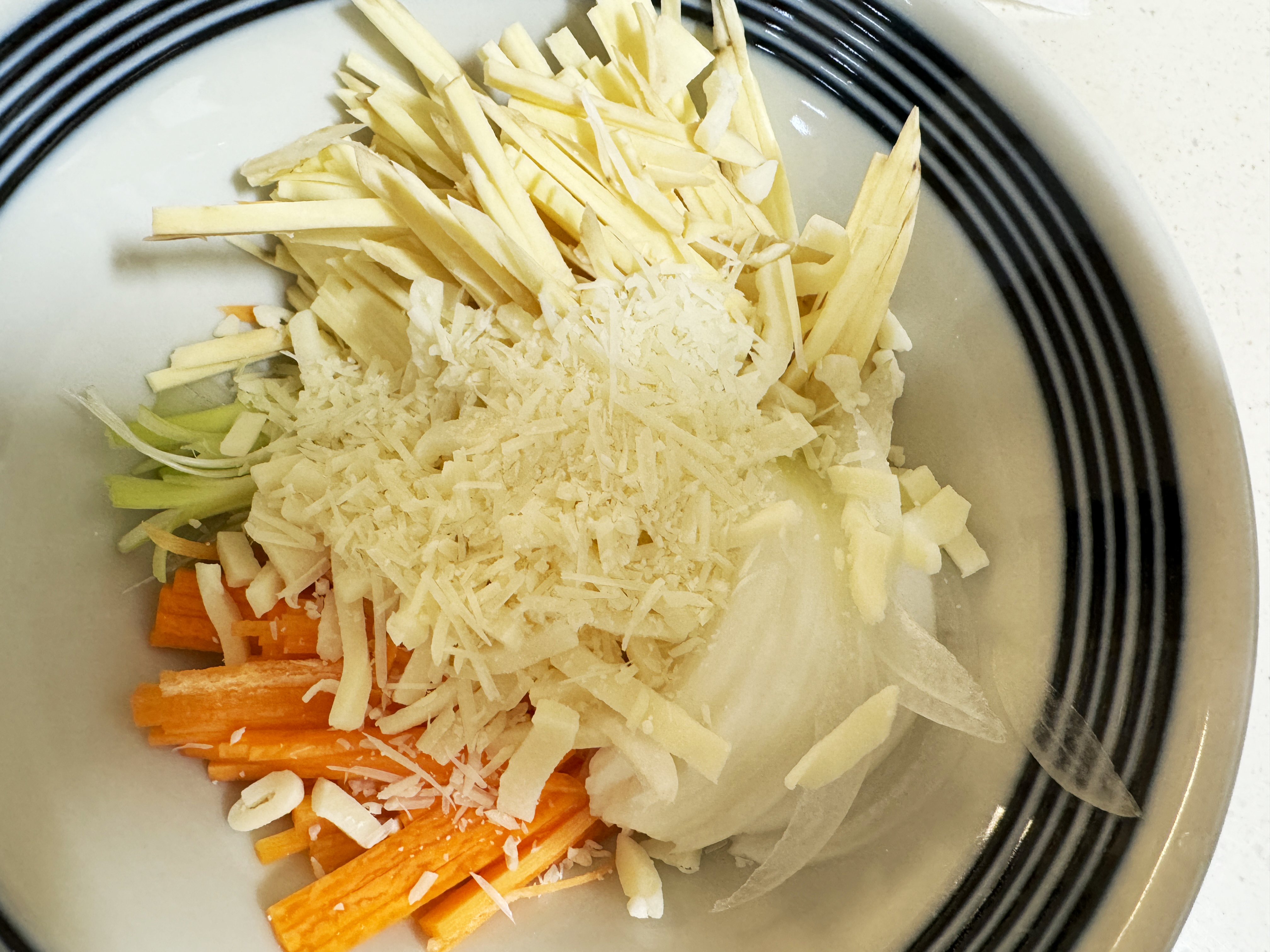 저는 당근, 파, 양파, 고구마 사용했어요:)