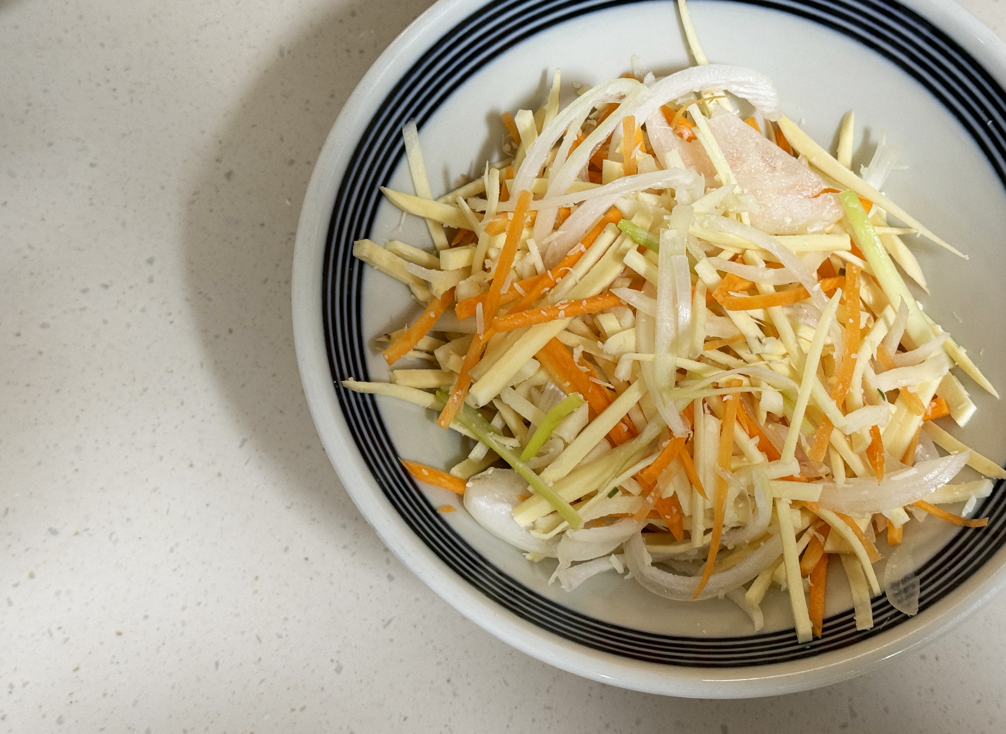 준비한 야채는 깨끗하게 세척 후 길고 가늘게 채썰어 주세요.