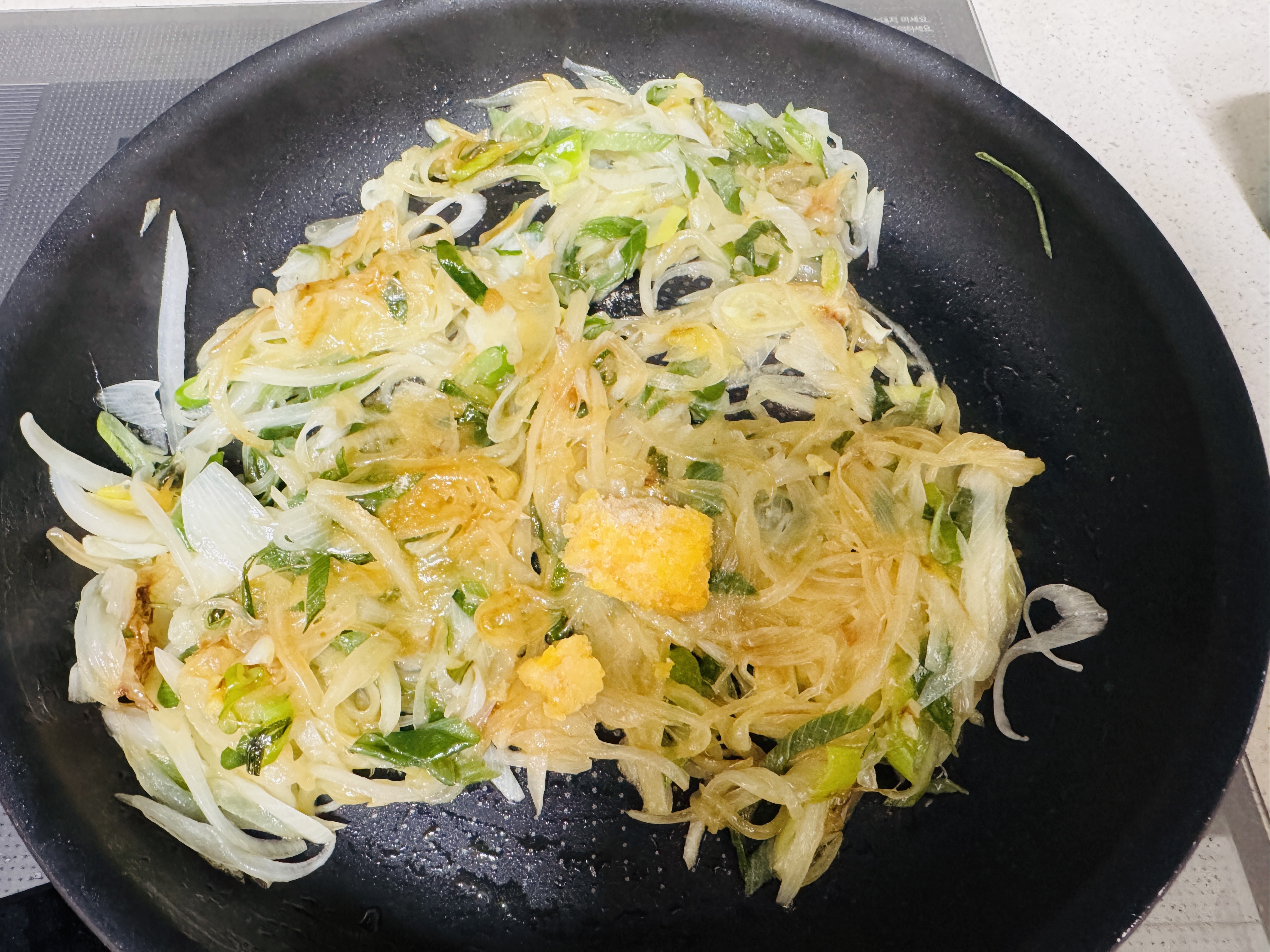 기름 두르지 않은 마른 팬에 양파와 파를 넣어 굽듯이 볶아주세요.