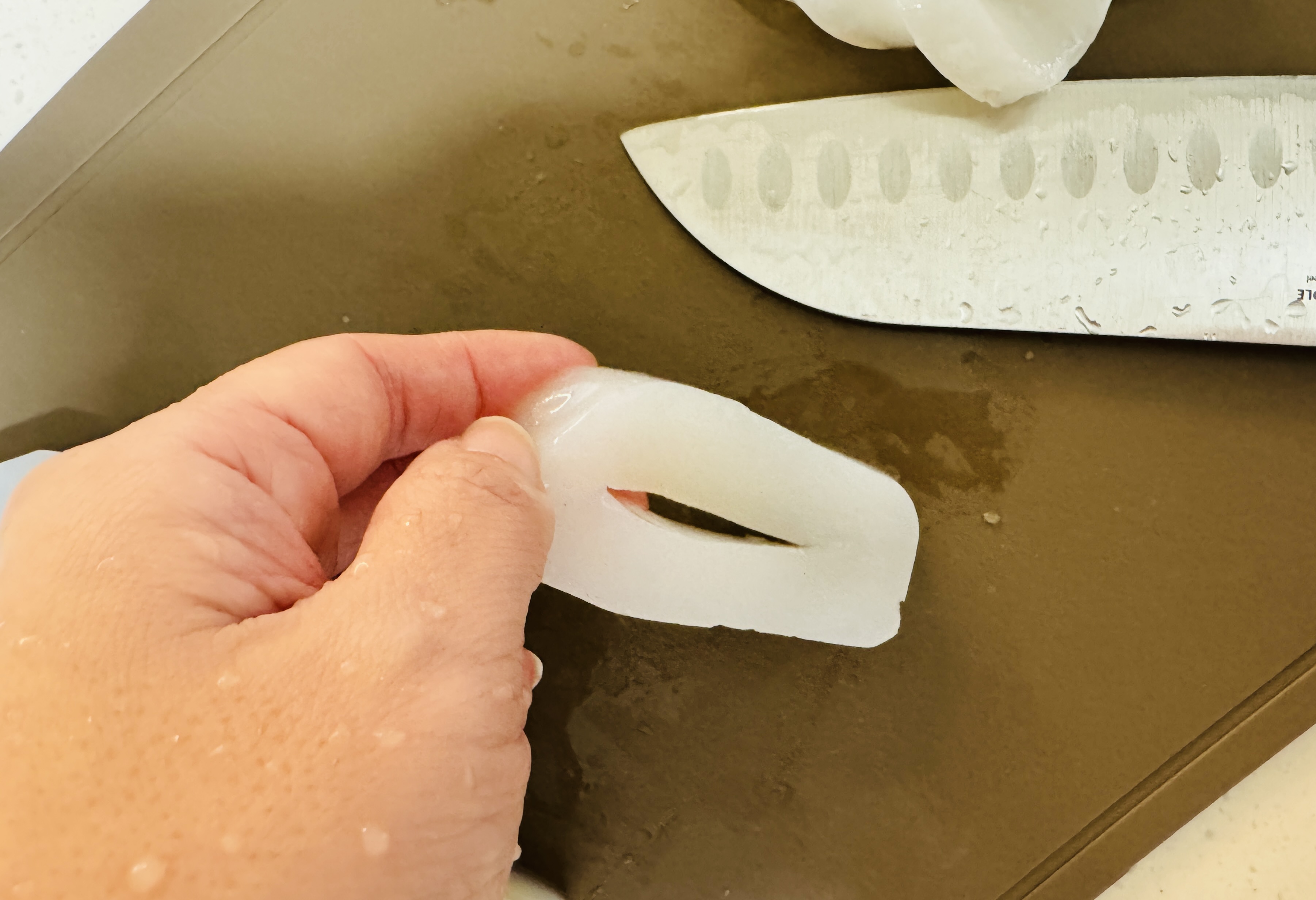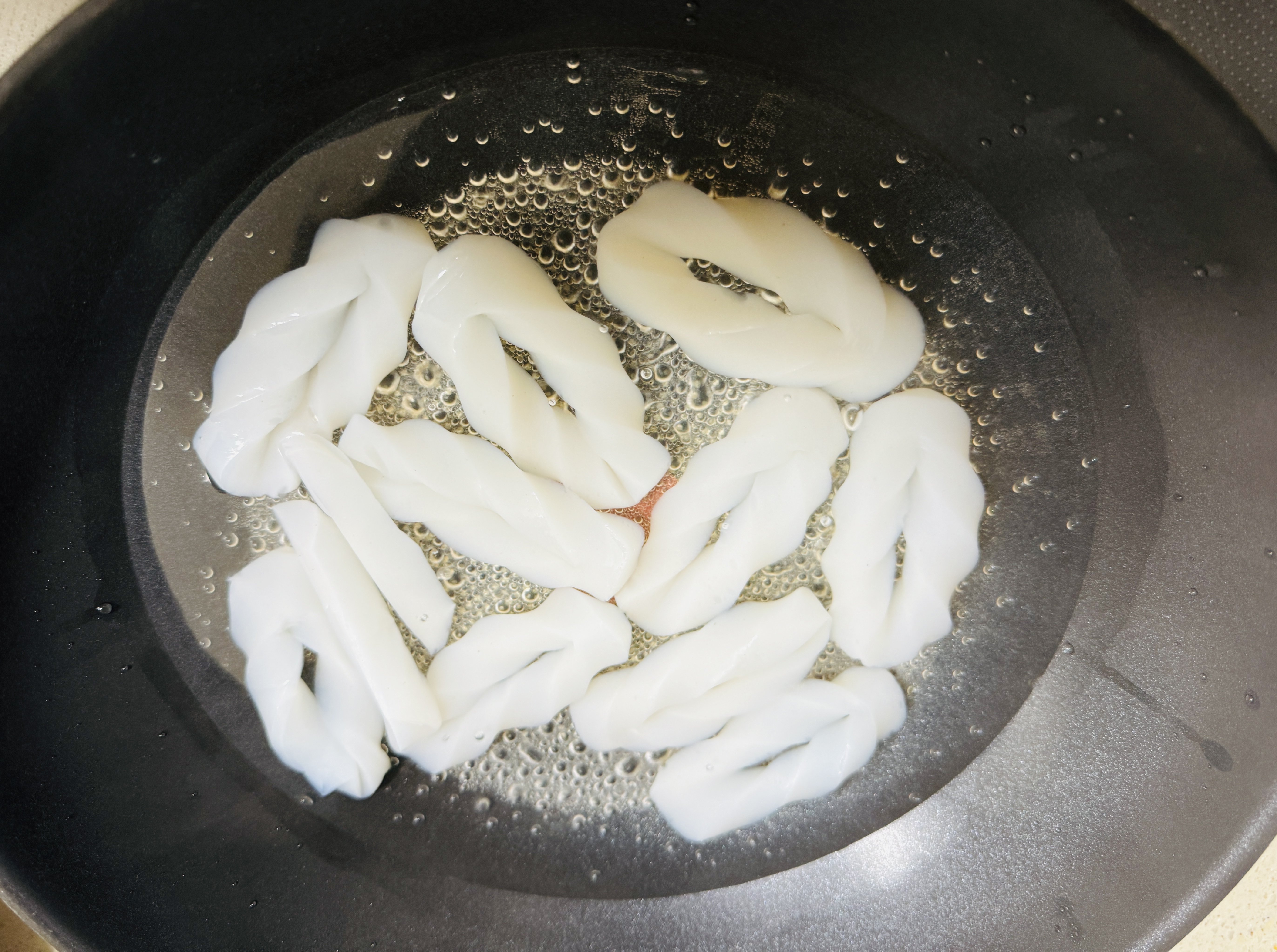 끓는 물에 식초 1T넣어 곤약을 데쳐주세요.