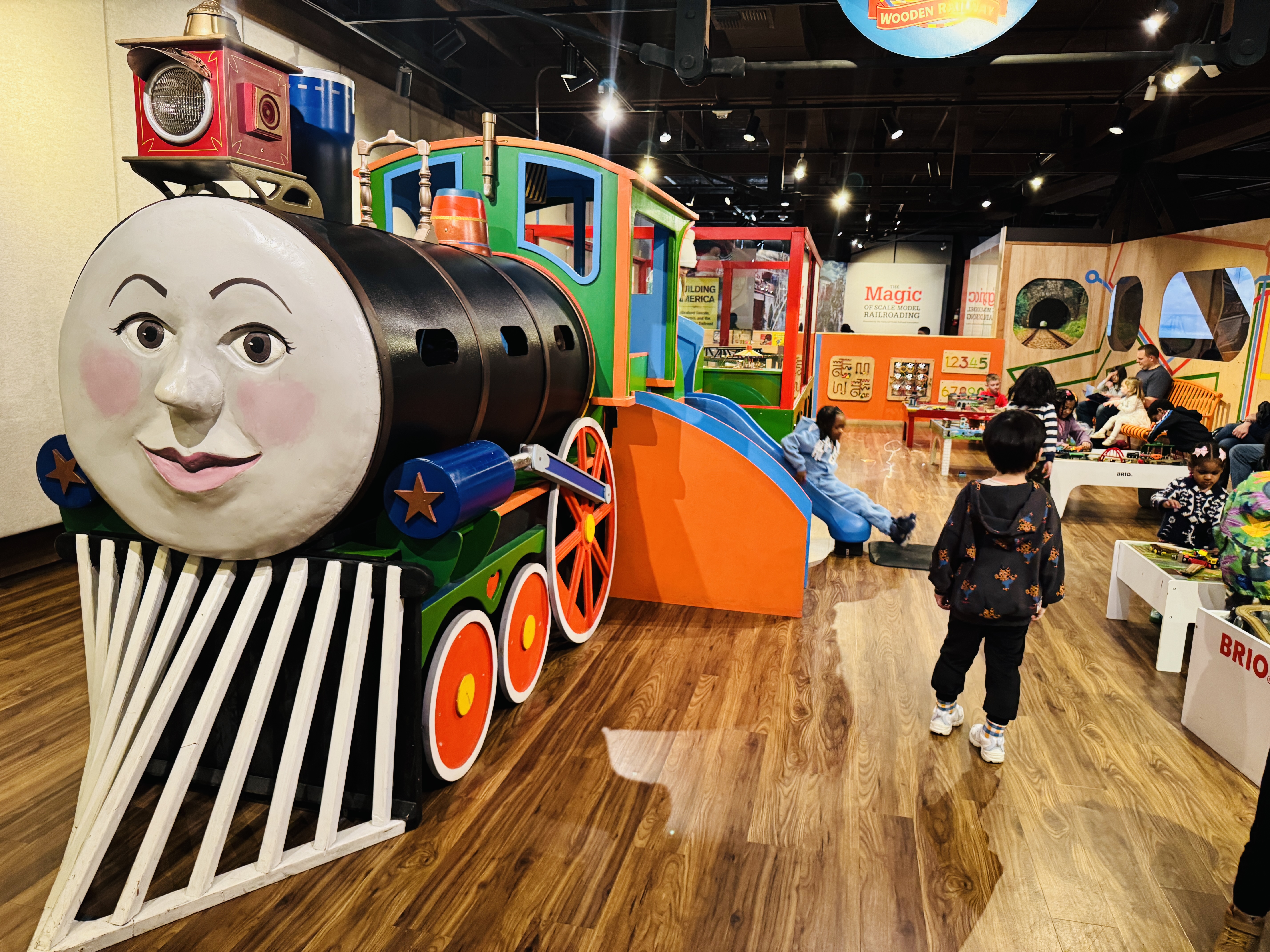 아이들이 놀수 있는 공간이예요. 작은 미끄럼틀이 있고 브리오 기차 놀이 장남감이 있어서 한참 가지고 놀았어요.