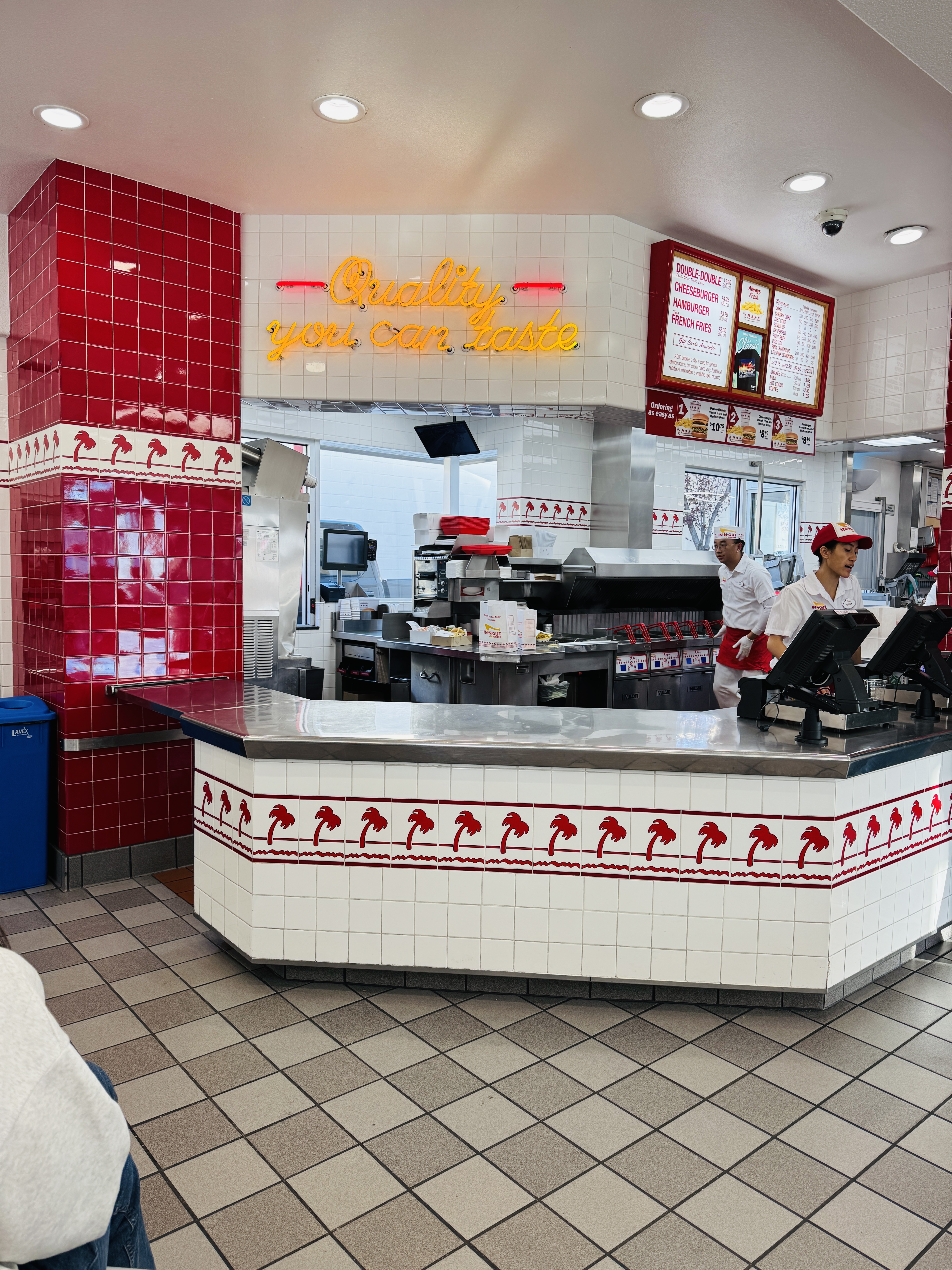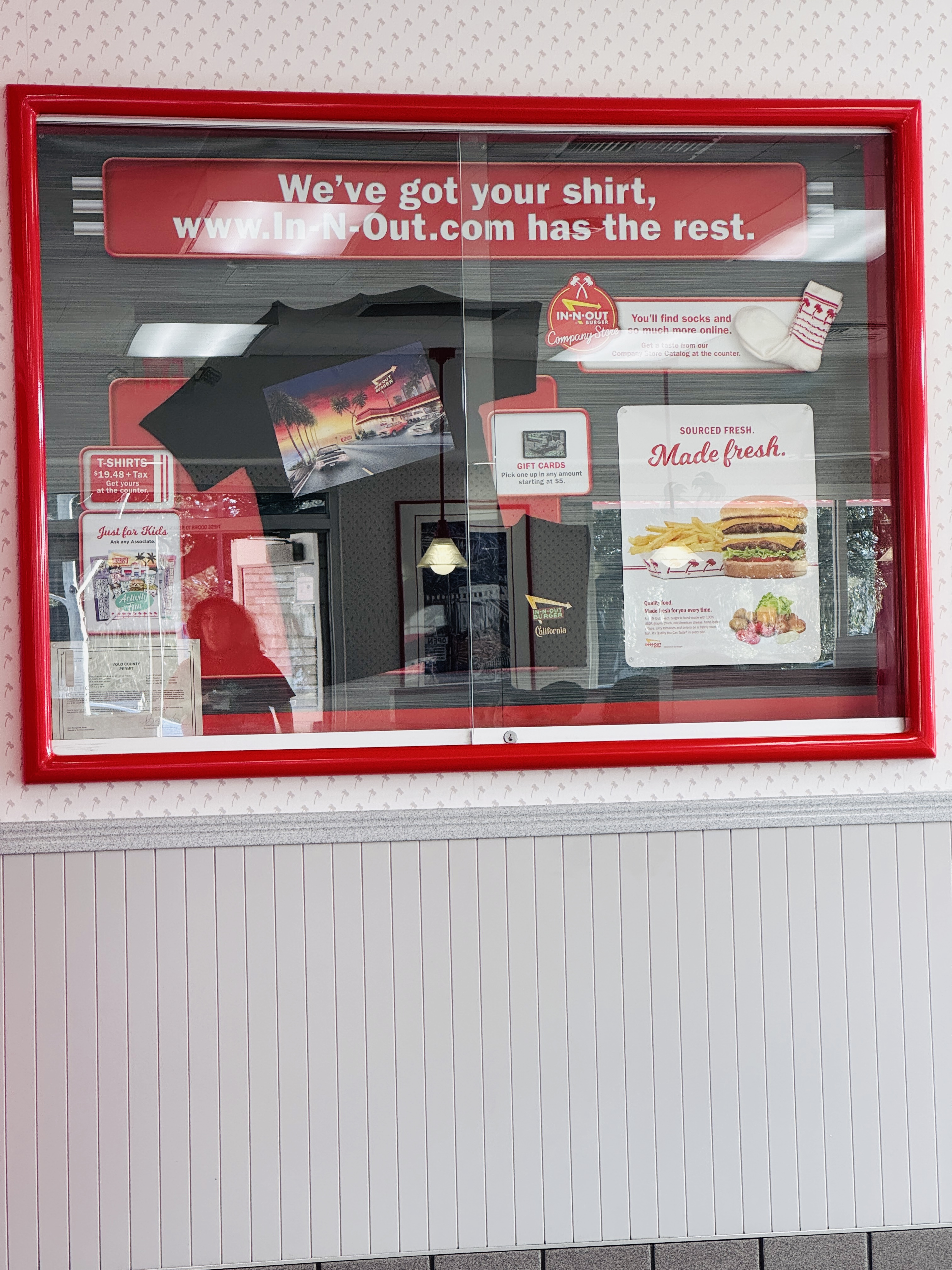 카운터 옆에는 인앤아웃 기념품이 있어요ㅎ 미국은 이런게 정말 많다고 언니가 이야기 하긴 하는데 그만큼 또 유명하니 있는것 아닐까 싶어요🤭