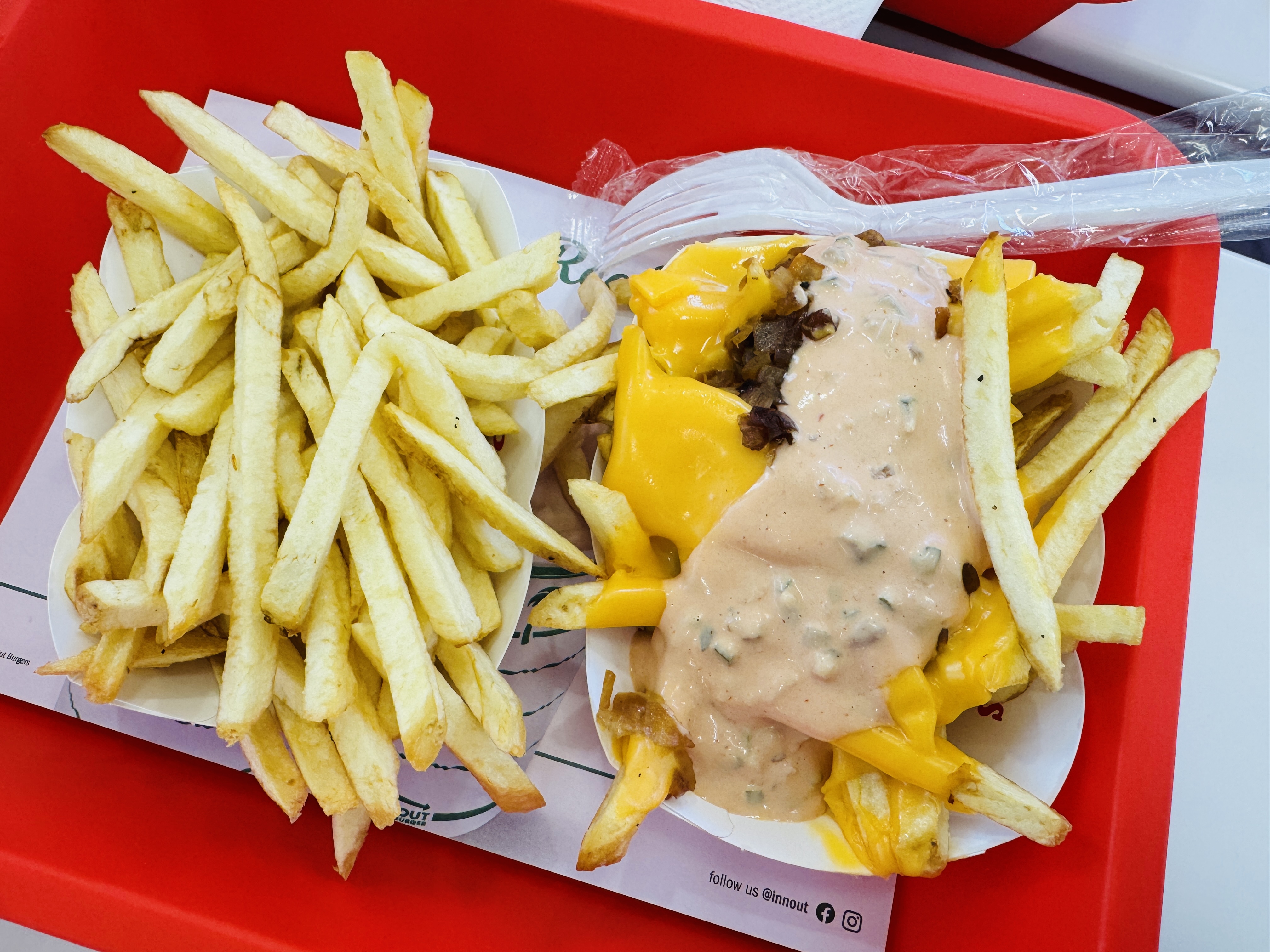 감자튀김은 일반 감자튀김과 치즈+인앤아웃 소스가 들어간 애니멀 스타일 감자튀김 주문했어요.