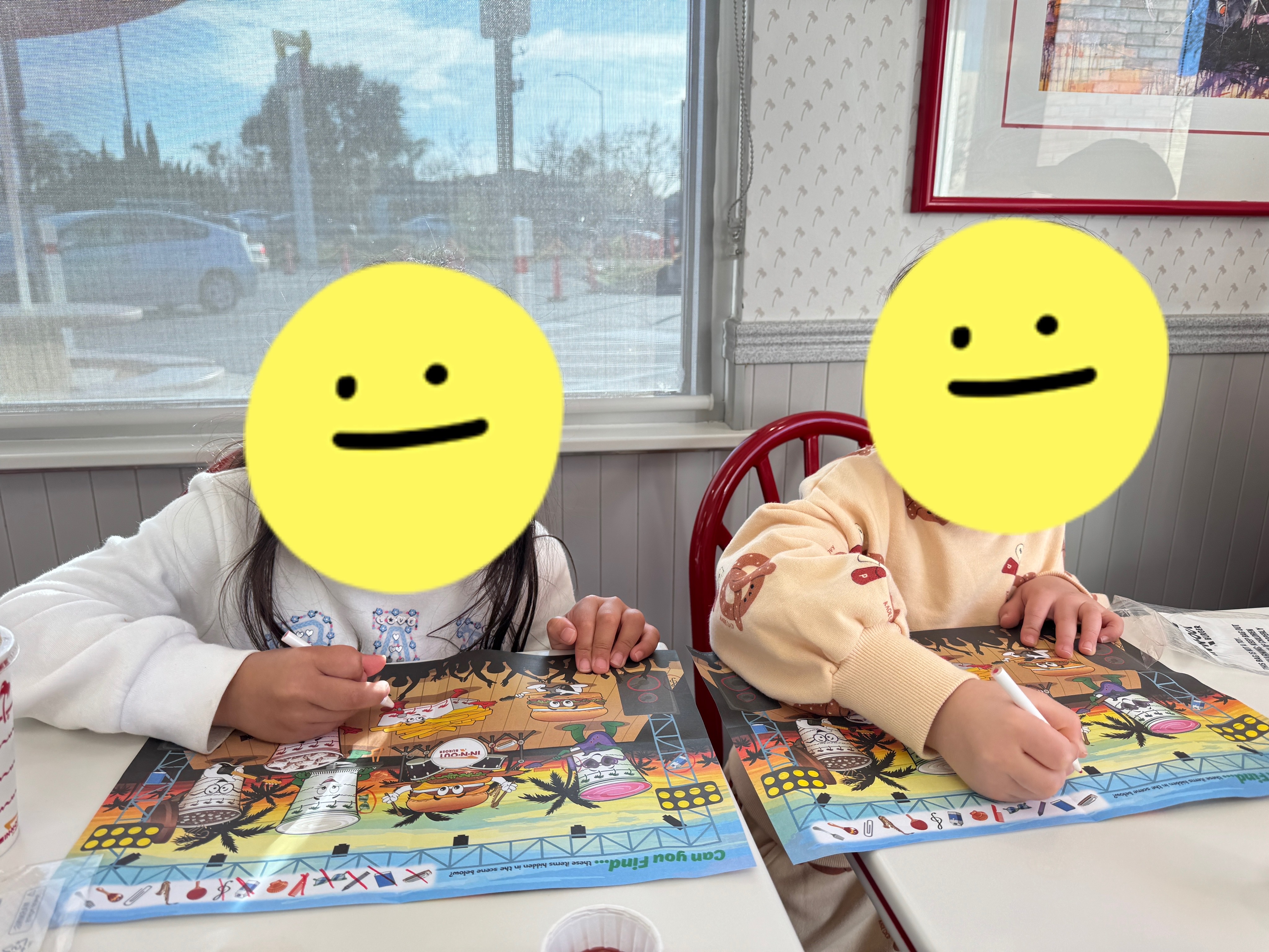 계산할때 아이가 몇명인지 물어보시곤 아이들 할수 있는 놀잇감도 주었어요ㅎ 틀린그림 찾기도 있고 영어 단어 찾기 글자 찾기 등이 있어서 기다리는 동안 하기 좋았어요ㅎ