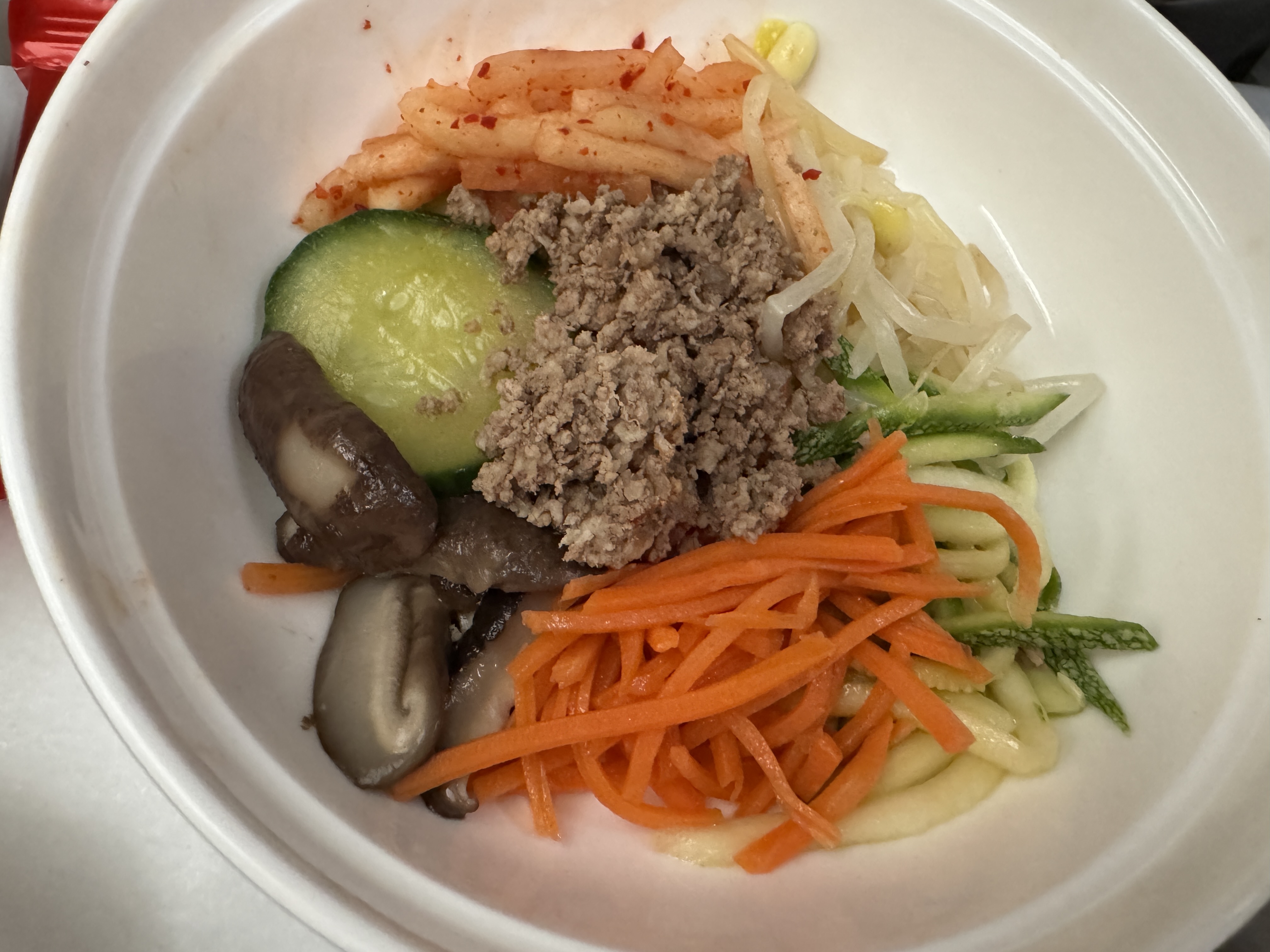 제 식사는 비빔밥 이었는데요, 야채가 생각보다 다양해서 좋았어요. 당연히 일반 식당 비빔밥보단 못하지만 기내식으로는 아주 만족스러웠어요☺️