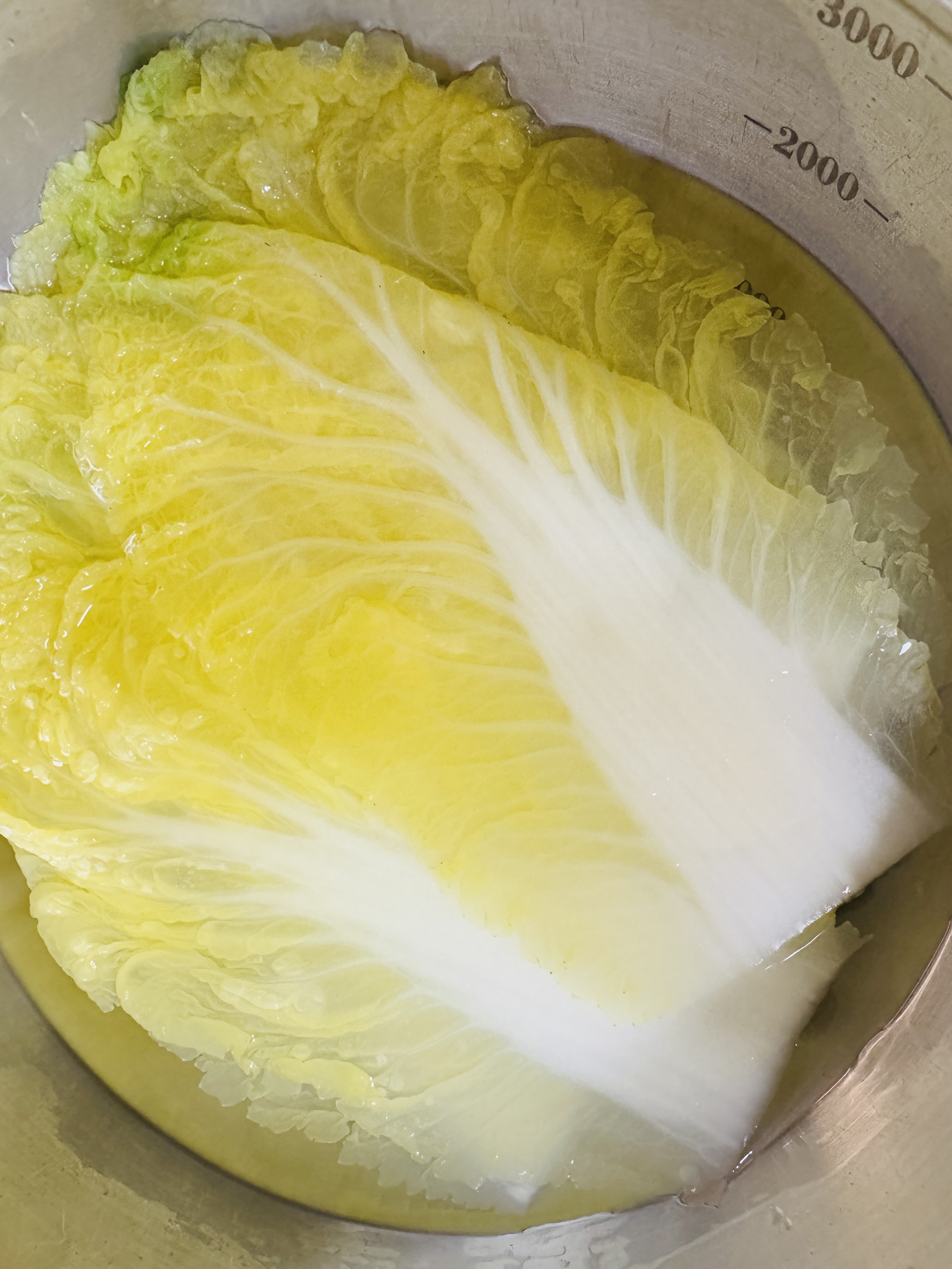 끓는 물에 씻은 배춧잎 10장 넣어 대 부분이 브드러워질때까지 데쳐주세요.