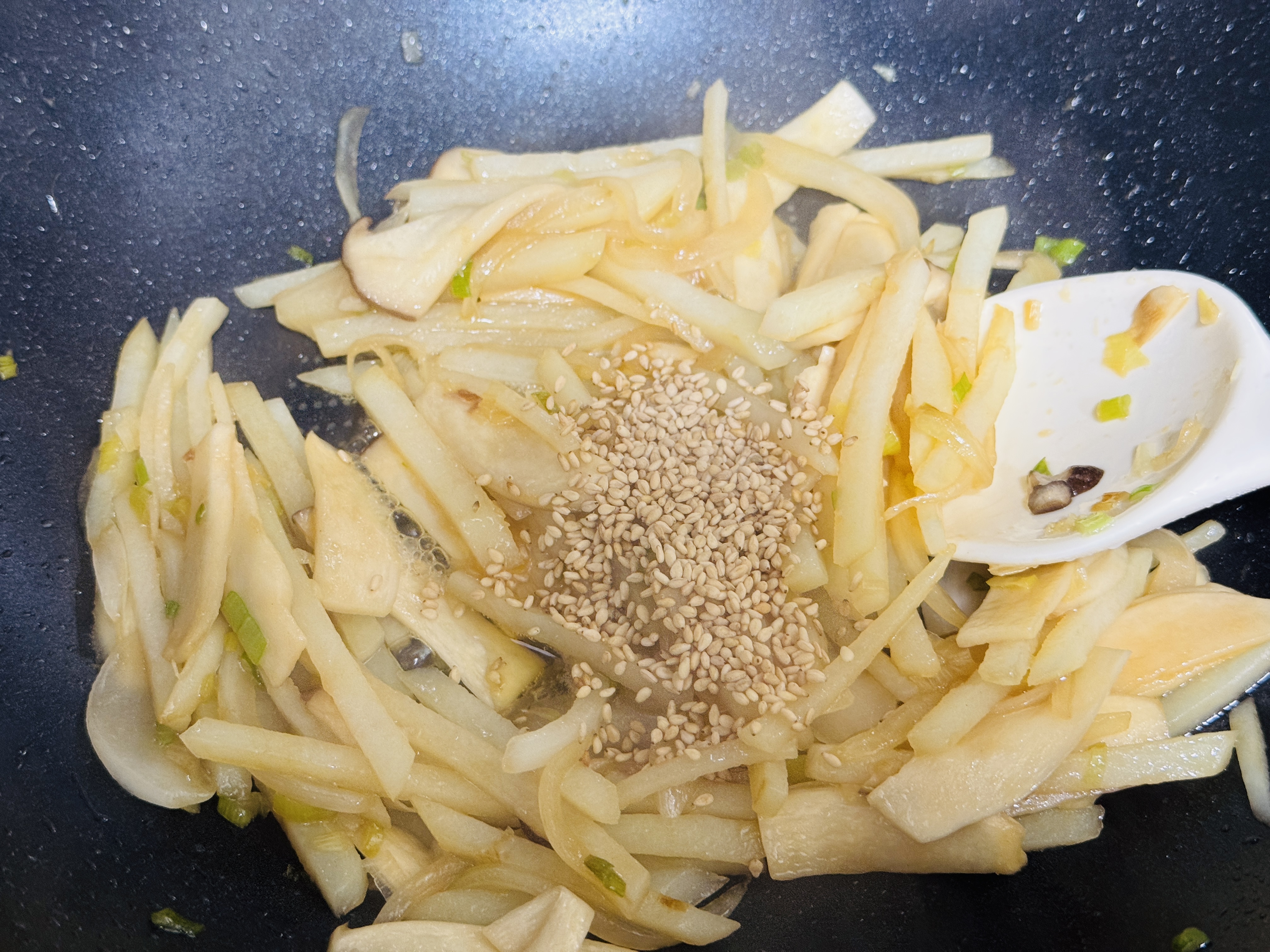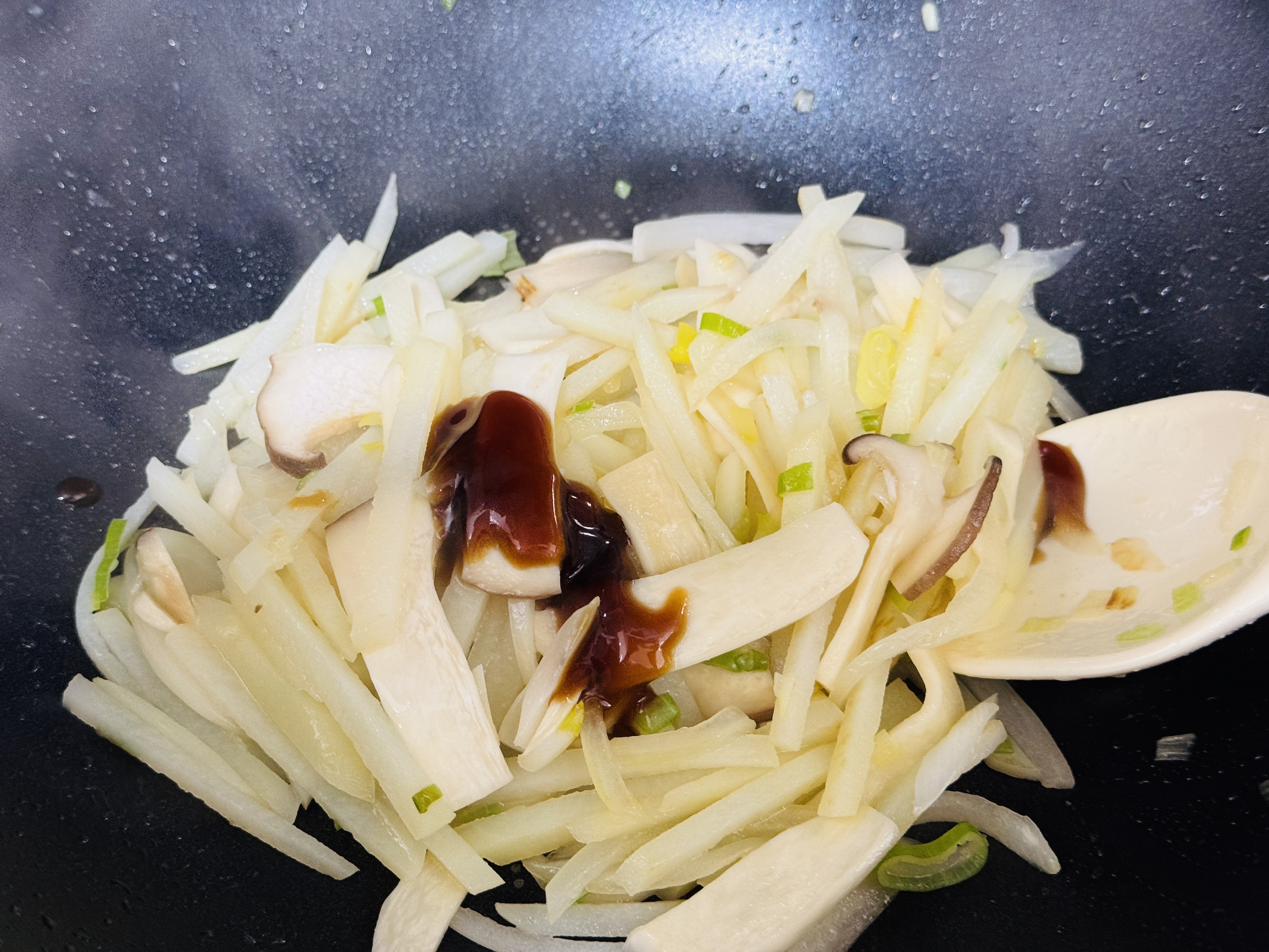 오늘은 굴소스를 넣은 감자 볶음 만들었어요.