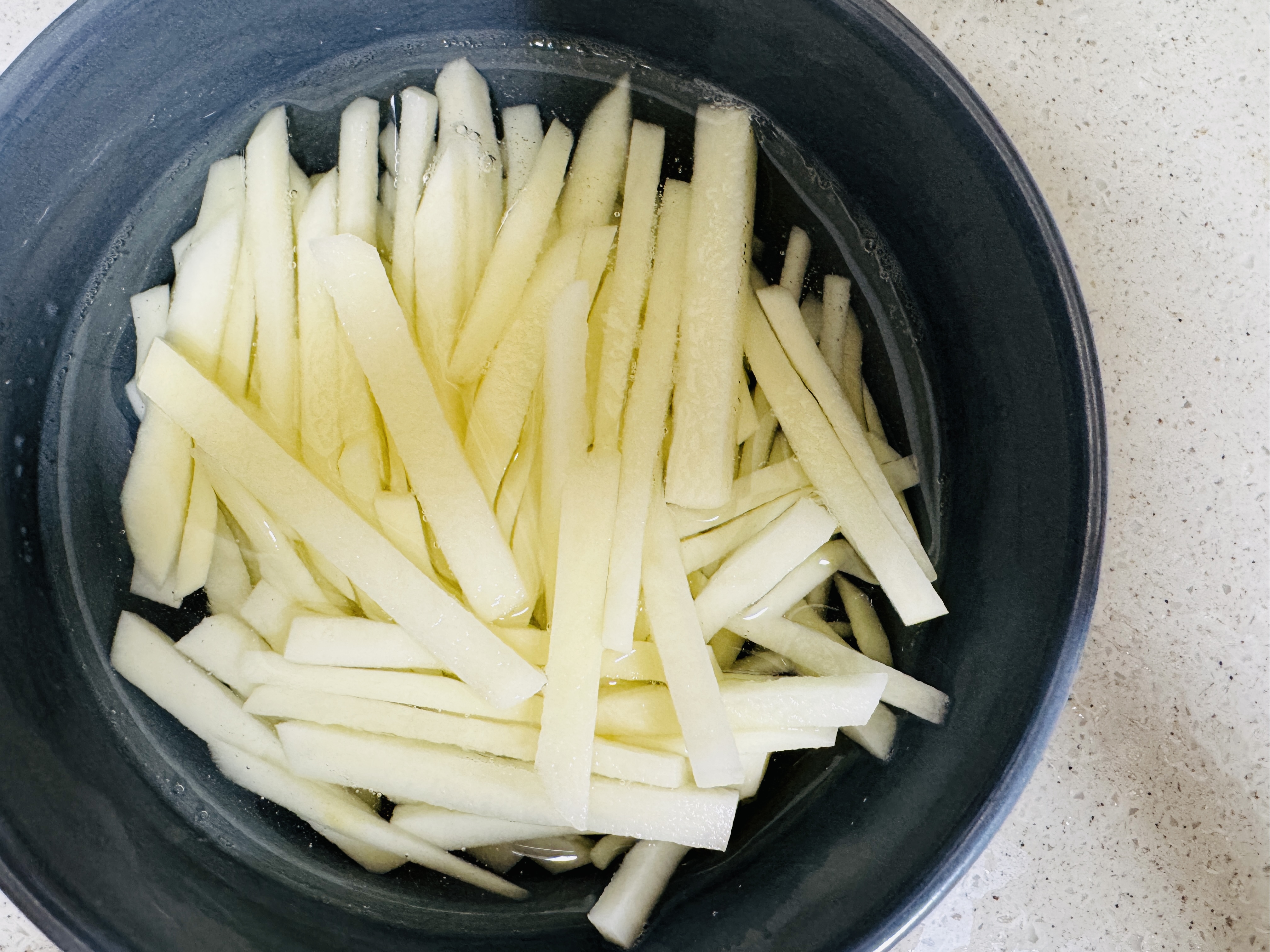 감자는 채썰어 물에 담궈 전분기를 제거해 줍니다.