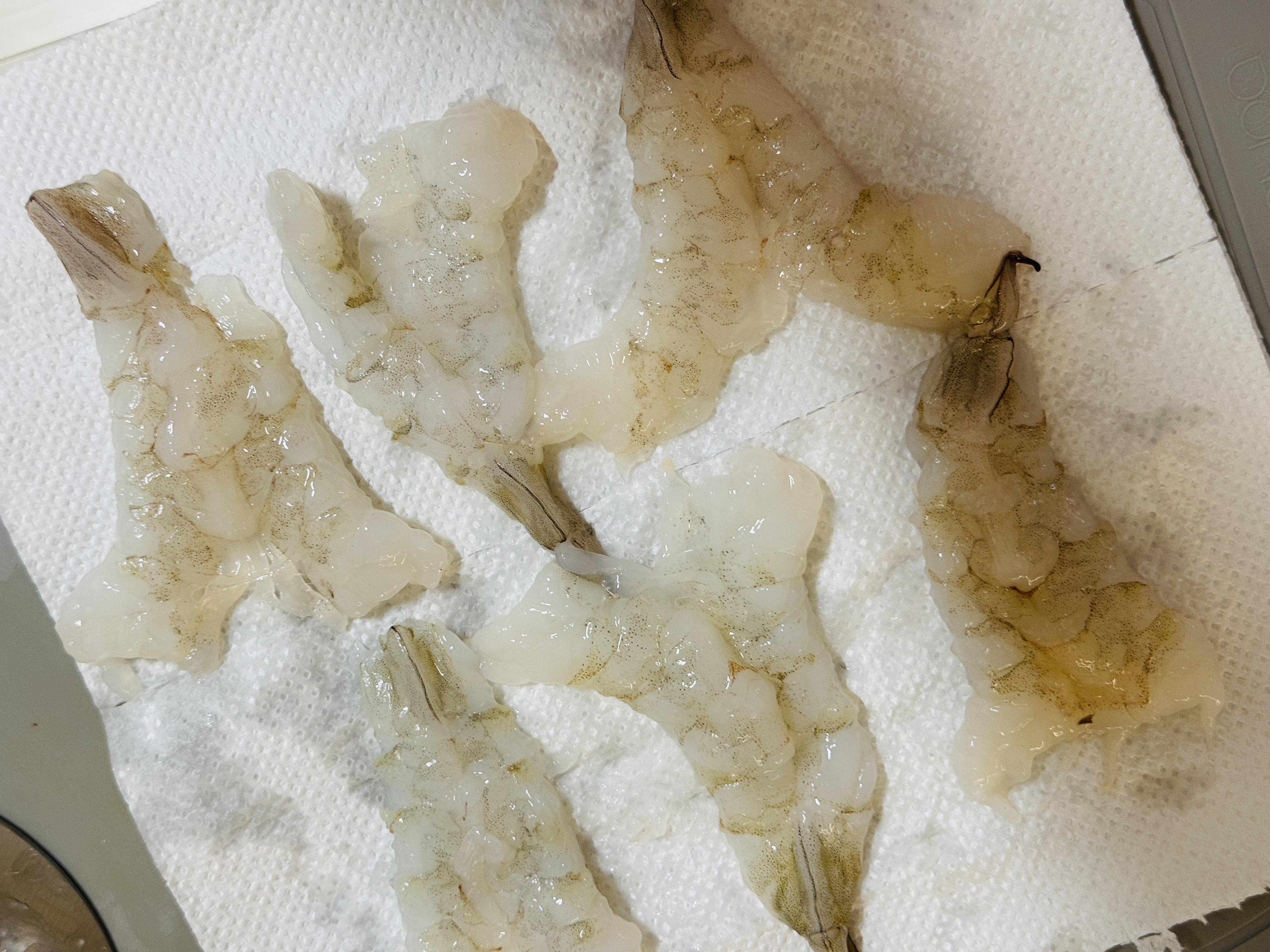해동된 새우는 반으로 잘라 내장 제거해 주세요.