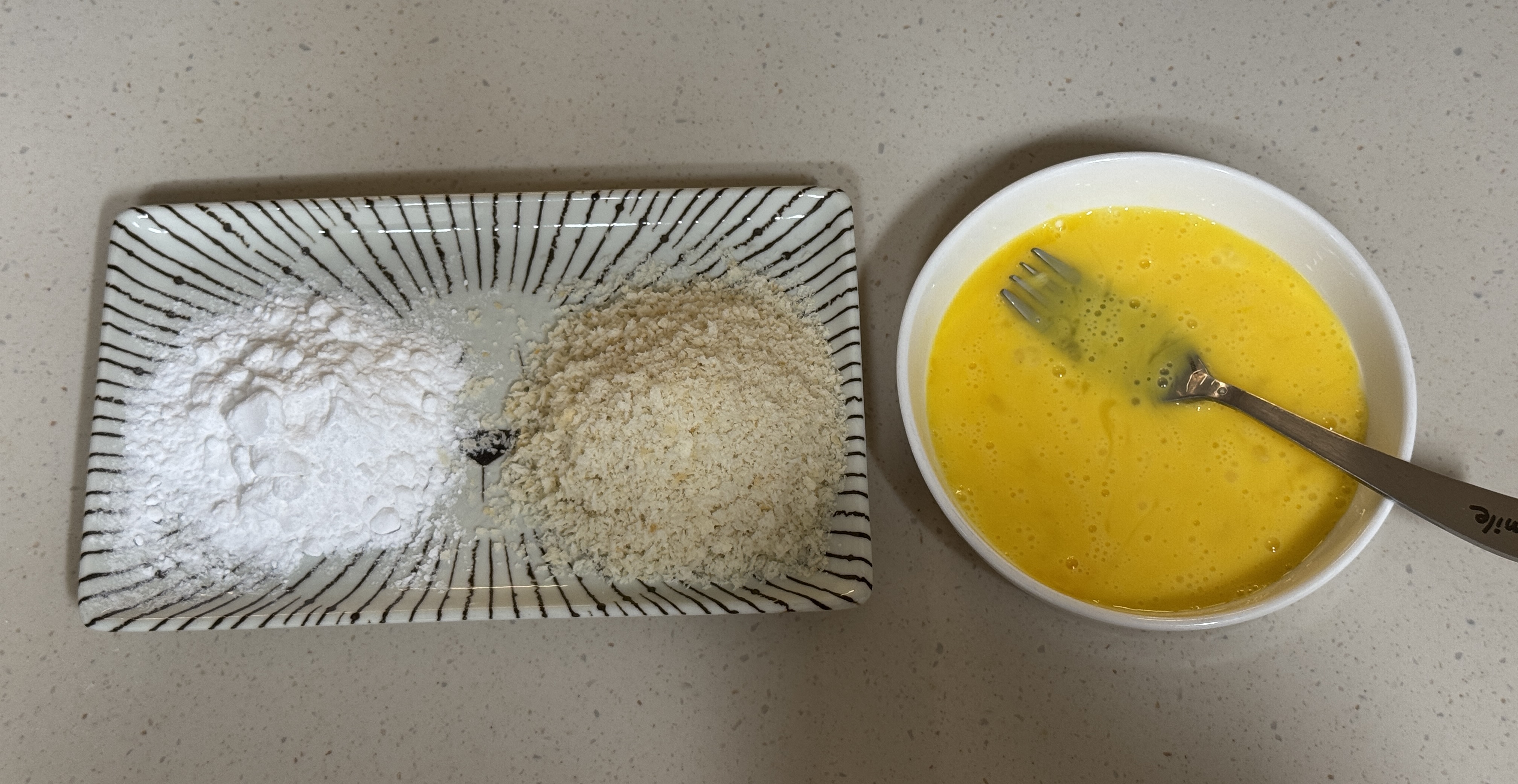 전분가루, 빵가루 준비하고 달걀 1개 풀어서 준비해 주세요.