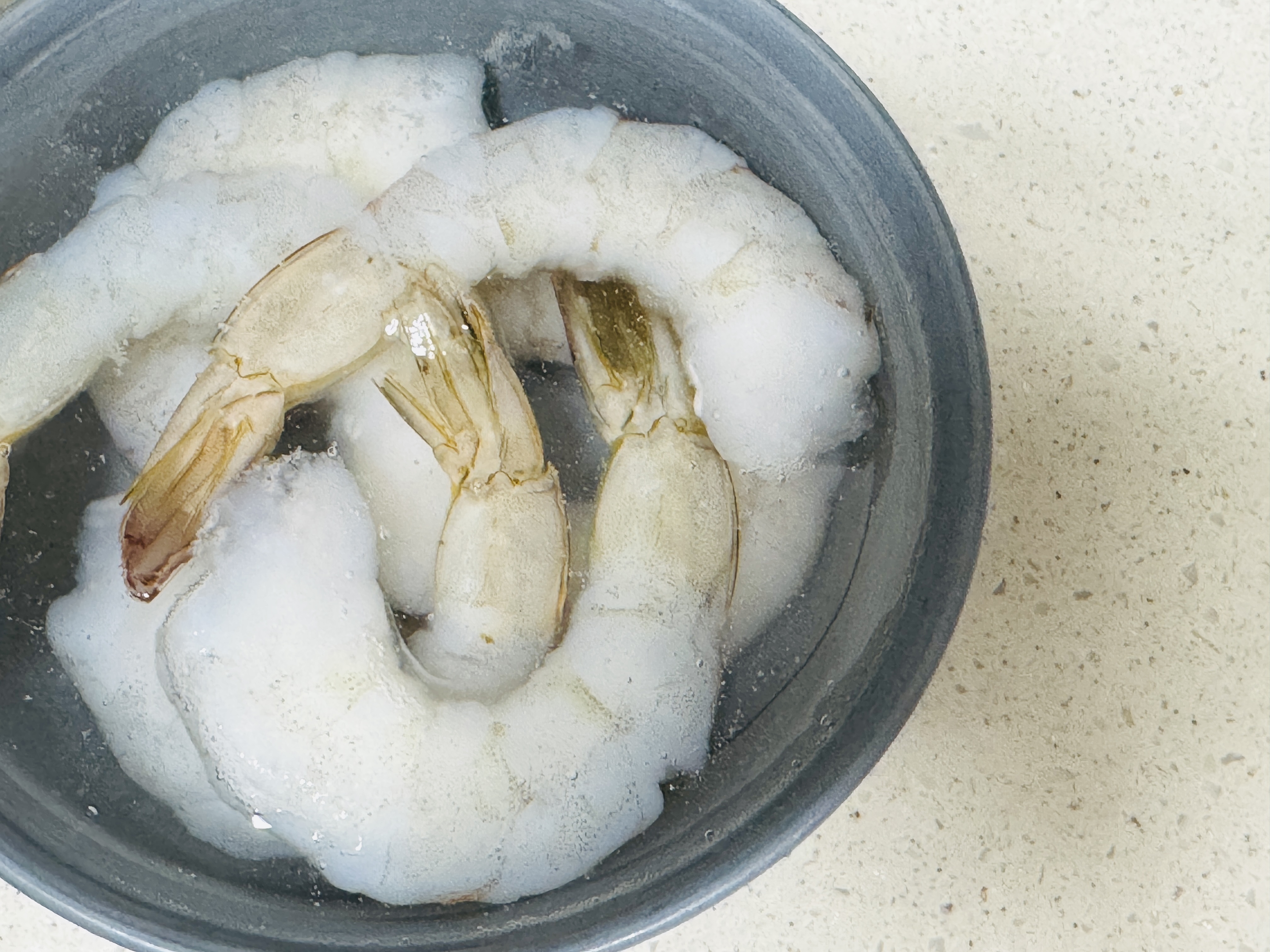 냉동 새우는 미리 물에 담궈 해동시켜 주세요.