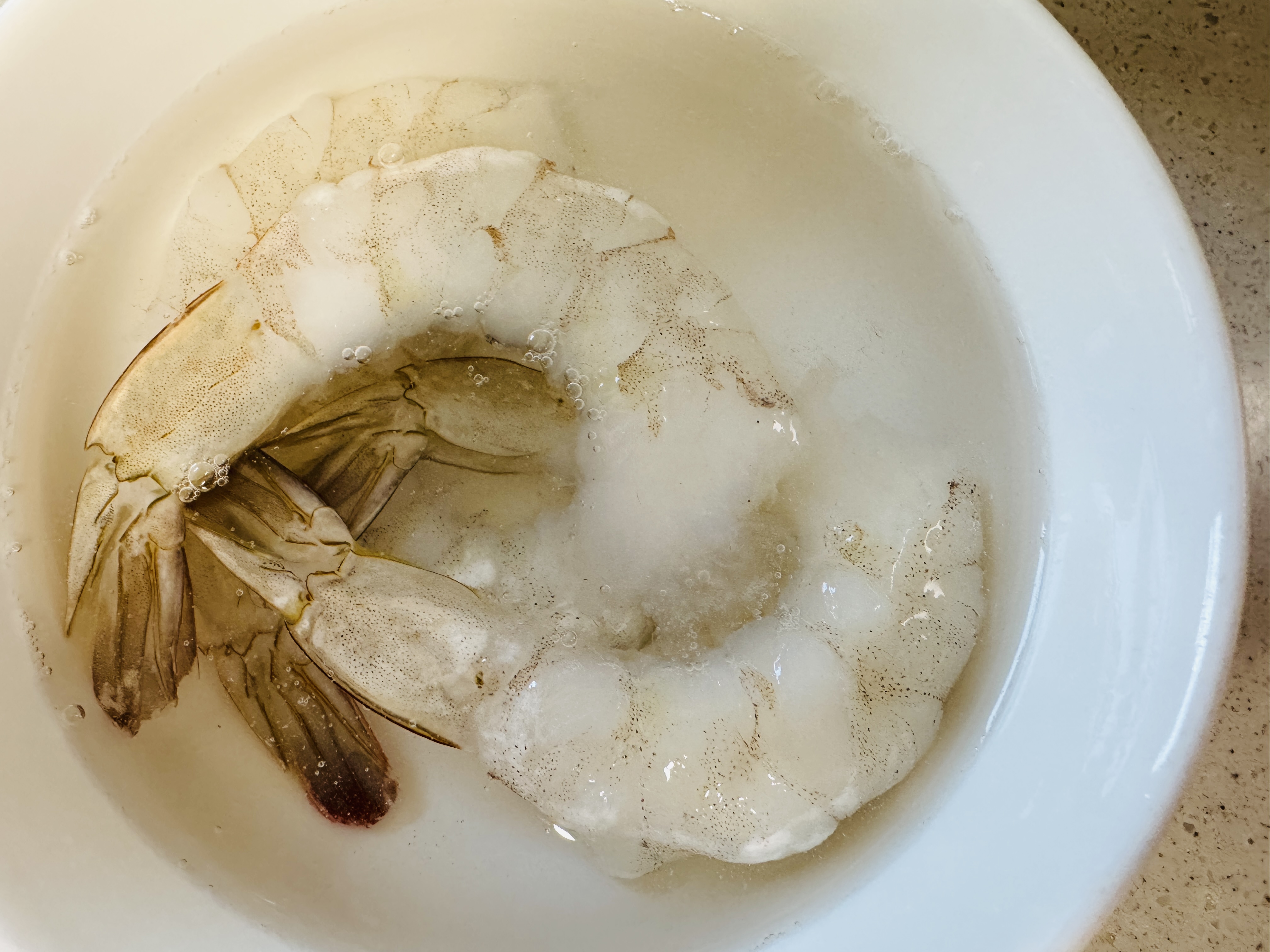 냉동 새우는 찬물에 해동시키고 마른 미역은 물에 불려 준비해 주세요.