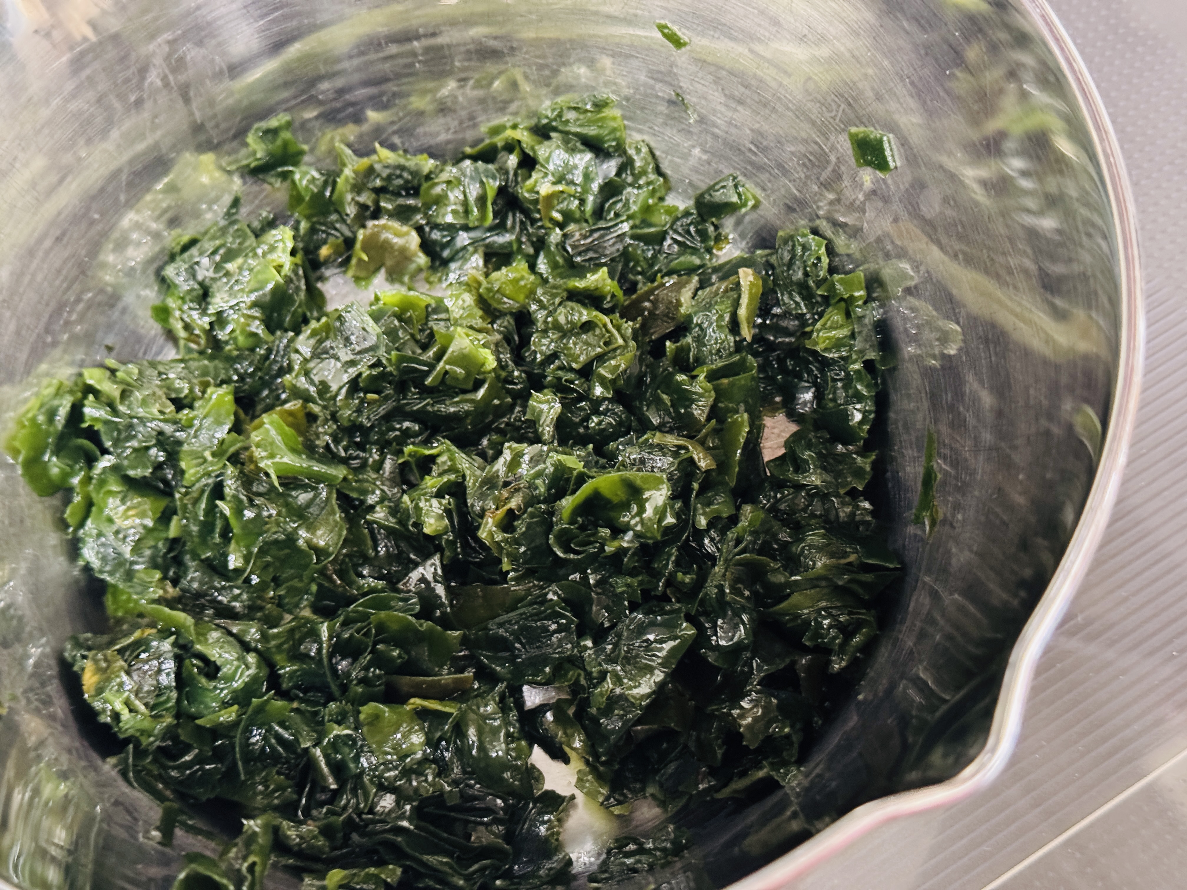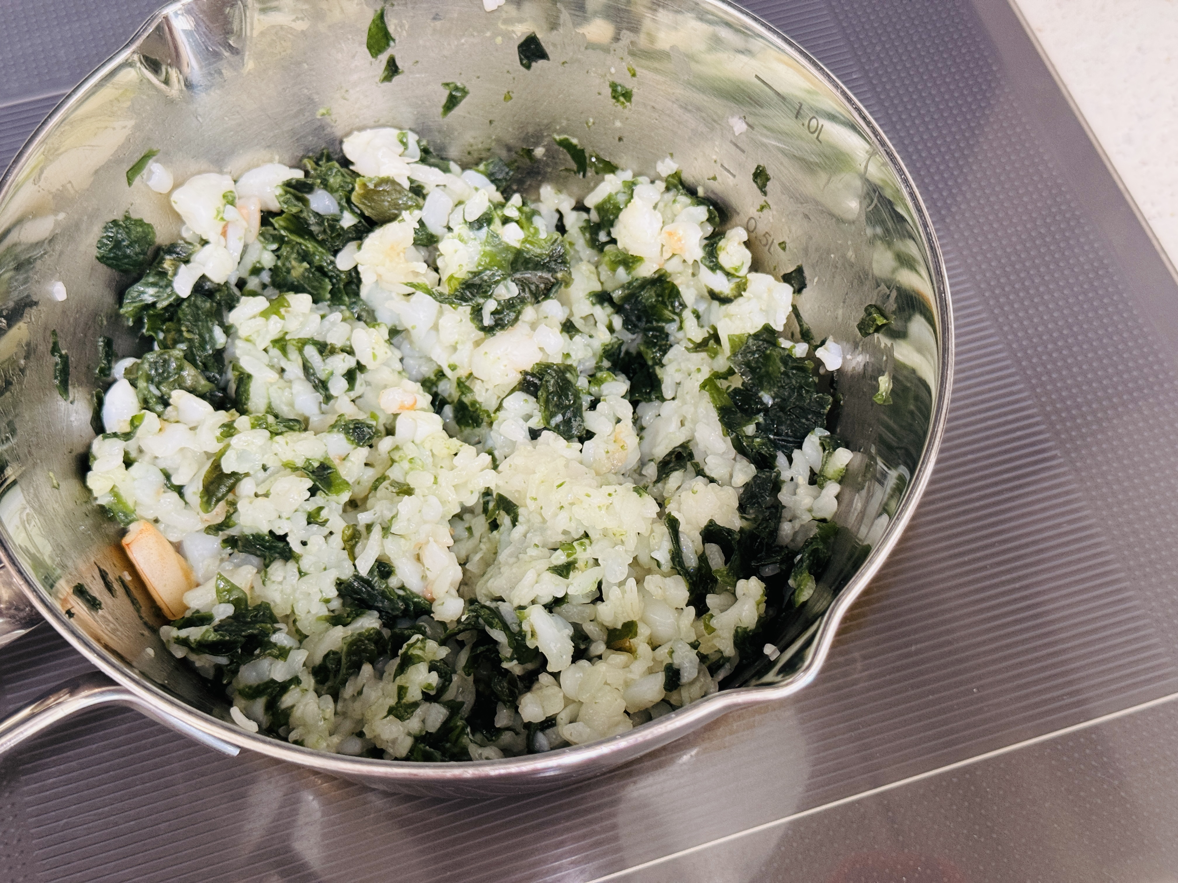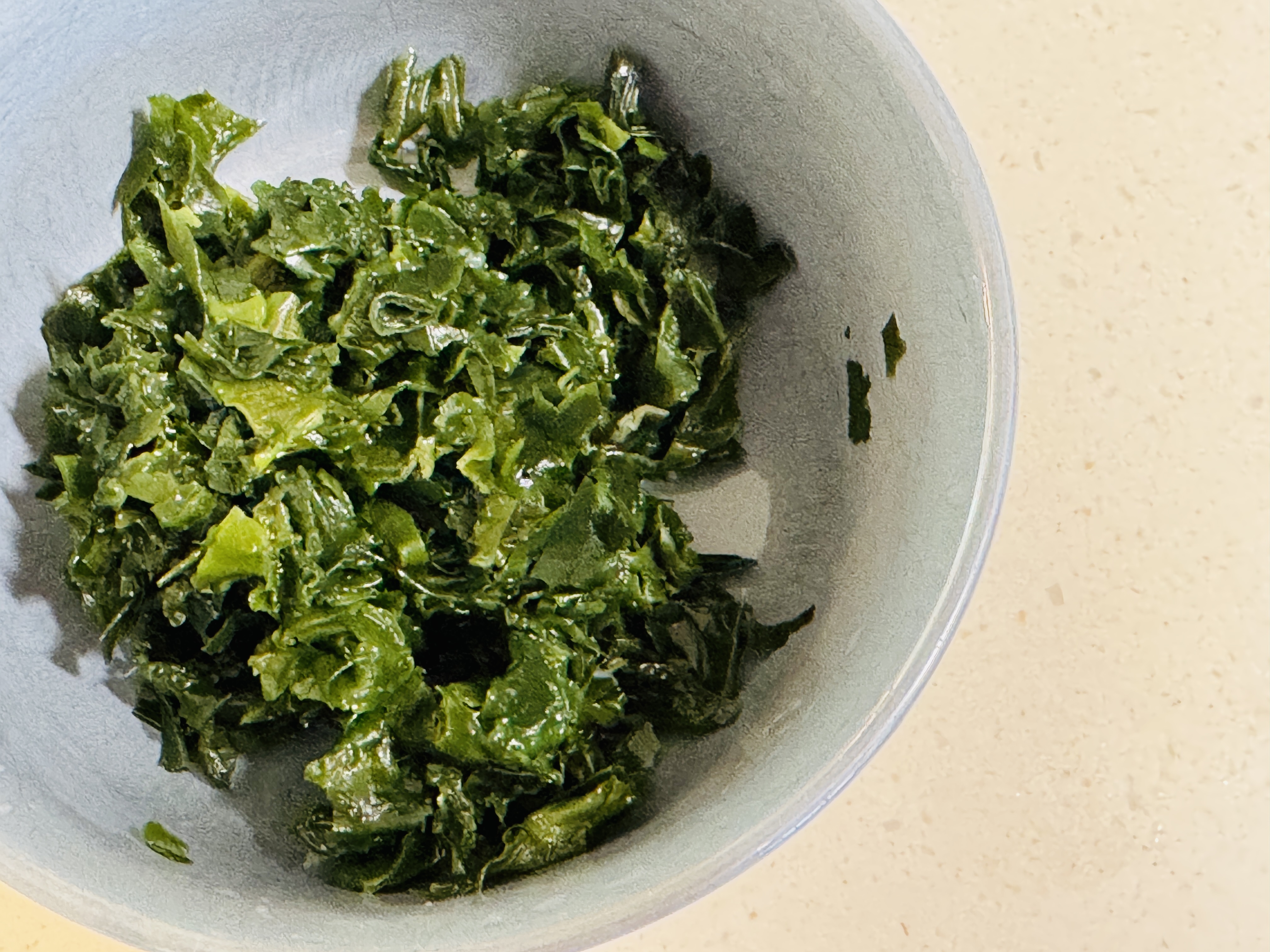 새우살은 다져서 준비하고 미역도 잘게 잘라주세요.