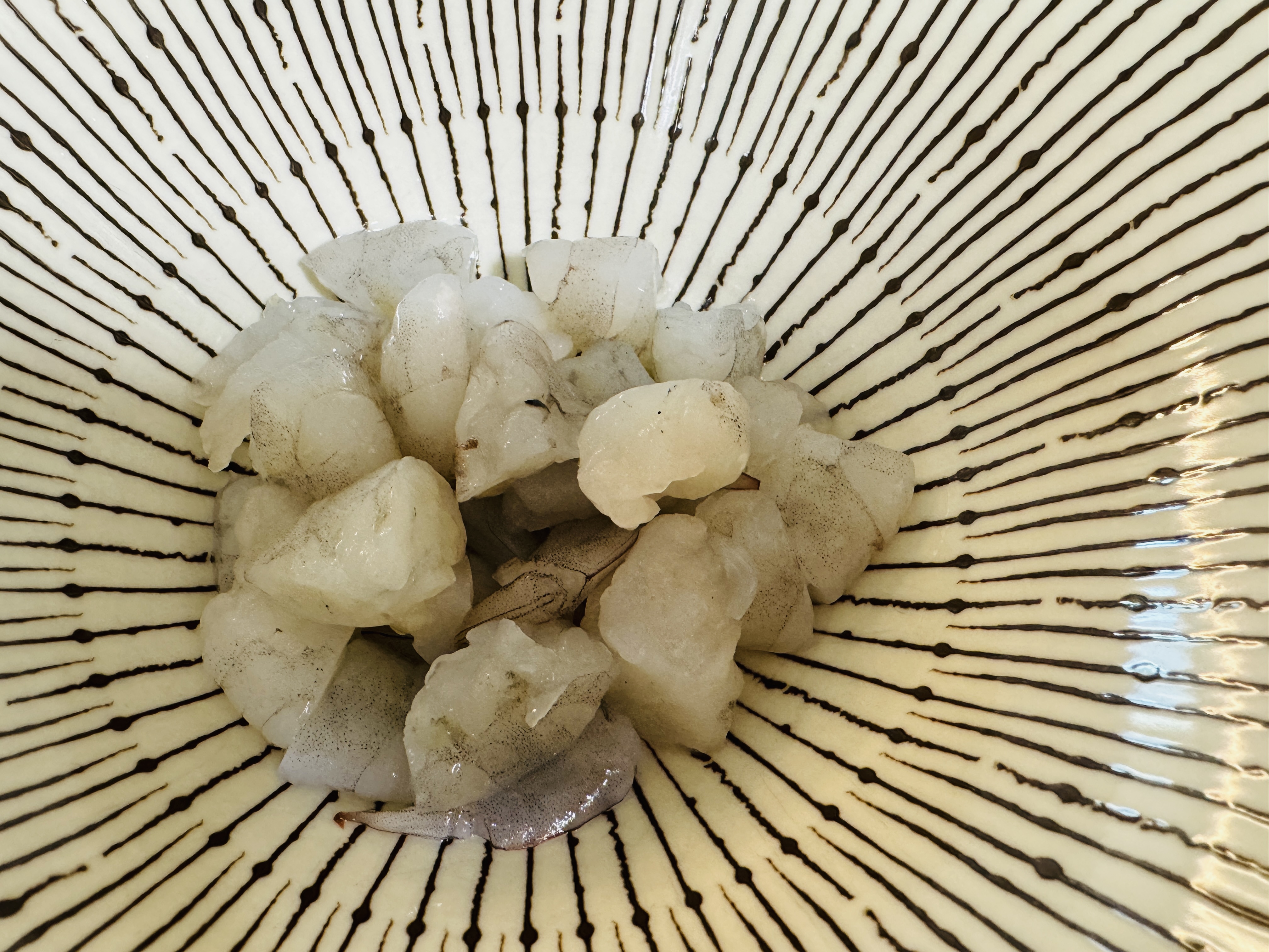 새우도 내장을 뺀 후 한입크기로 잘라주세요.