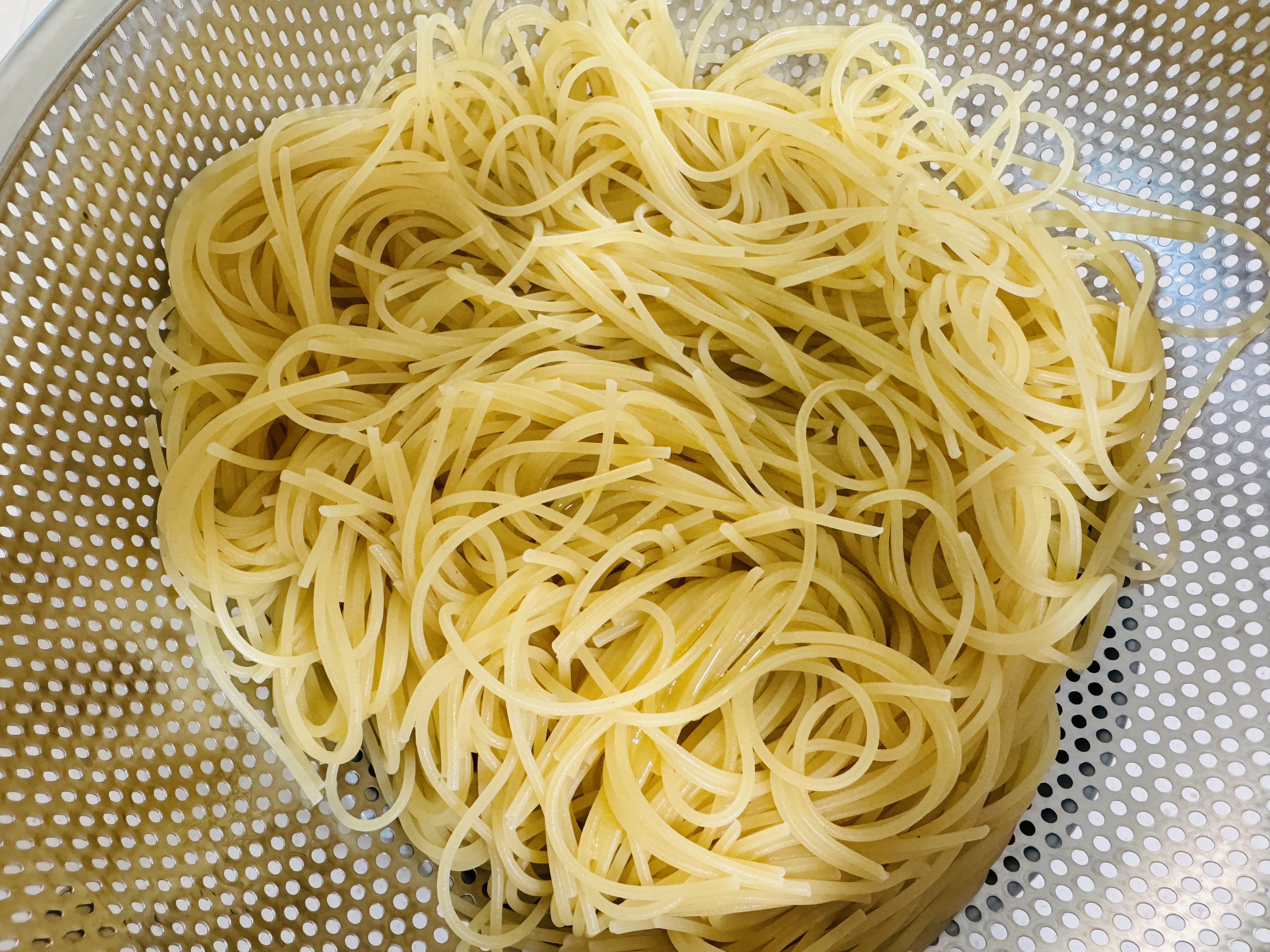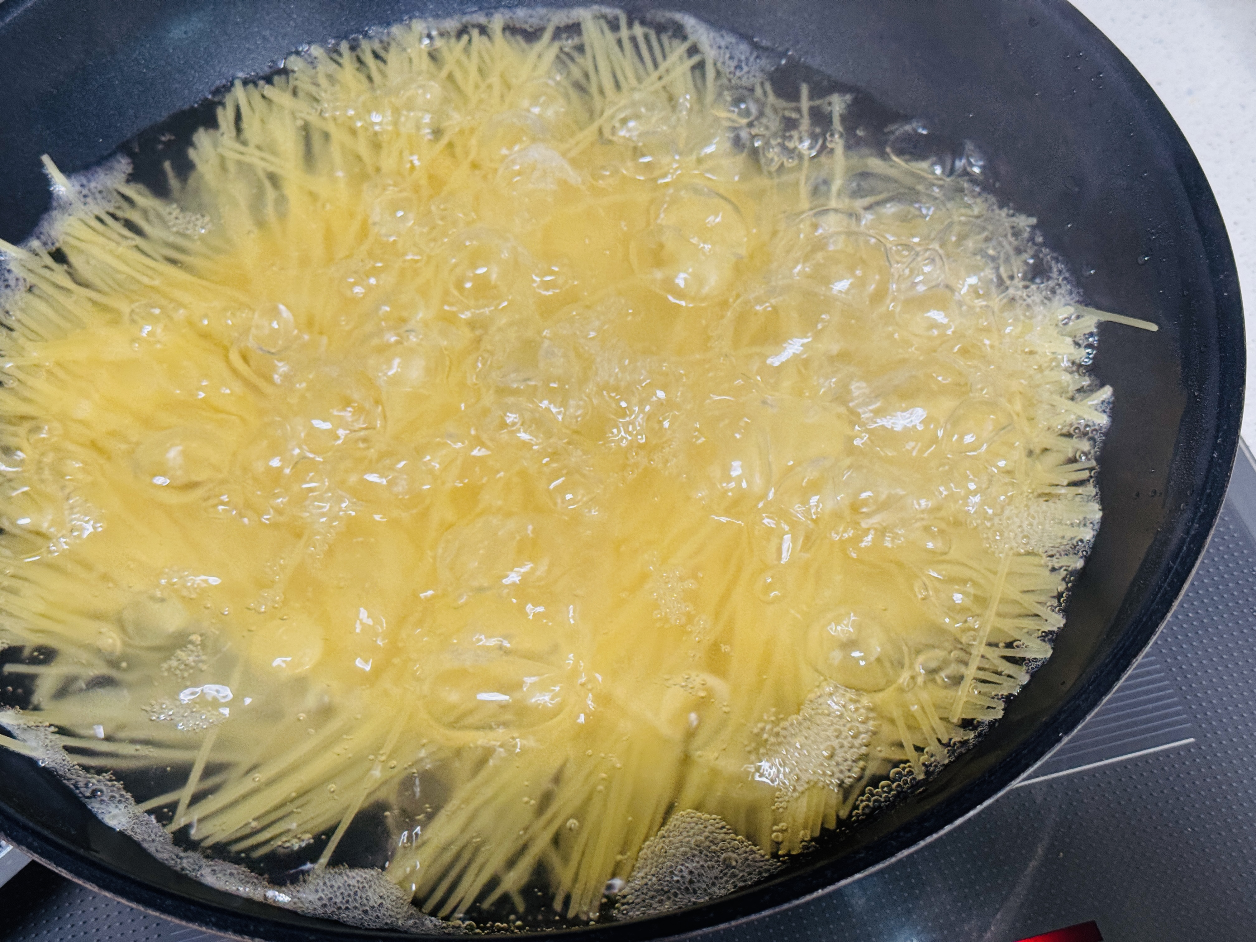 끓는물에 면을 넣어 면을 삶아주세요. 카펠리니는 처음 사용해 봤는데 3분만 삶으면 되더라고요ㅎ 빨리 익어서 좋아요☺️
