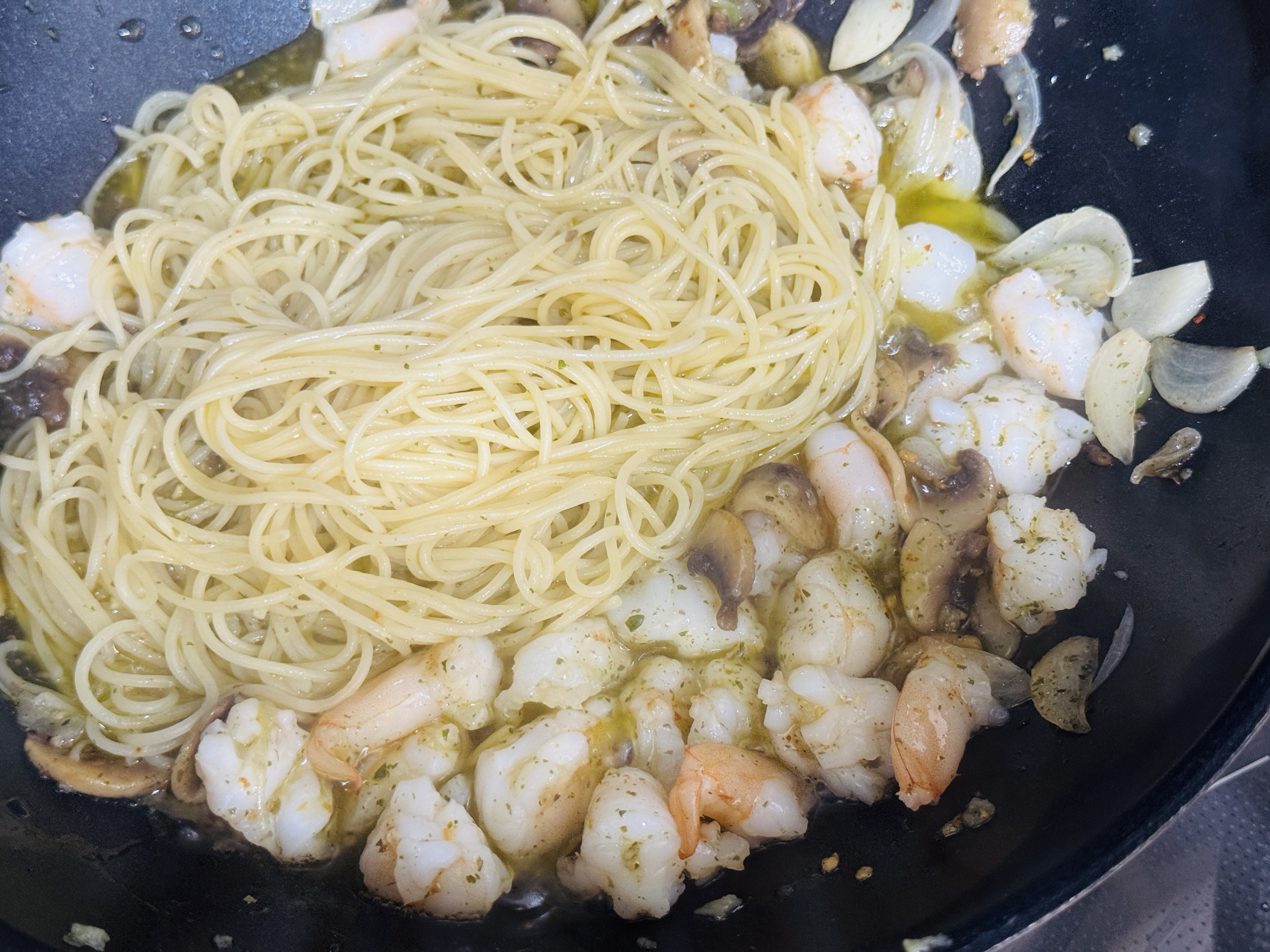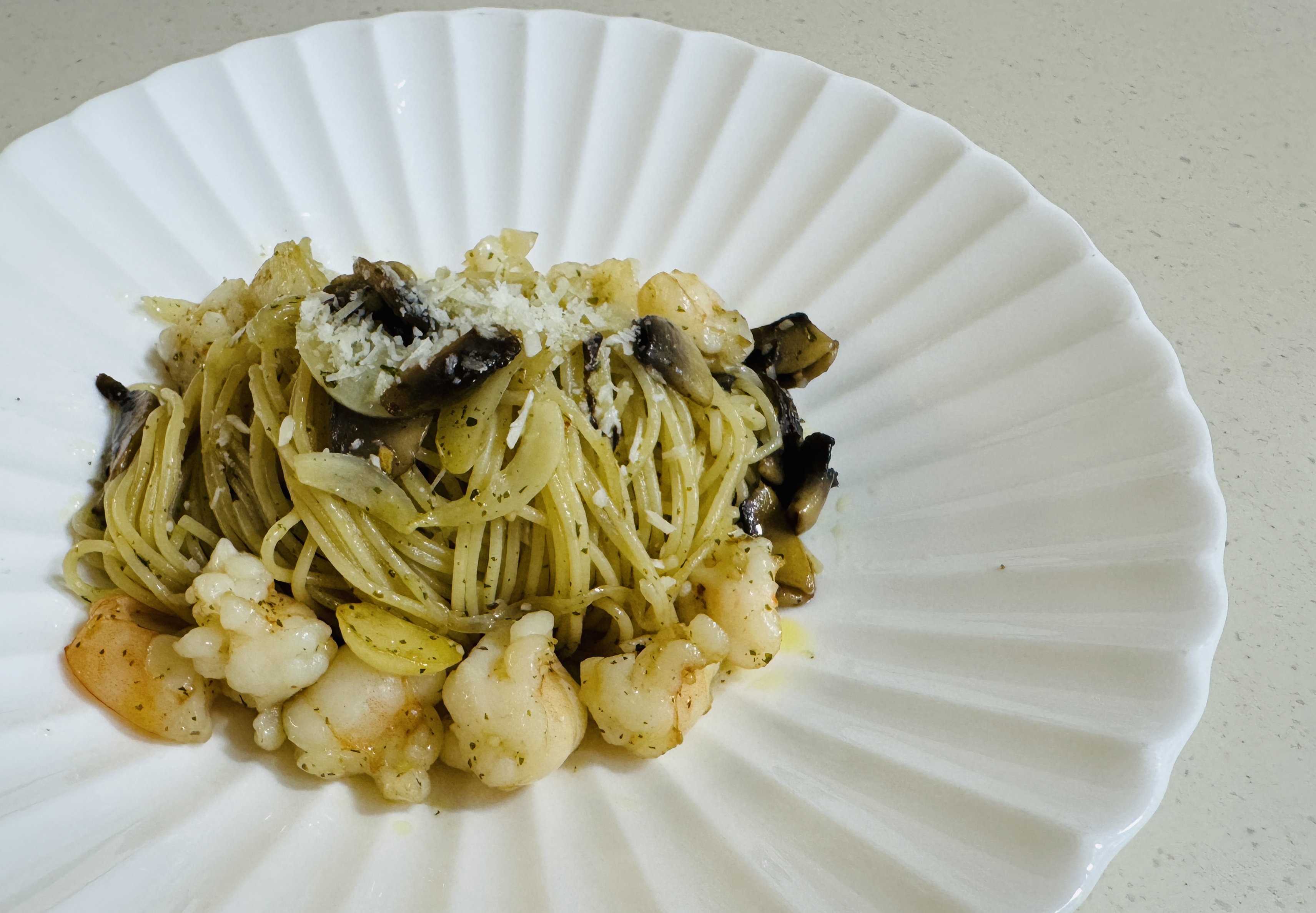 오일 파스타 좋아하는 아들램 위해 오랜만에 새우 오일 파스타 만들었어요:)