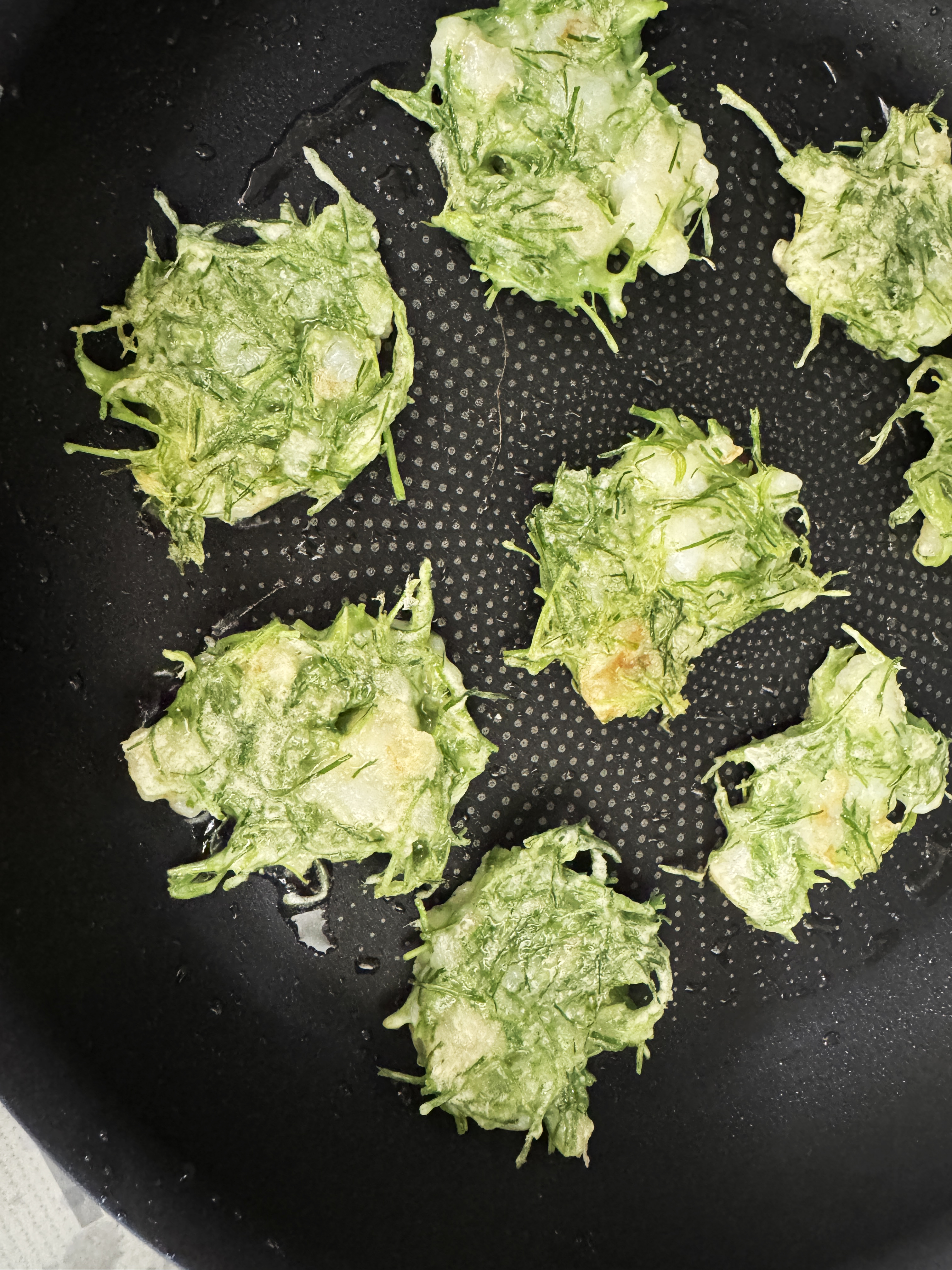 팬이 달궈지면 기름을 두르고 한숟가락씩 올려