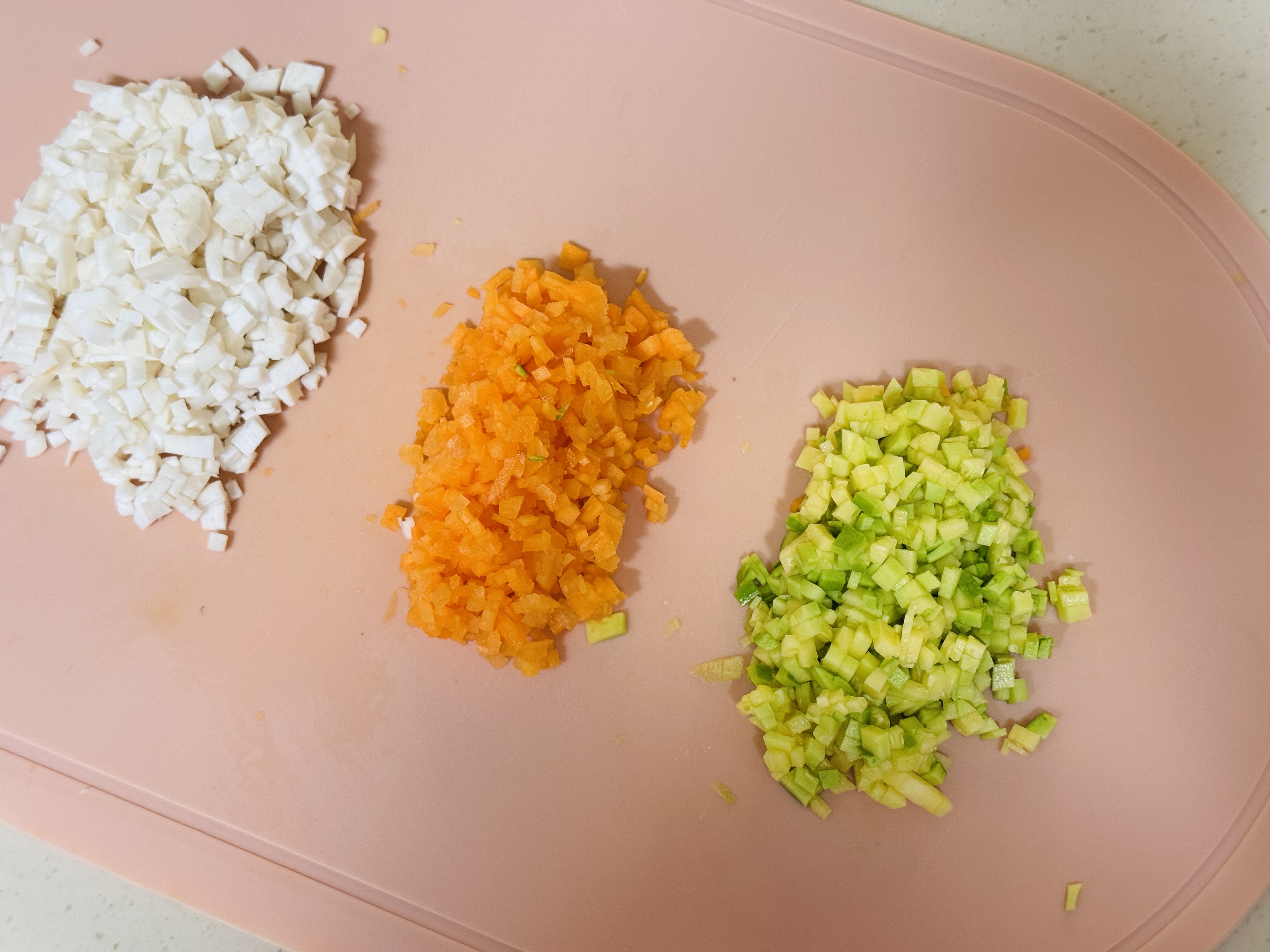 냉장고에 남은 야채 잘게 다져 준비해 주세요.