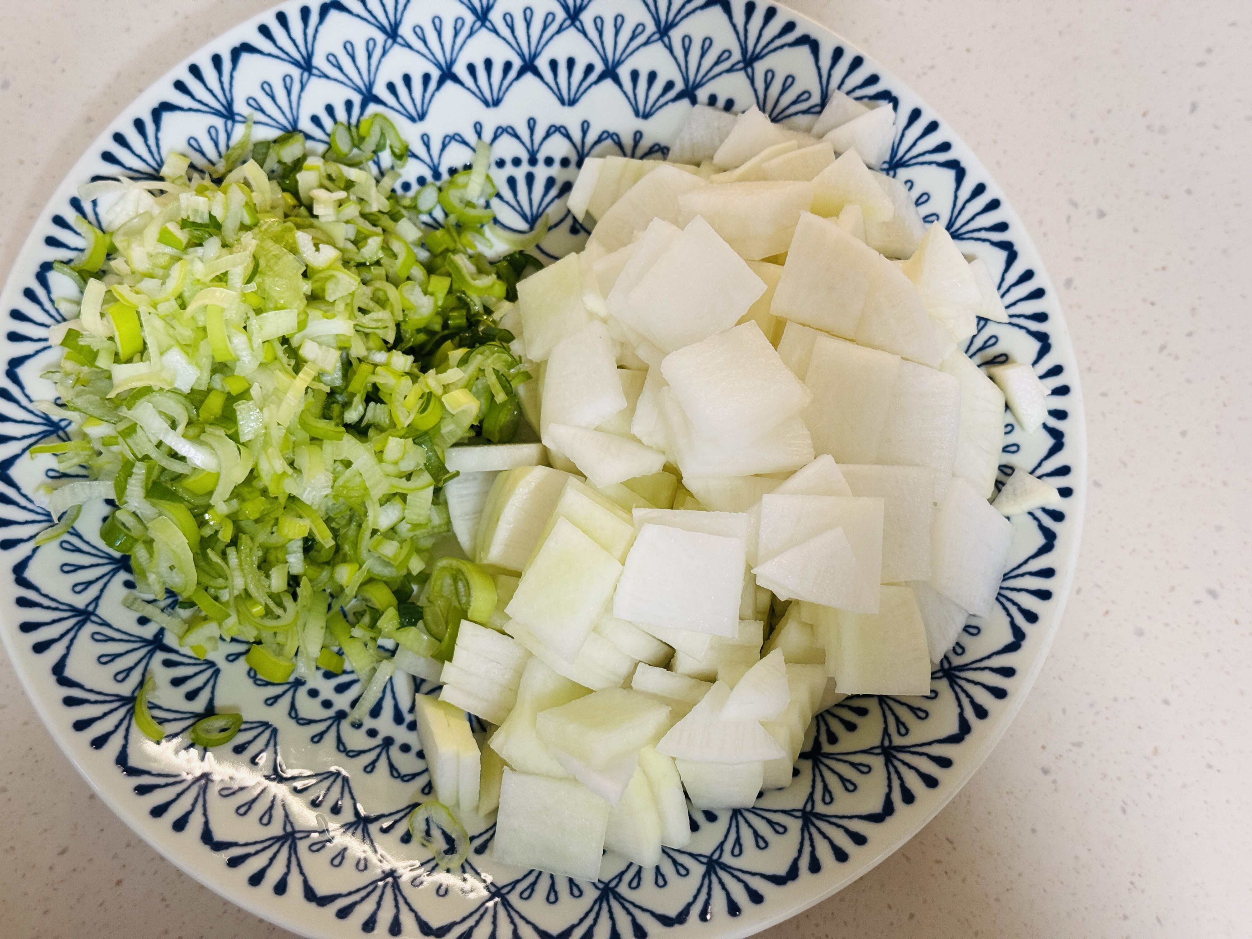 아이와 먹을땐 무는 작게 자르는 편이예요:)