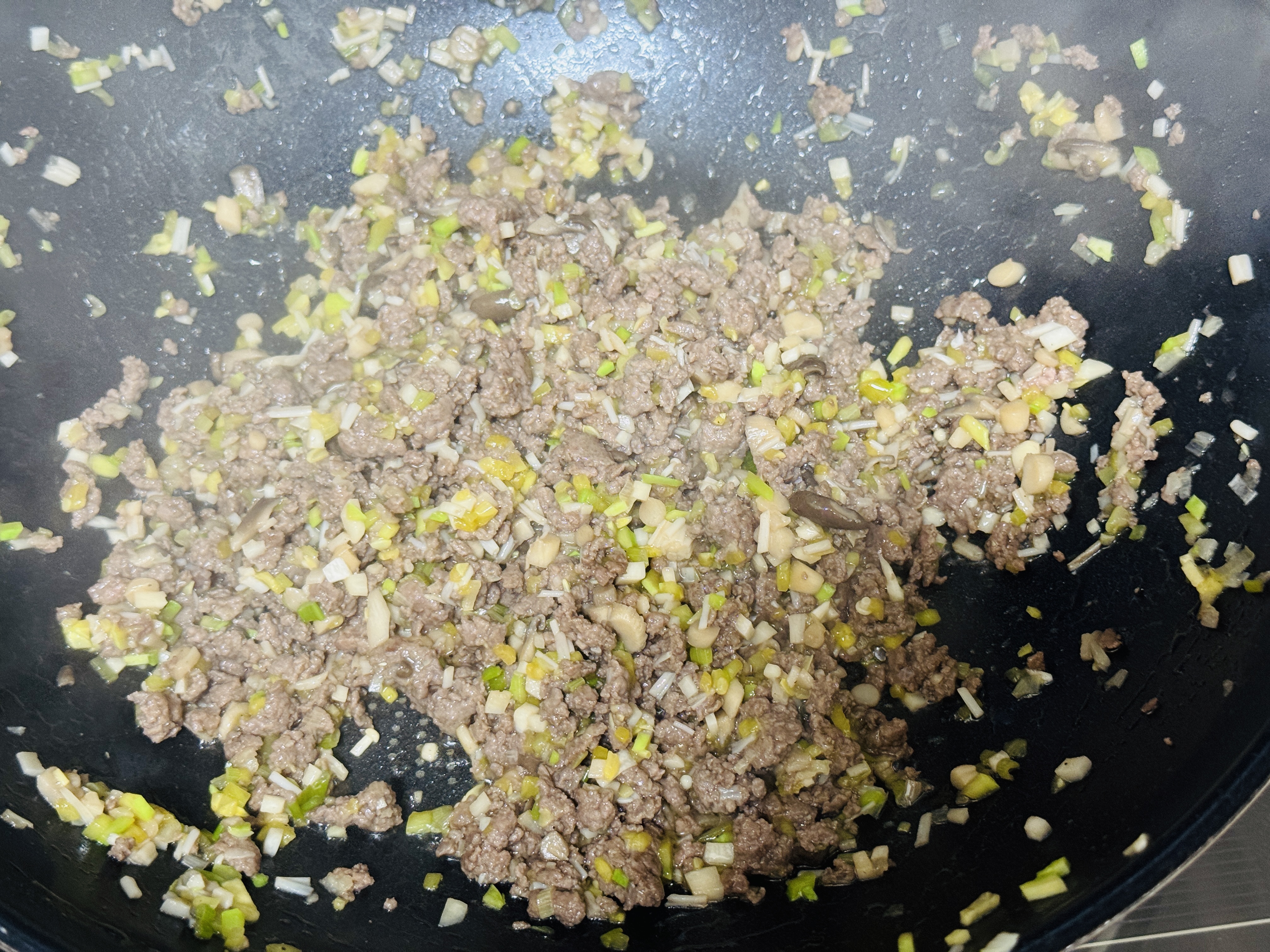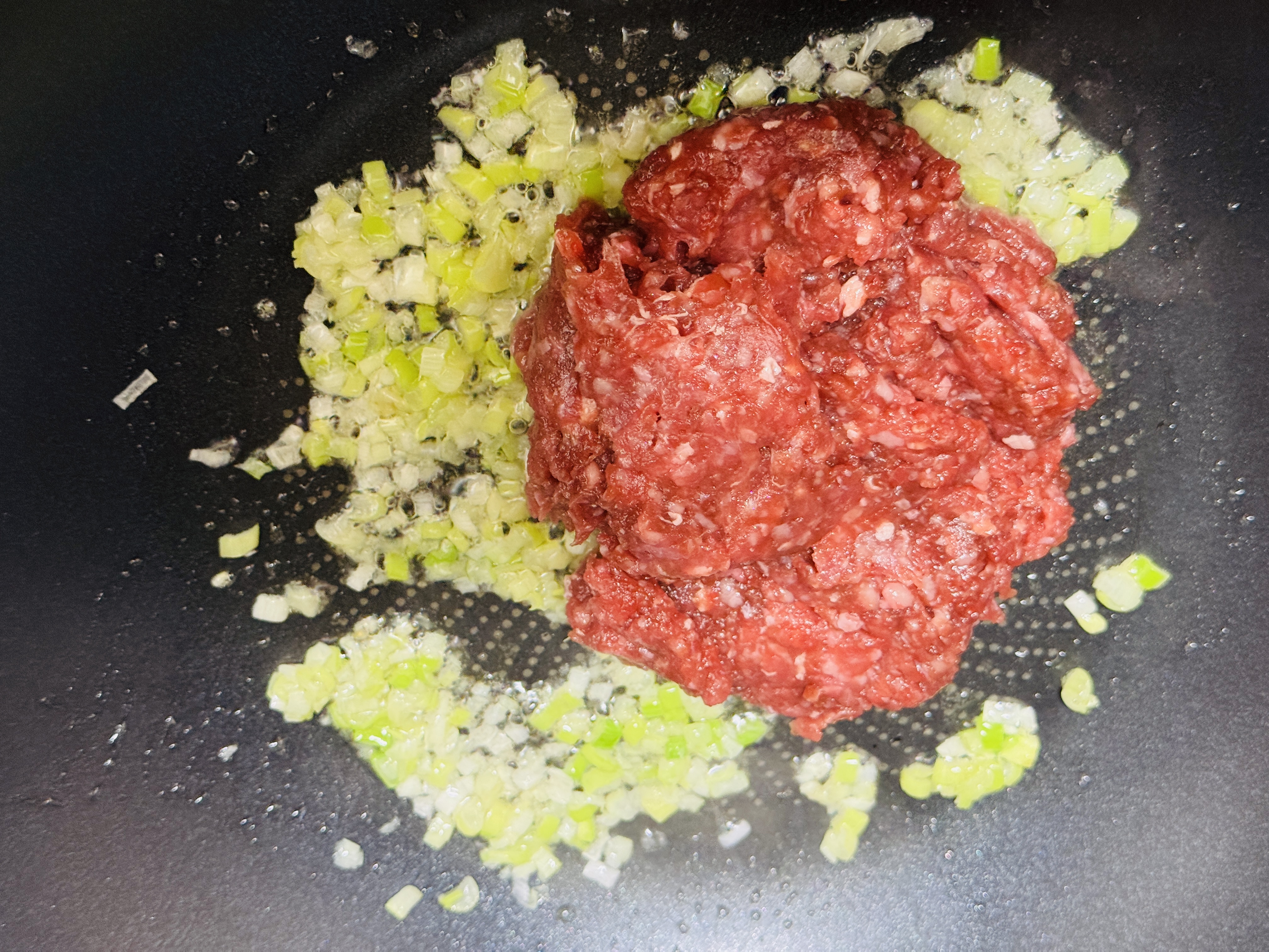 약불에 다진파와 마늘 볶아 향을 내주세요.