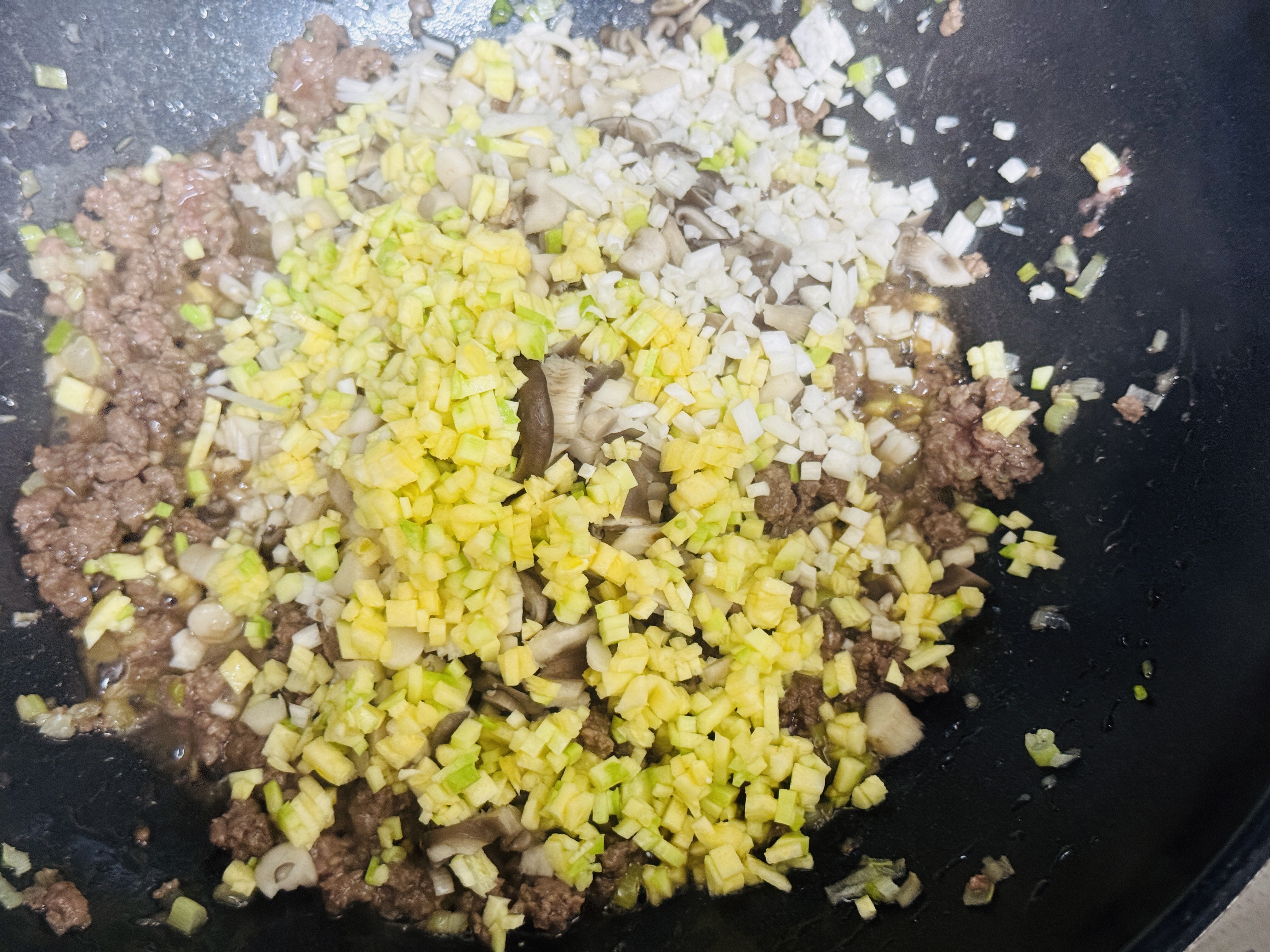 소고기 핏기가 사라지면 야채 넣어 같이 볶아줍니다.