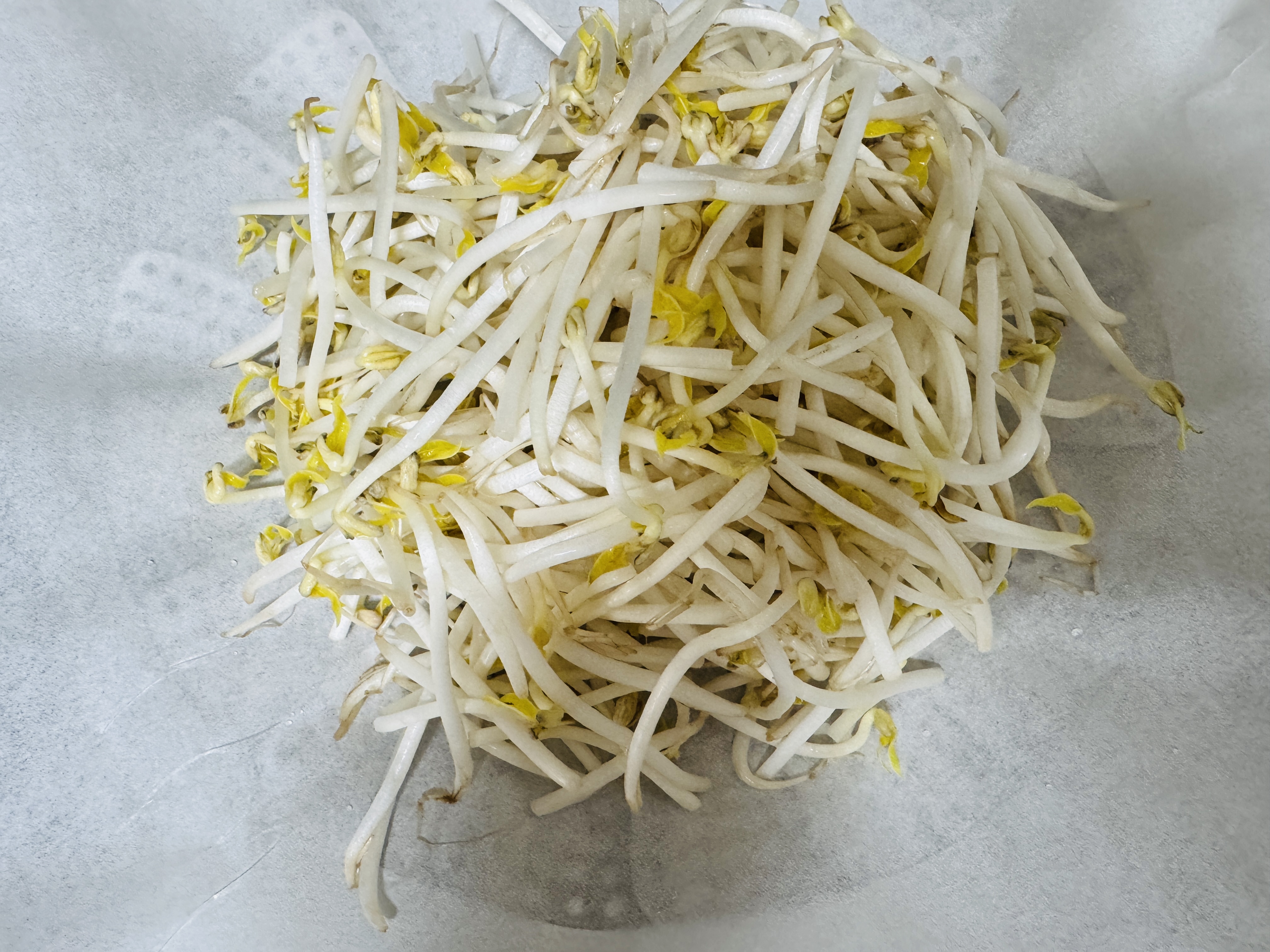 종이 호일 위에 숙주나물 올리고,