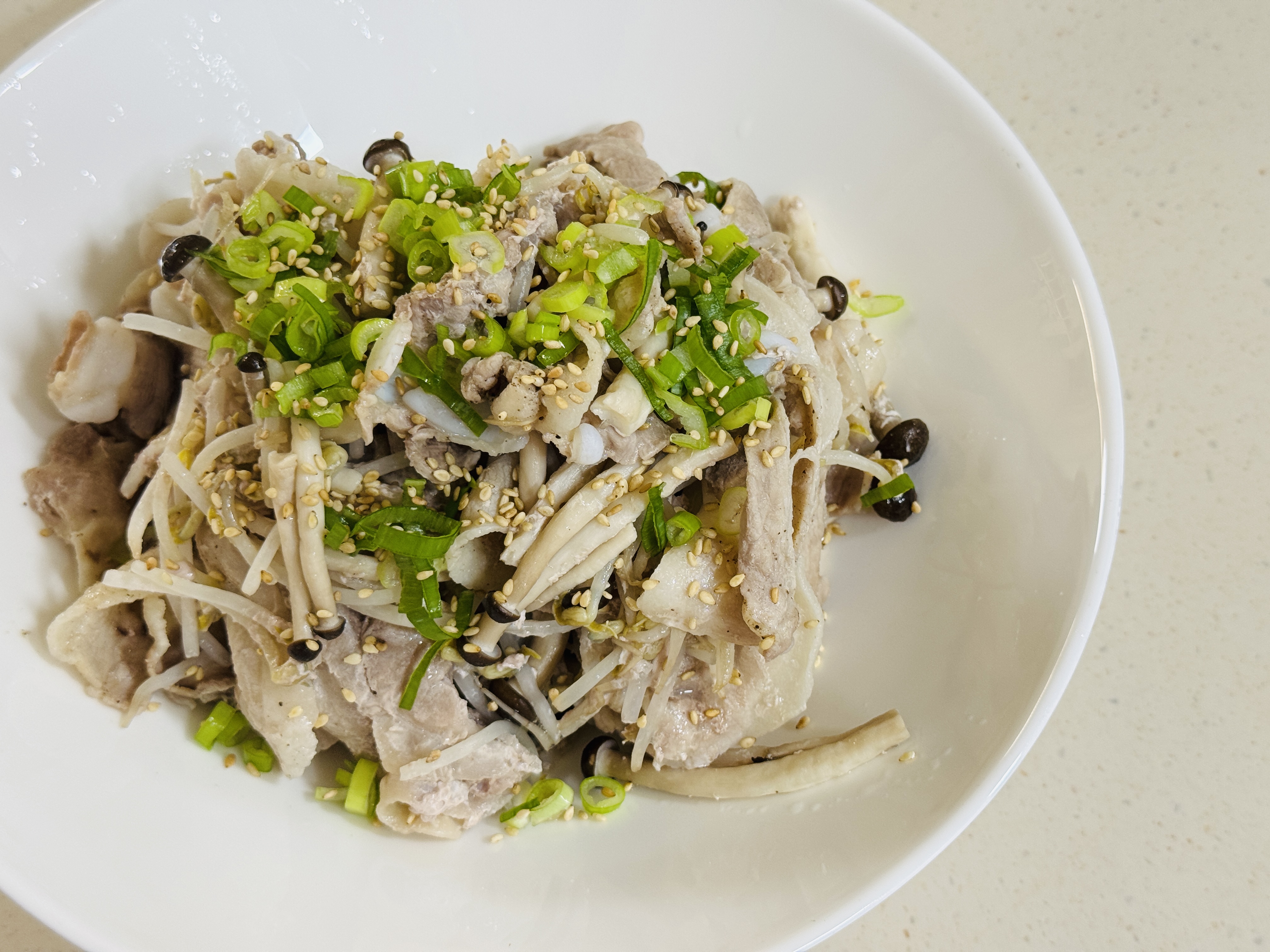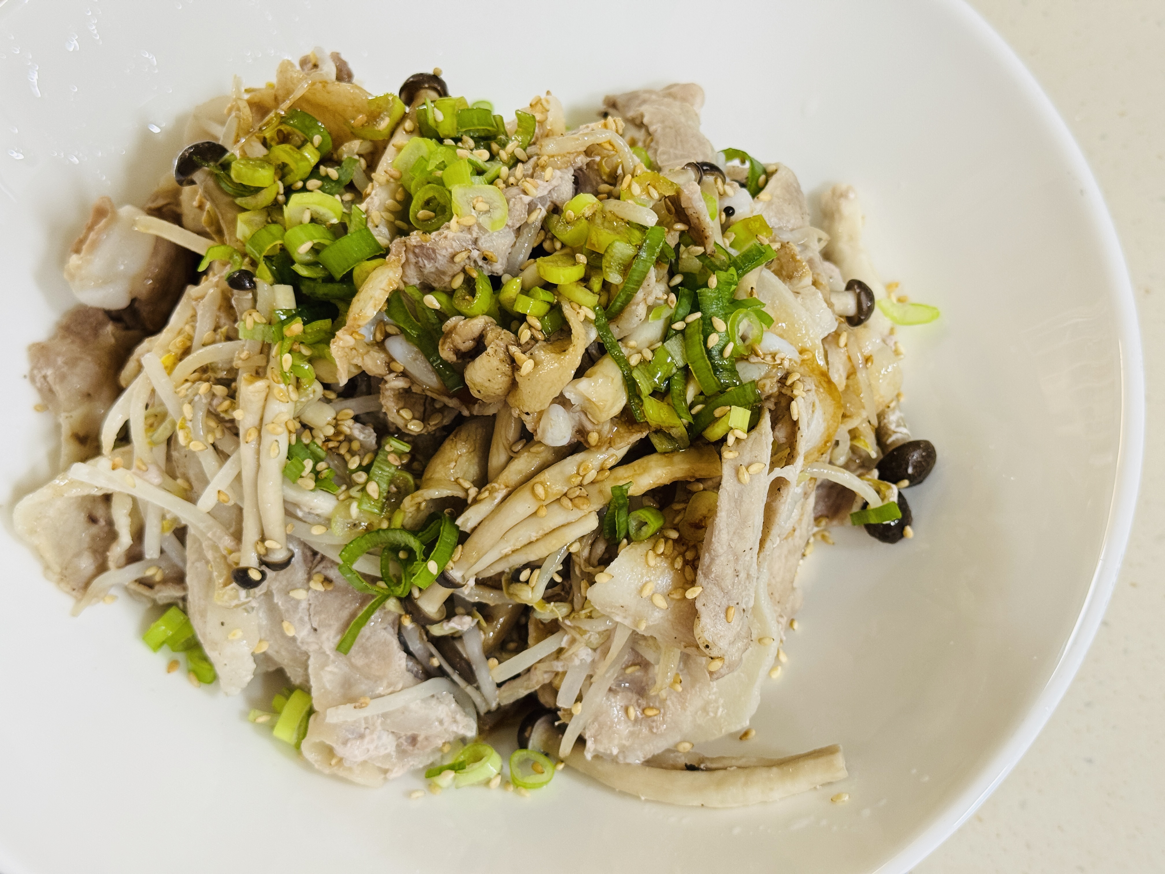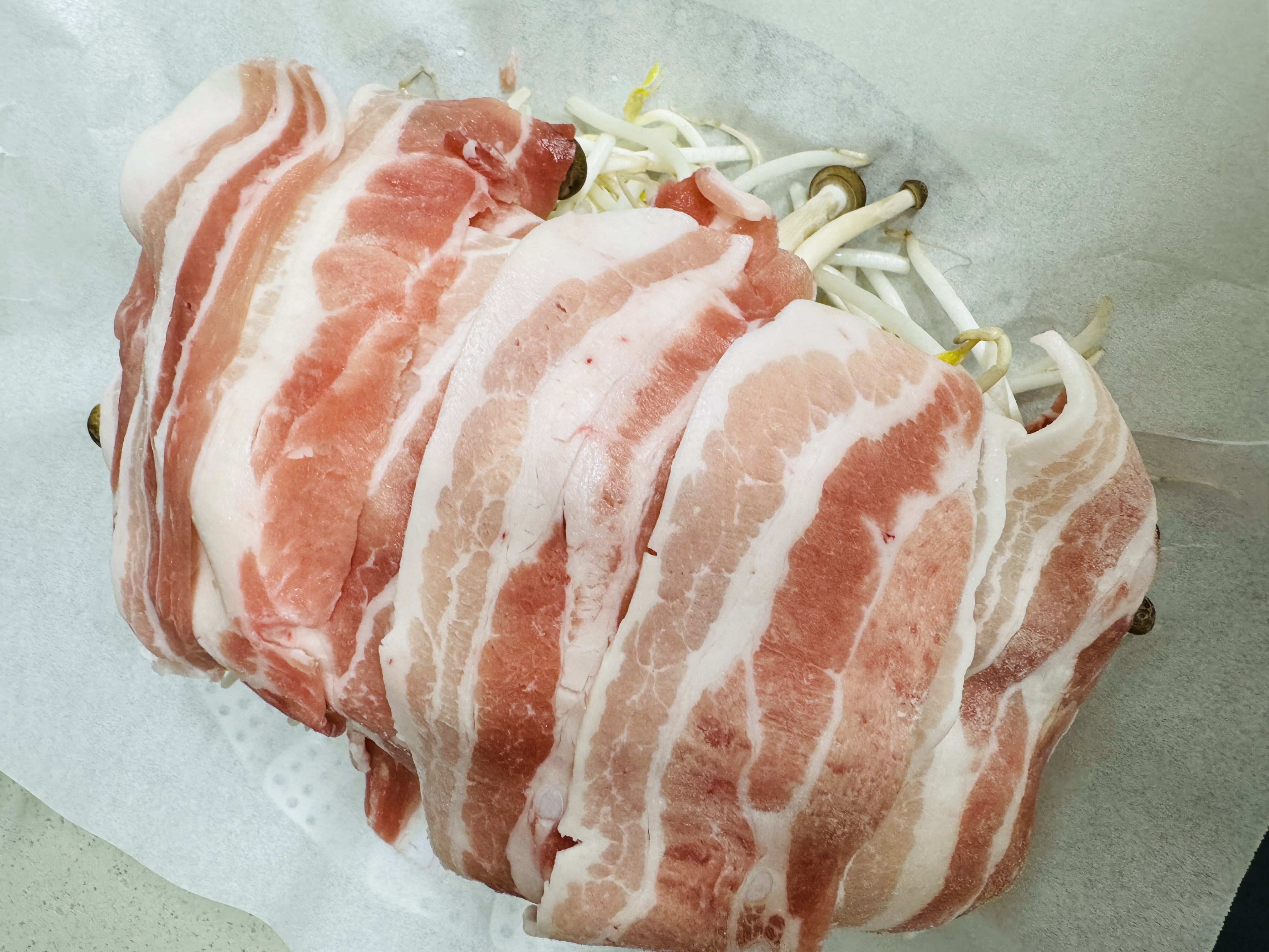 고기를 더 건강하게 먹어볼까.. 싶어 숙주와 만가닥 버섯, 대패 삼겹살 넣어 찜 만들었어요:)