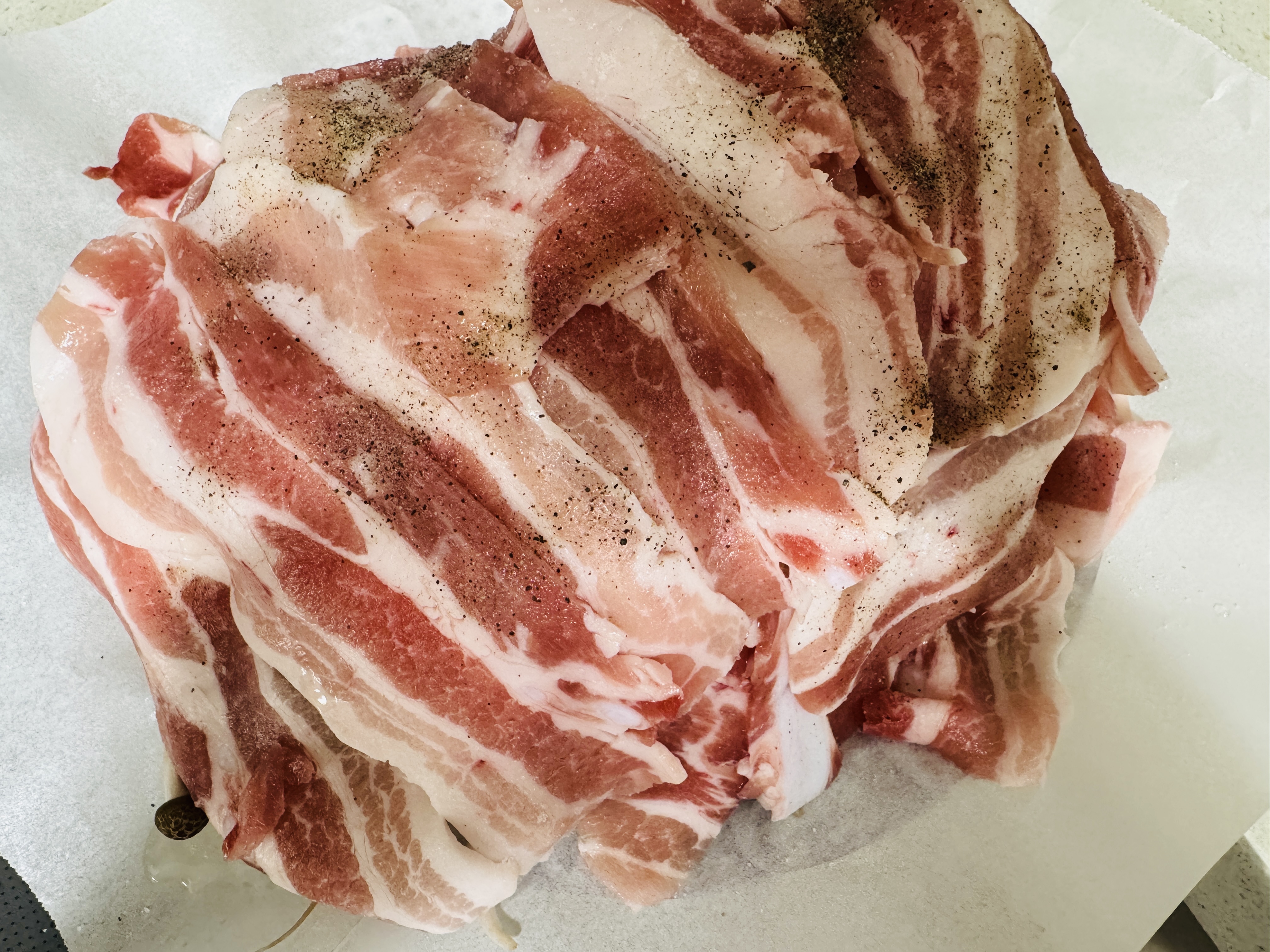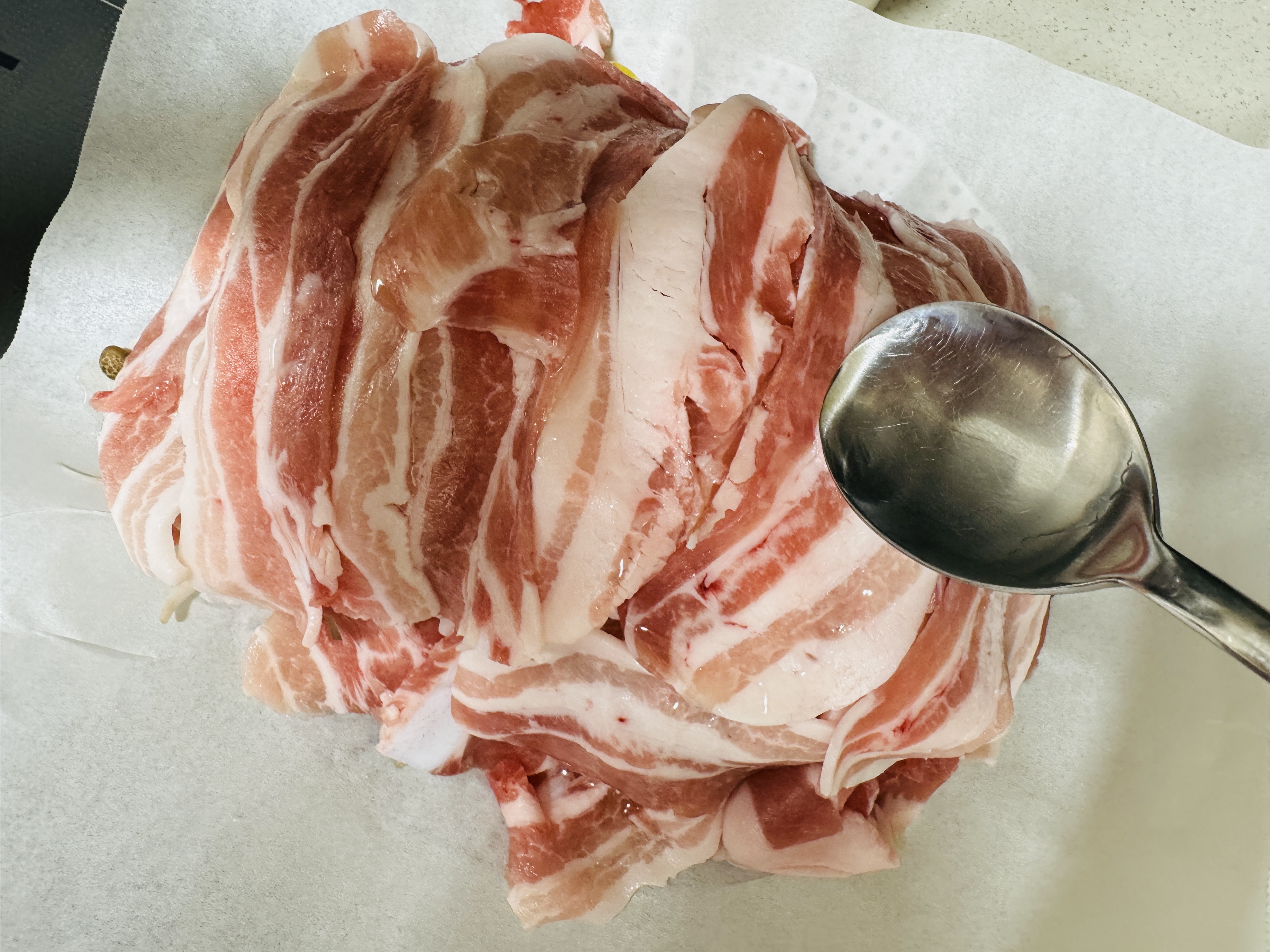 그 위에 대패 삼겹살 올려주세요.