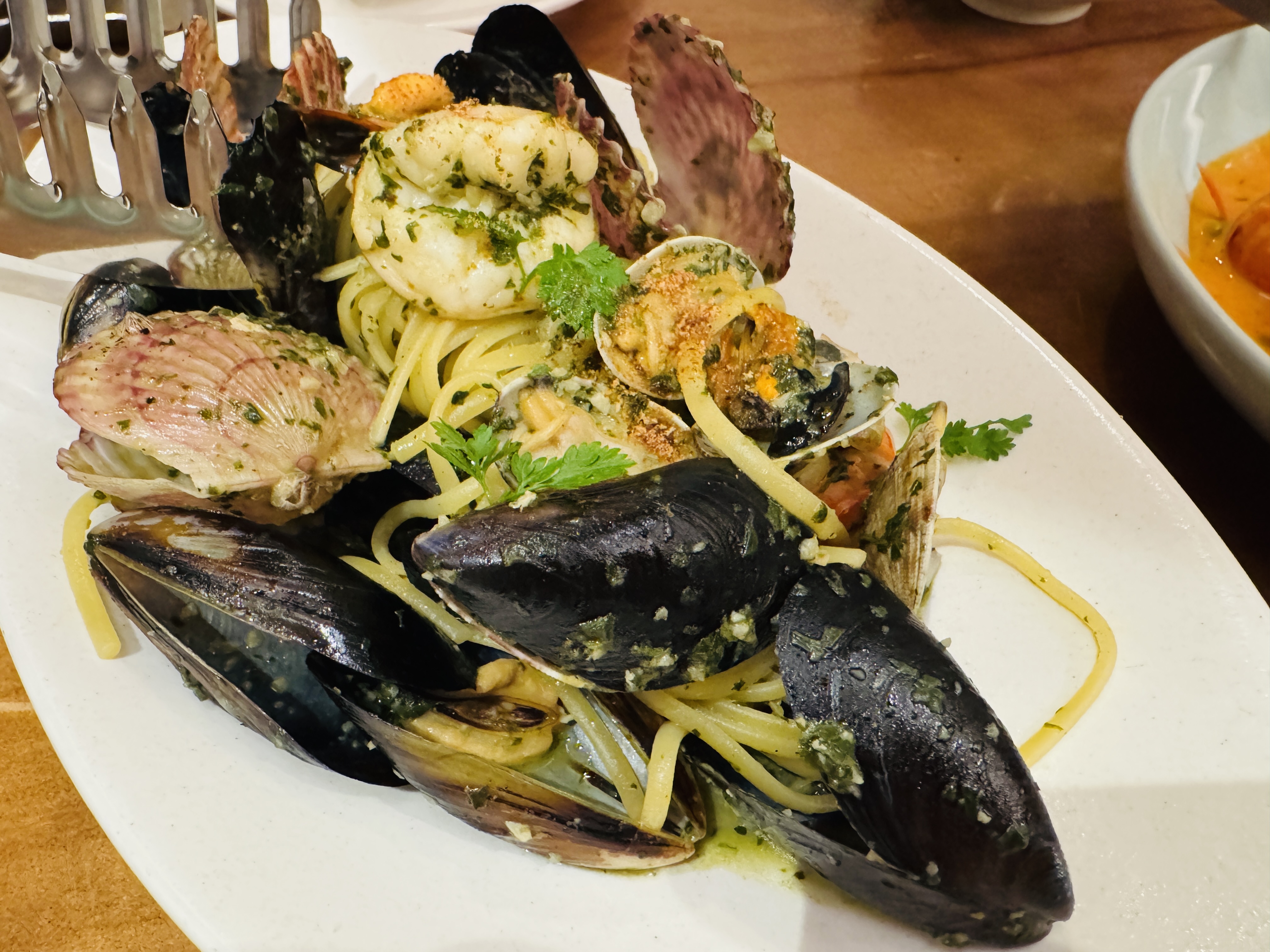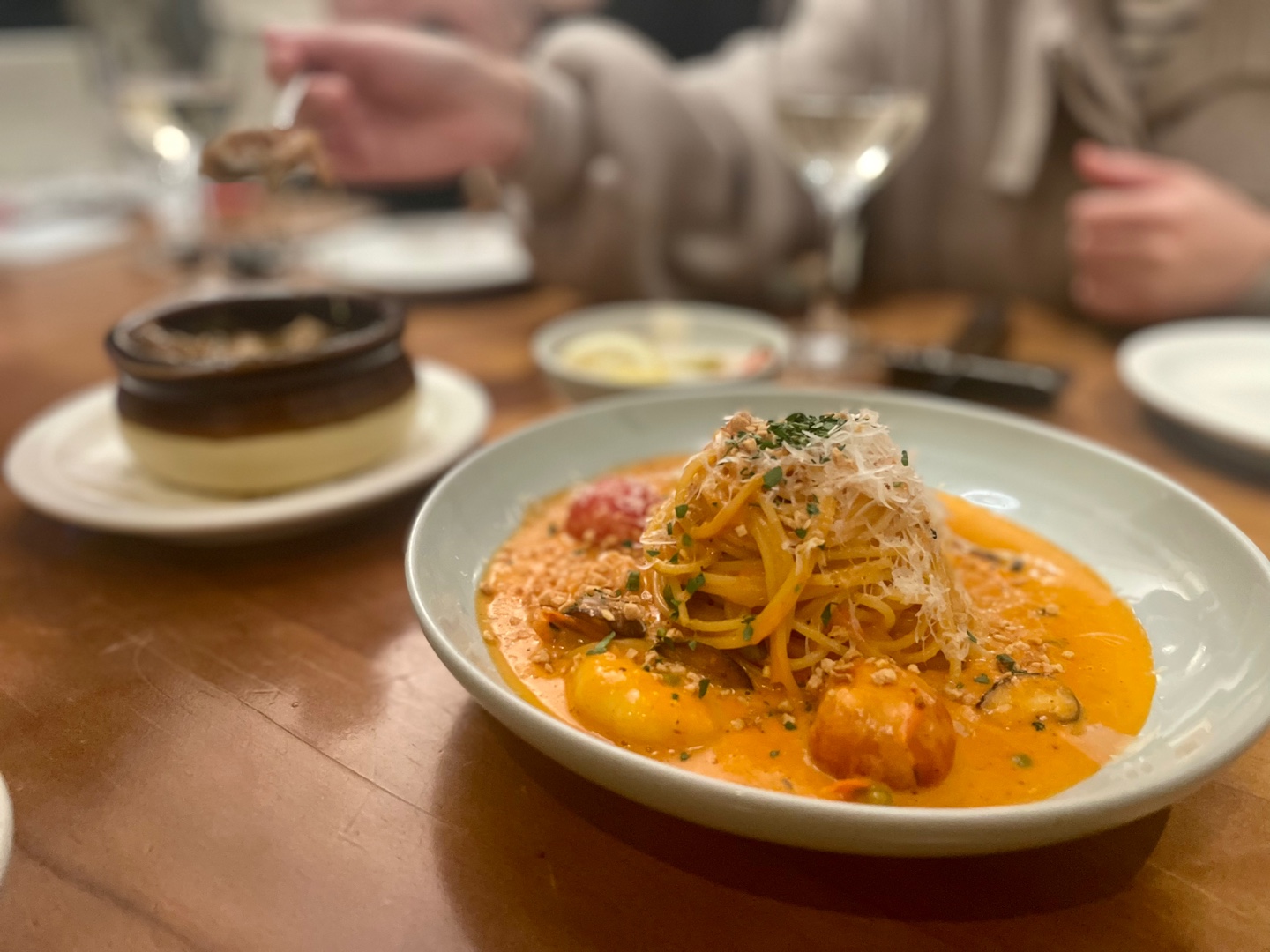감베리 로제 파스타, 트러플 크림 뇨끼, 프랜치 어니언 스프, 스테이크 피자.. 파스타 하나는 이름이 생각 안나지만;