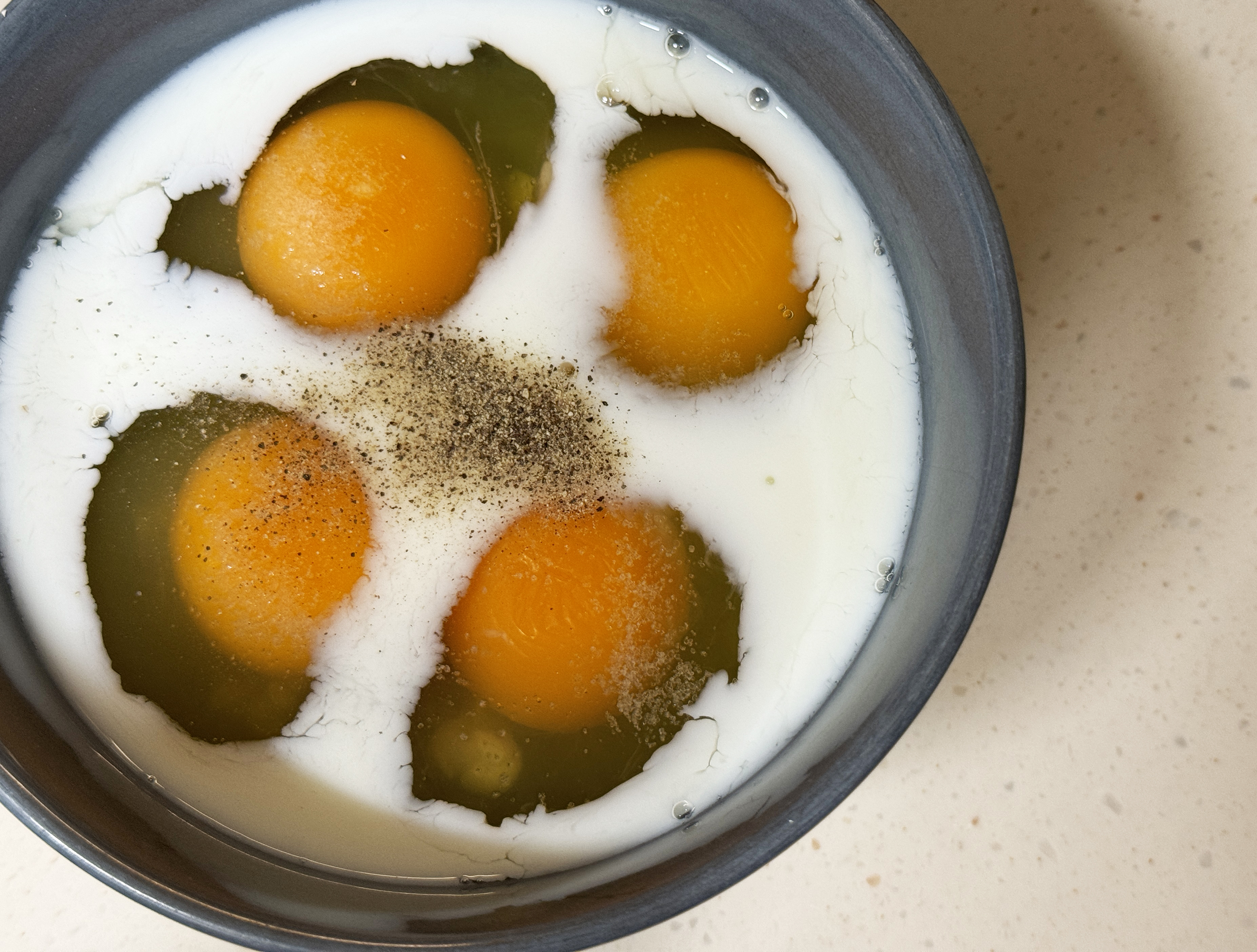 달걀은 우유와 모짜렐라 치즈를 넣어 풀어 주시고 소금과 후추를 넣어 간을 맞춰주세요:)