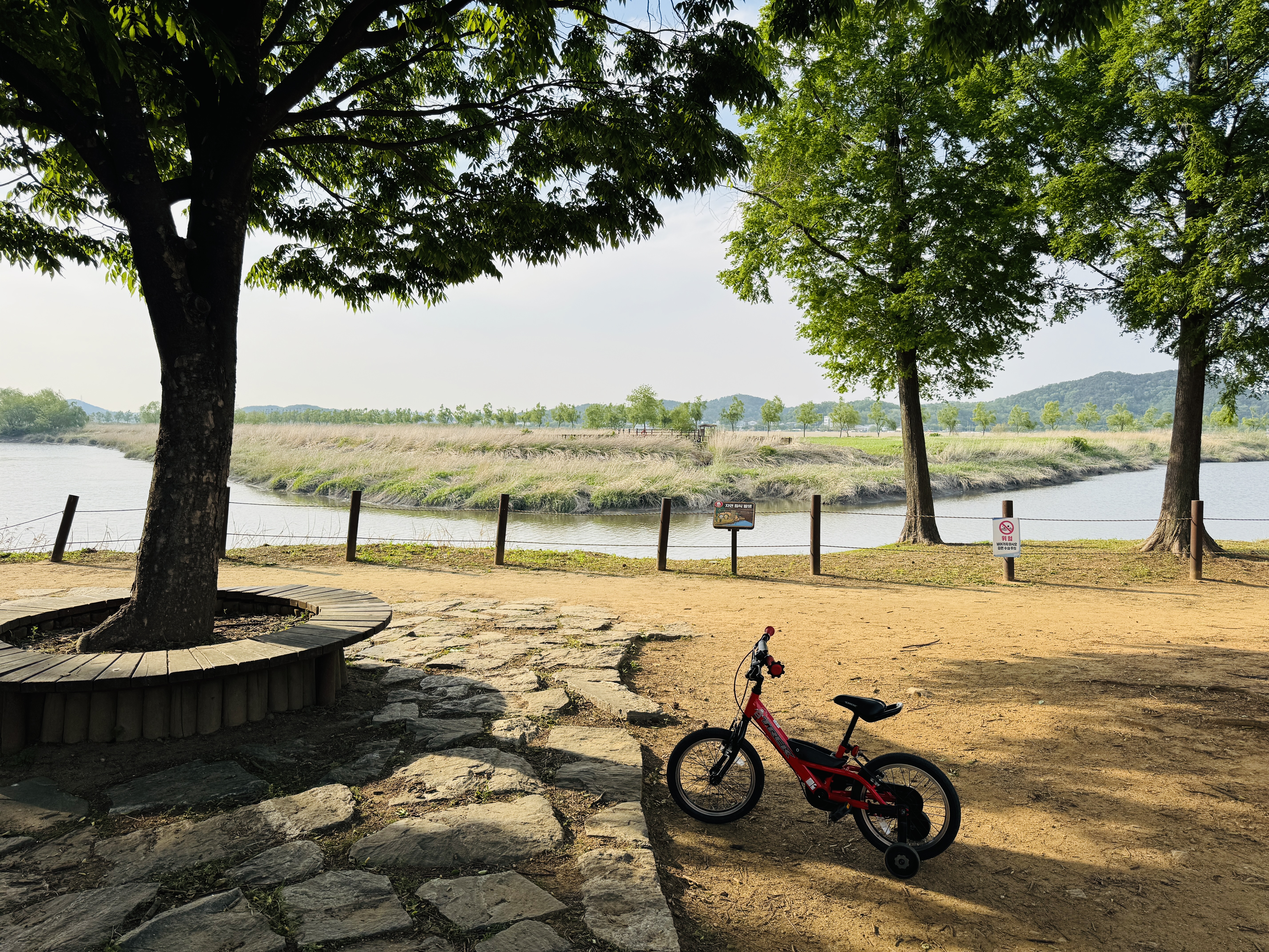 평일엔 사람이 적어 자전거 타기 좋을것 같아 자전거와 어린이날 선물받은 RC카 챙기고 간식으로 과일도 찬통 챙겨 다녀왔네요ㅎ