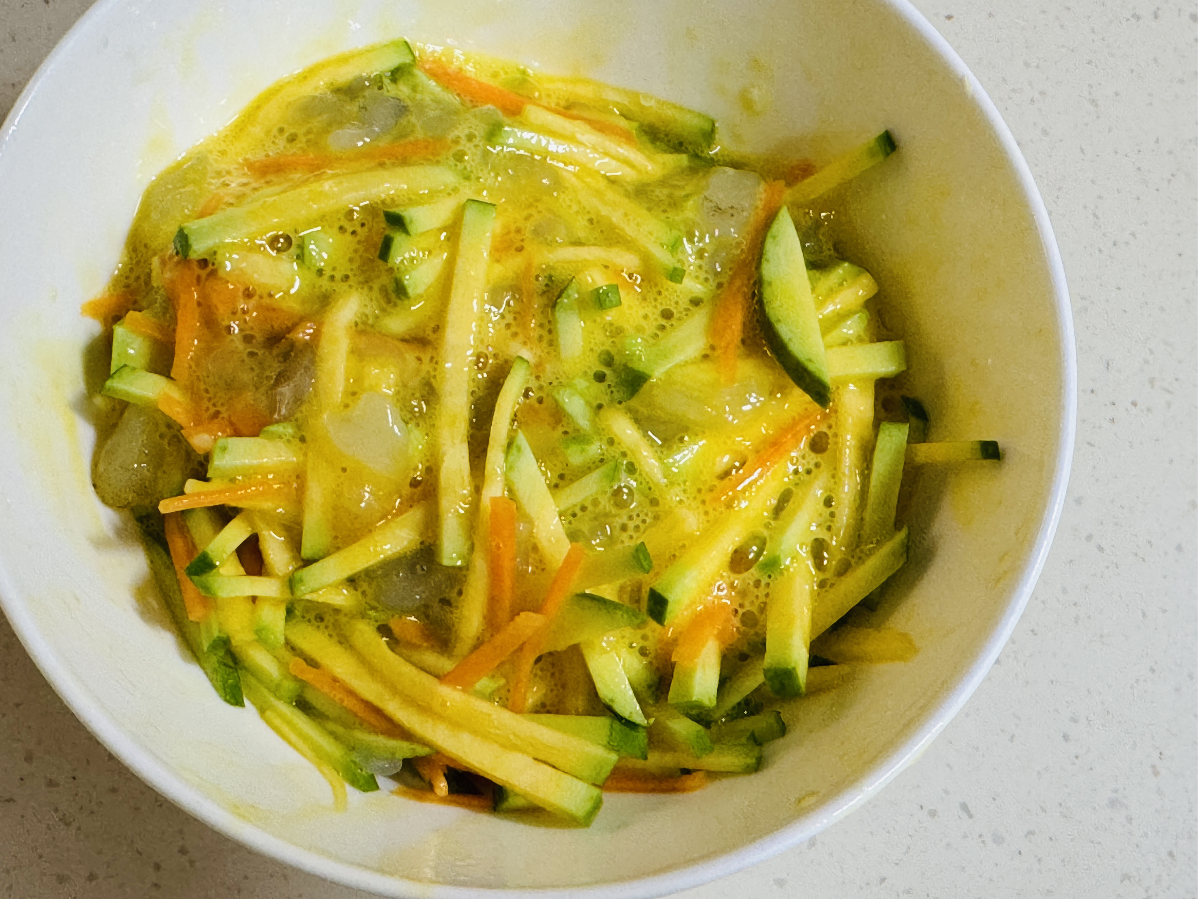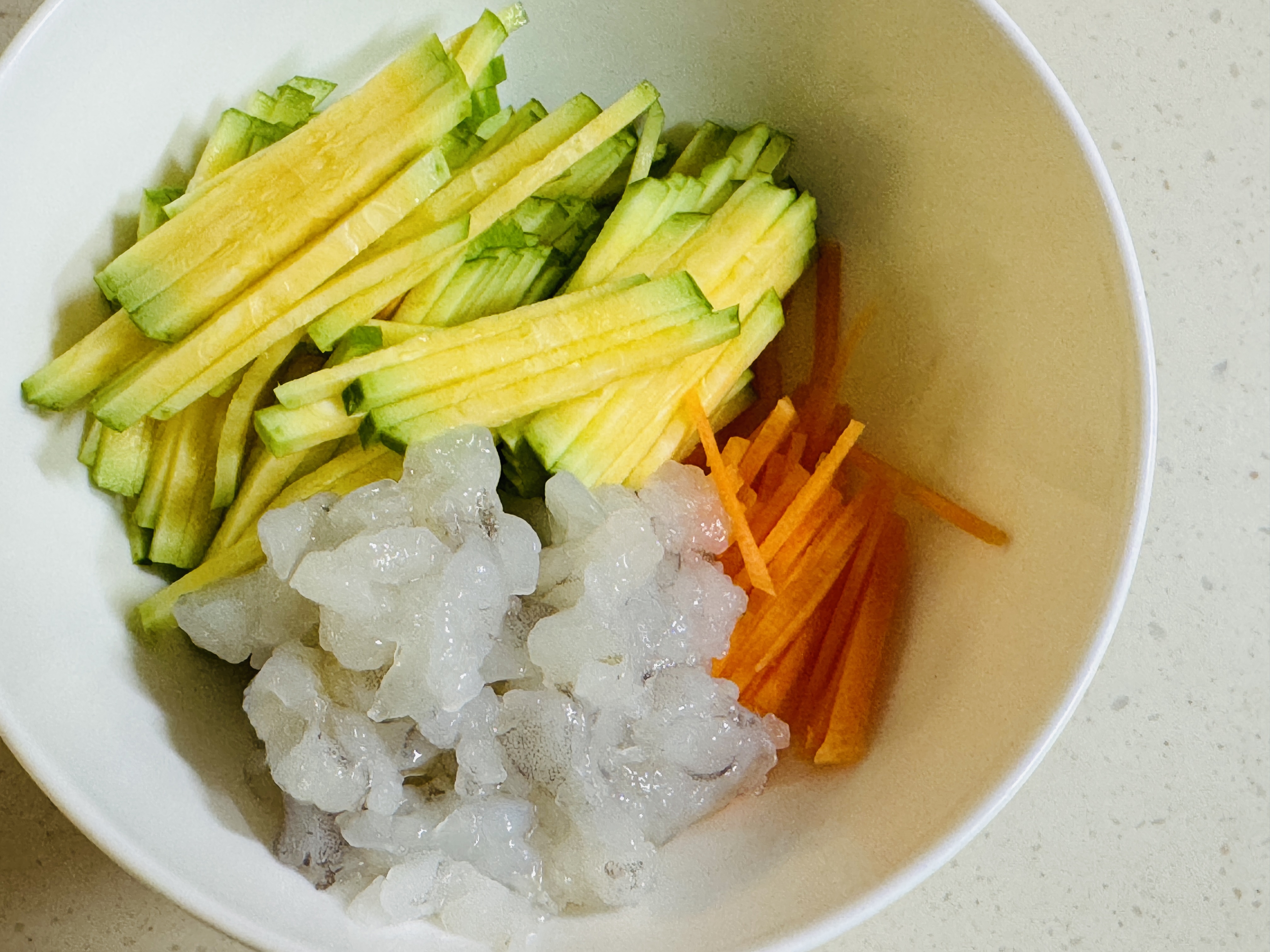 애호박과 당근은 가늘게 채썰어 준비해 주세요.
