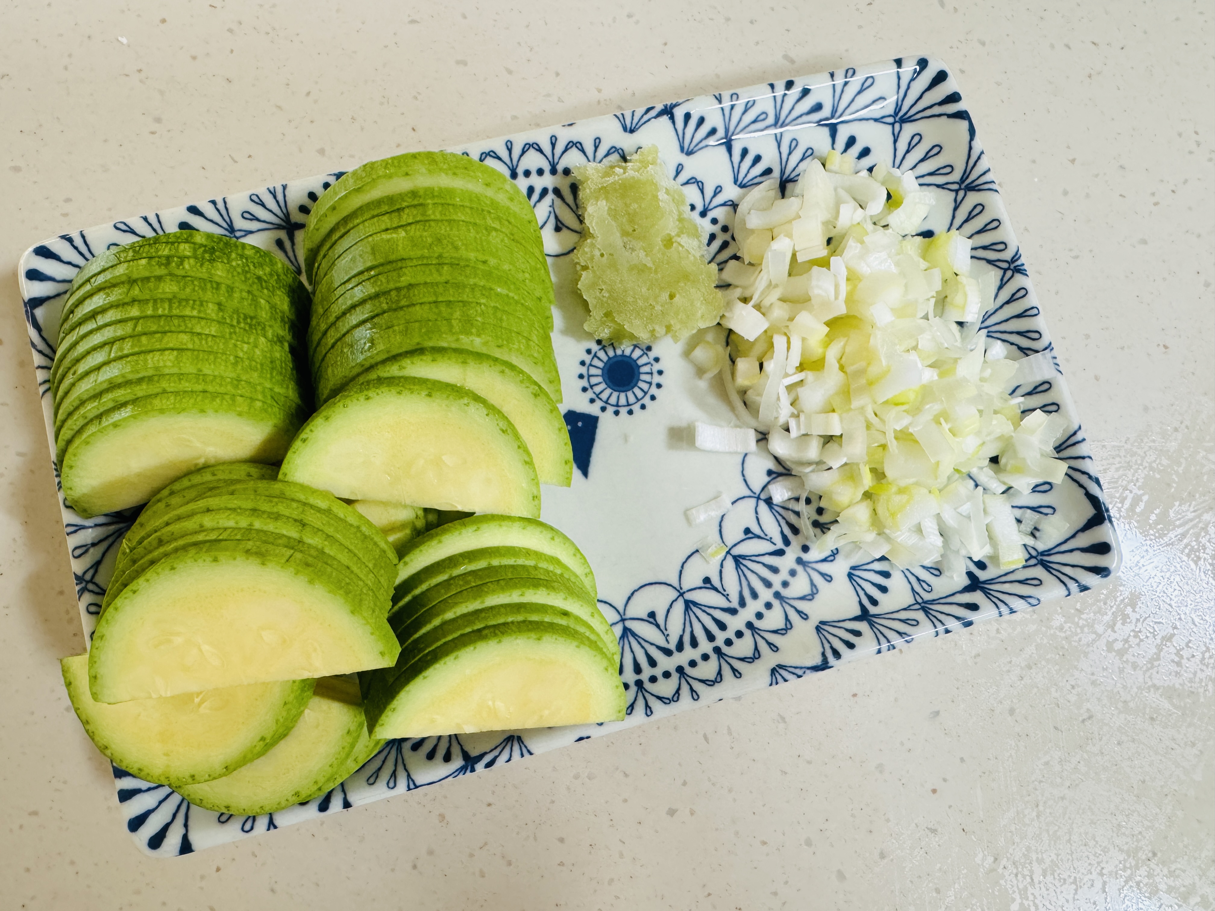 애호박은 반달 모양으로 잘라주고 파는 다져서 준비해 주세요.