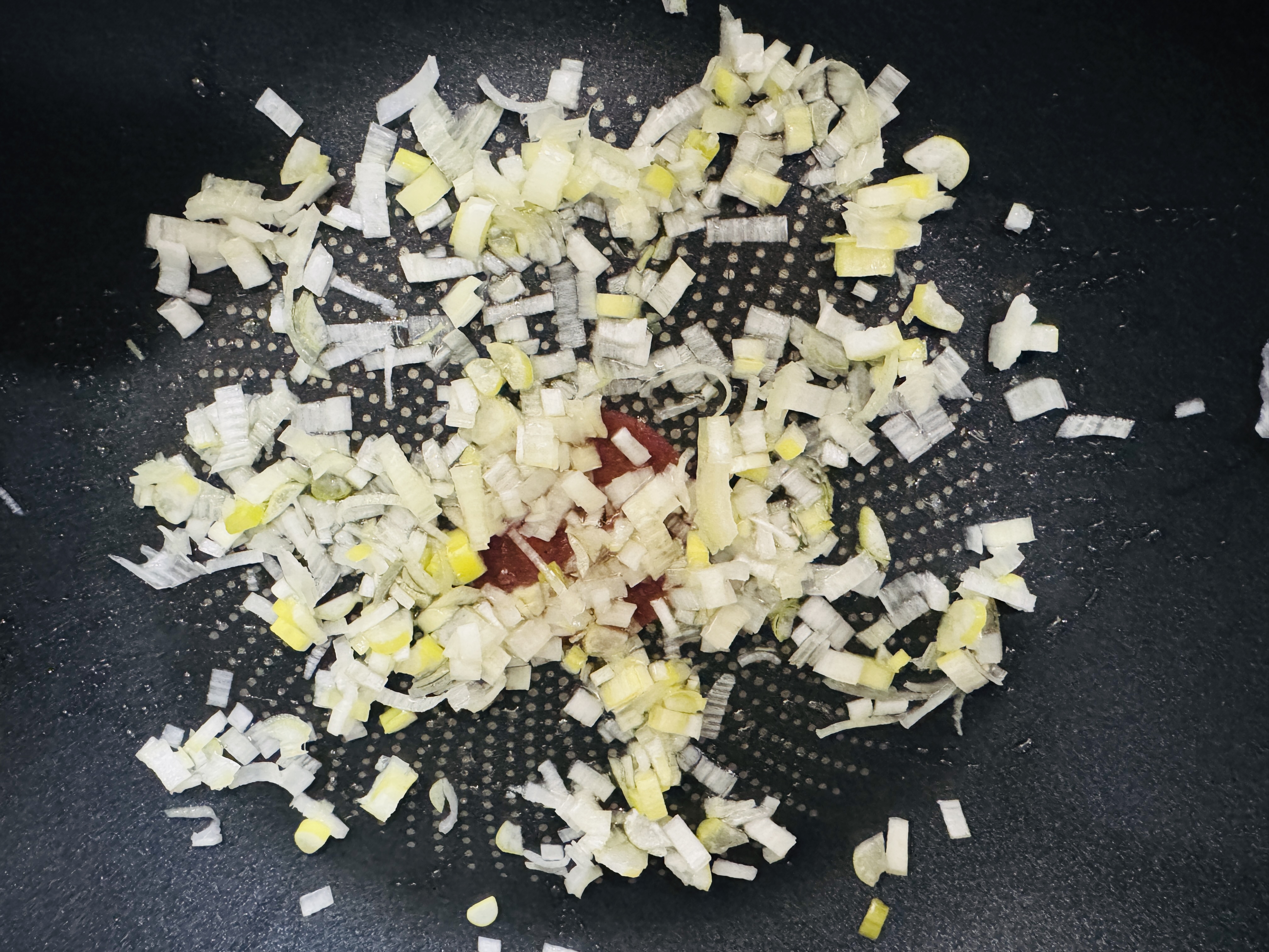 약한 불에서 파를 먼저 살짝 볶아 파기름을 내주세요.